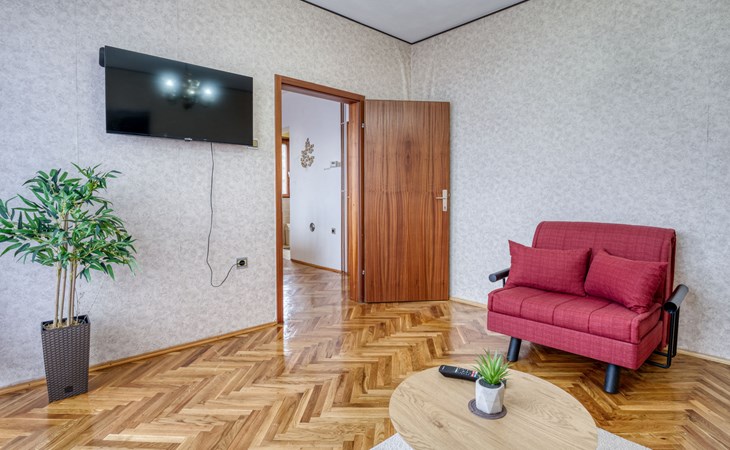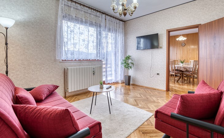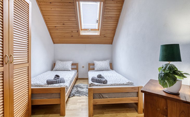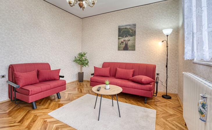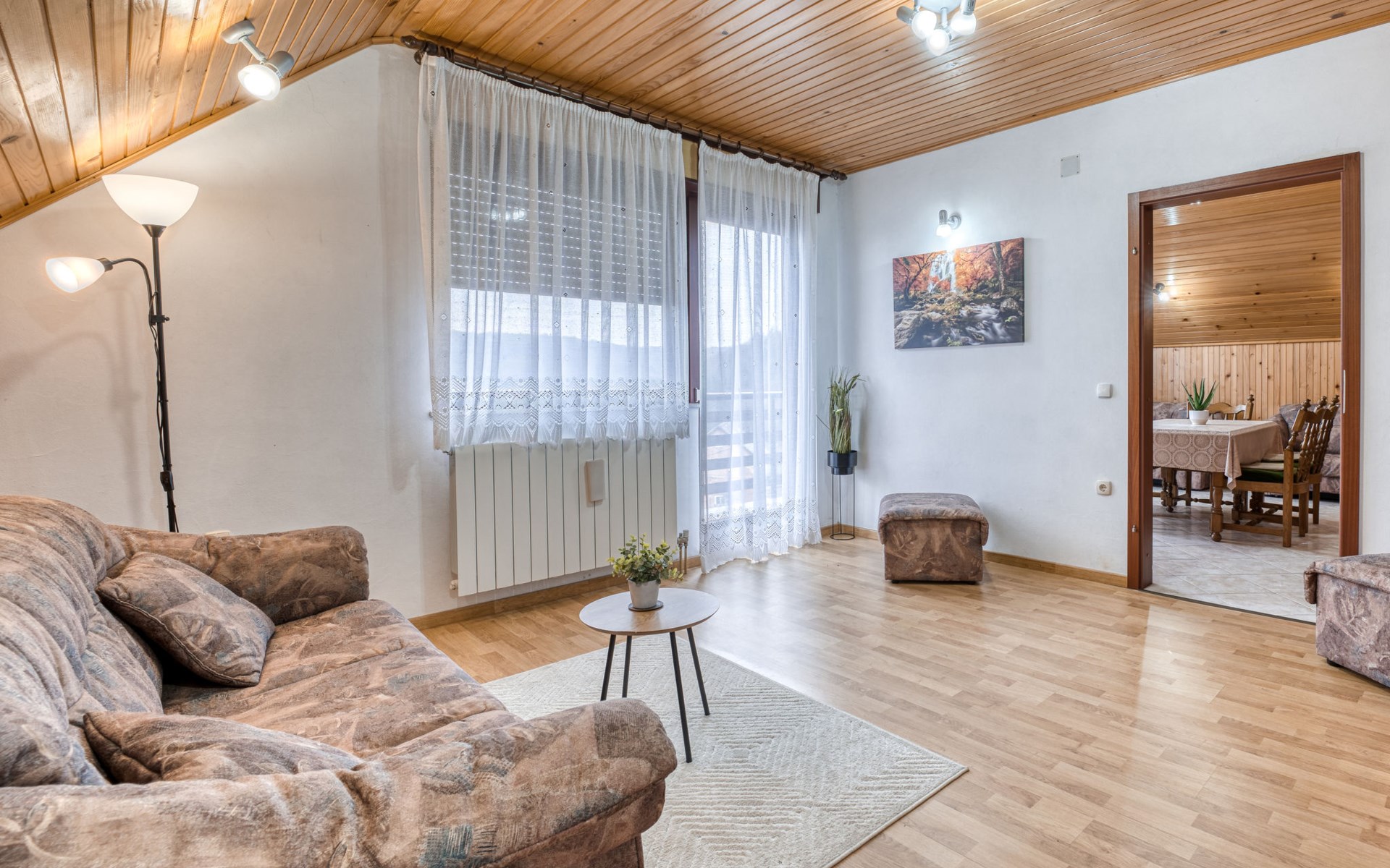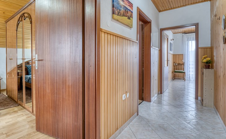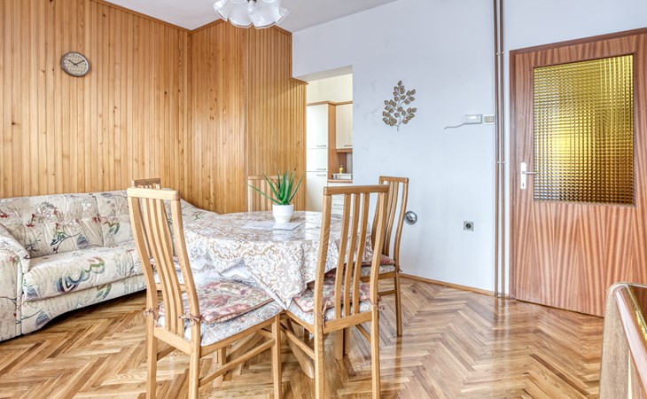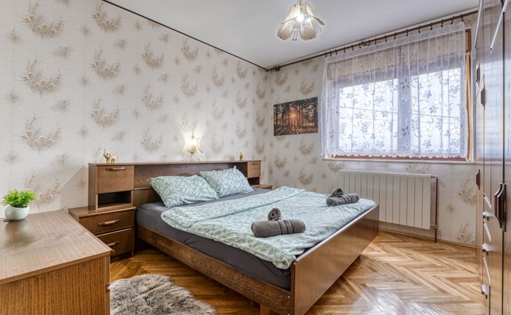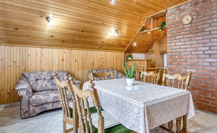 Zweifamilienhaus "Maklen", auf 2 Stockwerken. 1.5 km vom Zentrum von Brod Moravice, sonnige, erhöhte Lage, 70 km vom Meer, im Grünen. Zur Alleinbenutzung: Grundstück 1'100 m2 mit Rasen. Badminton, Grillhaus (Rutschbahn, Schaukel). Im Hause: Internetzugang, Sprudelbad (extra). Billard, Zentralheizung. Parkplatz (für 3 Autos) beim Haus auf dem Grundstück. Einkaufsgeschäft 1.6 km, Supermarkt 26 km, Restaurant 20 km, Bushaltestelle 3 km. Nahe gelegene Sehenswürdigkeiten: NP Risnjak 40 km, Zeleni vir 16 km, Kamačnik 20 km. Bitte beachten: geeignet für Familien. Der Besitzer akzeptiert keine Jugendgruppen. Ein Teil des Hauses ist geschlossen und nicht bewohnt.
