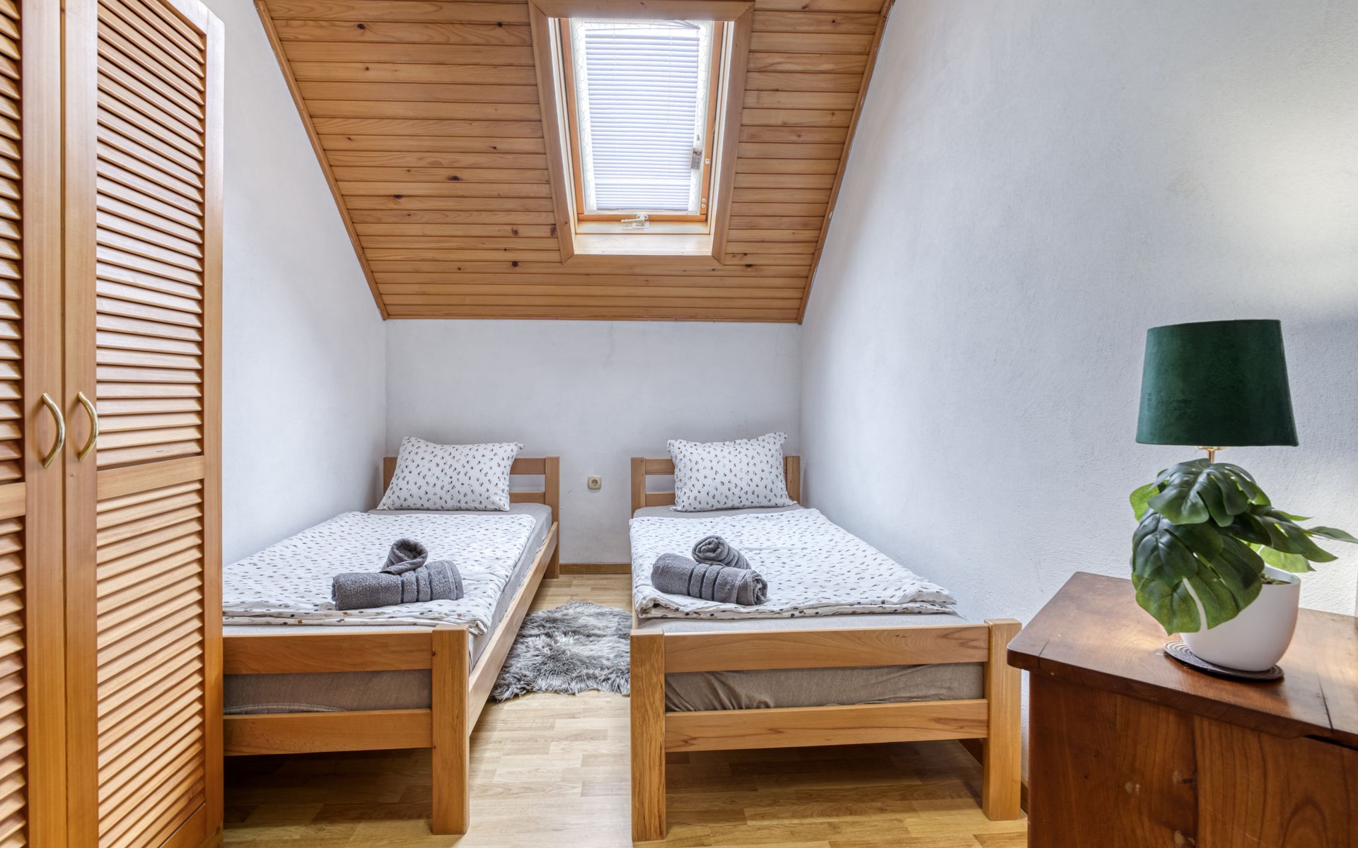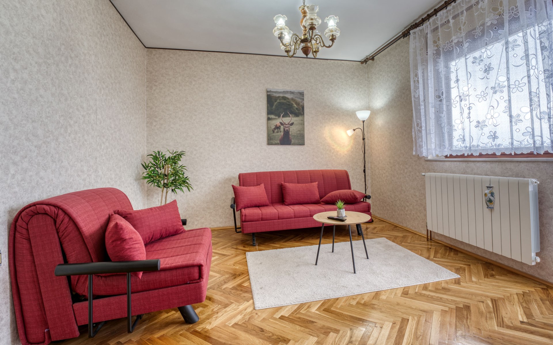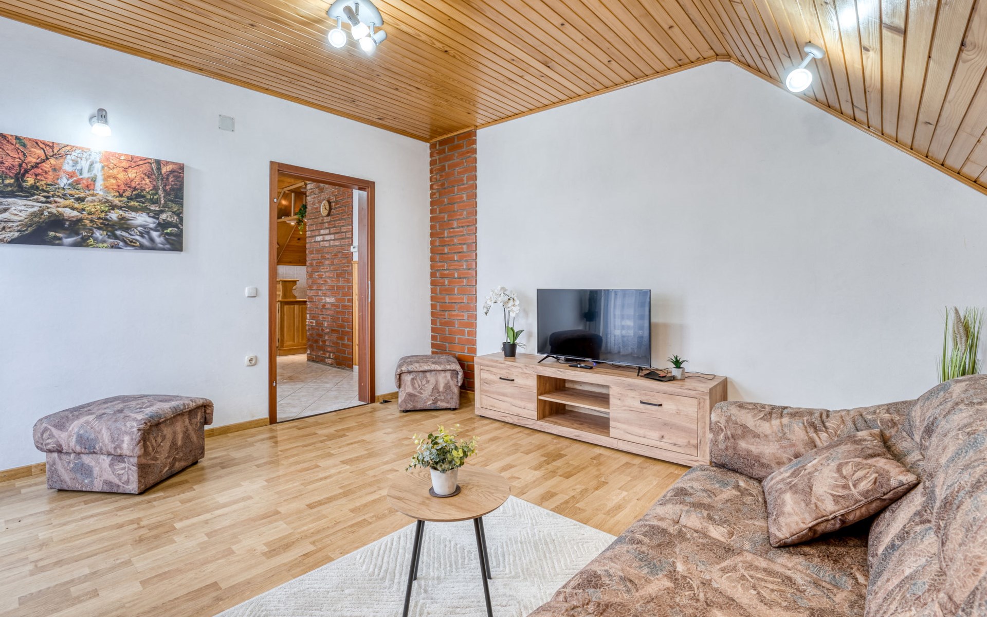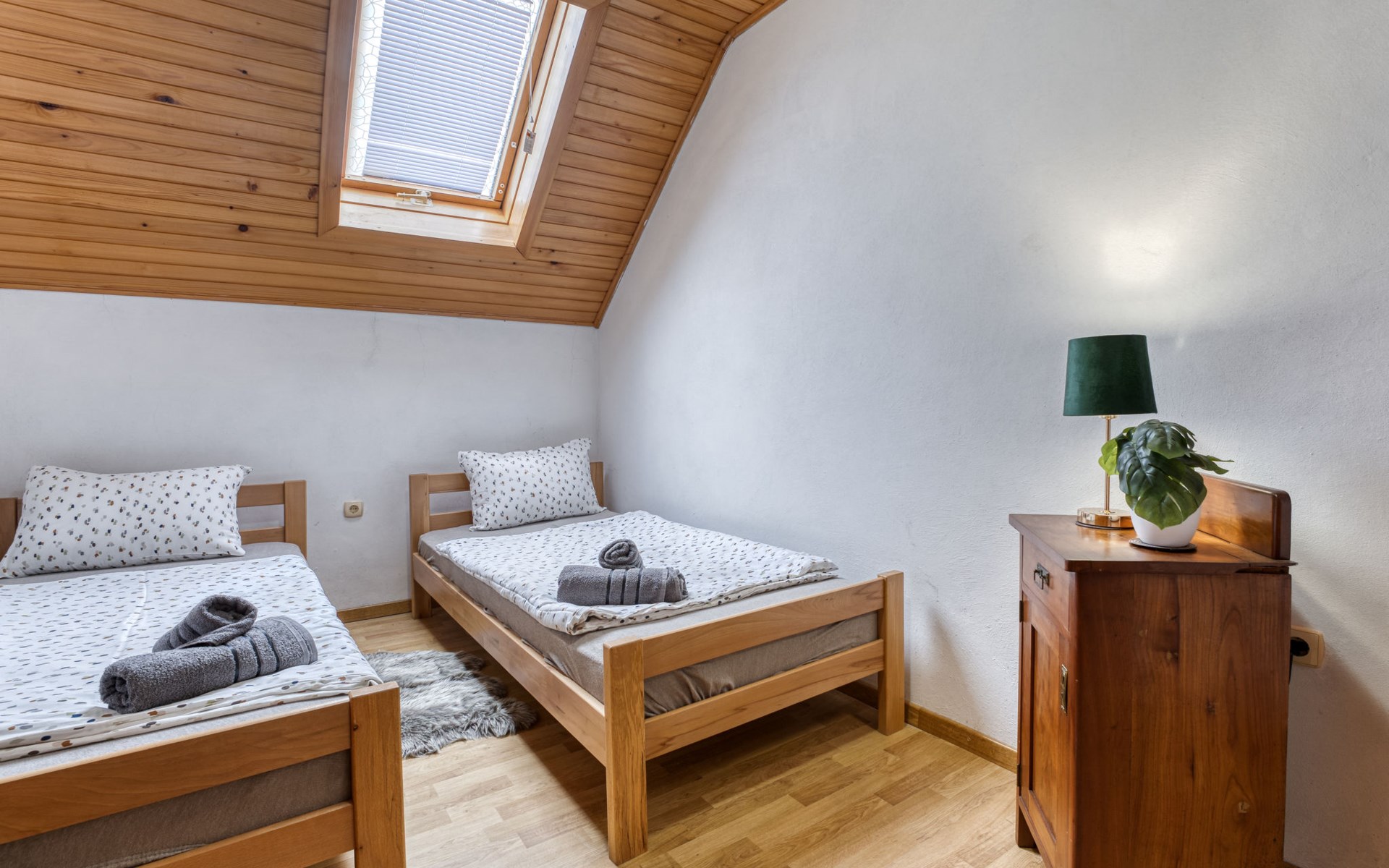 Zweifamilienhaus "Maklen", auf 2 Stockwerken. 1.5 km vom Zentrum von Brod Moravice, sonnige, erhöhte Lage, 70 km vom Meer, im Grünen. Zur Alleinbenutzung: Grundstück 1'100 m2 mit Rasen. Badminton, Grillhaus (Rutschbahn, Schaukel). Im Hause: Internetzugang, Sprudelbad (extra). Billard, Zentralheizung. Parkplatz (für 3 Autos) beim Haus auf dem Grundstück. Einkaufsgeschäft 1.6 km, Supermarkt 26 km, Restaurant 20 km, Bushaltestelle 3 km. Nahe gelegene Sehenswürdigkeiten: NP Risnjak 40 km, Zeleni vir 16 km, Kamačnik 20 km. Bitte beachten: geeignet für Familien. Der Besitzer akzeptiert keine Jugendgruppen. Ein Teil des Hauses ist geschlossen und nicht bewohnt.
