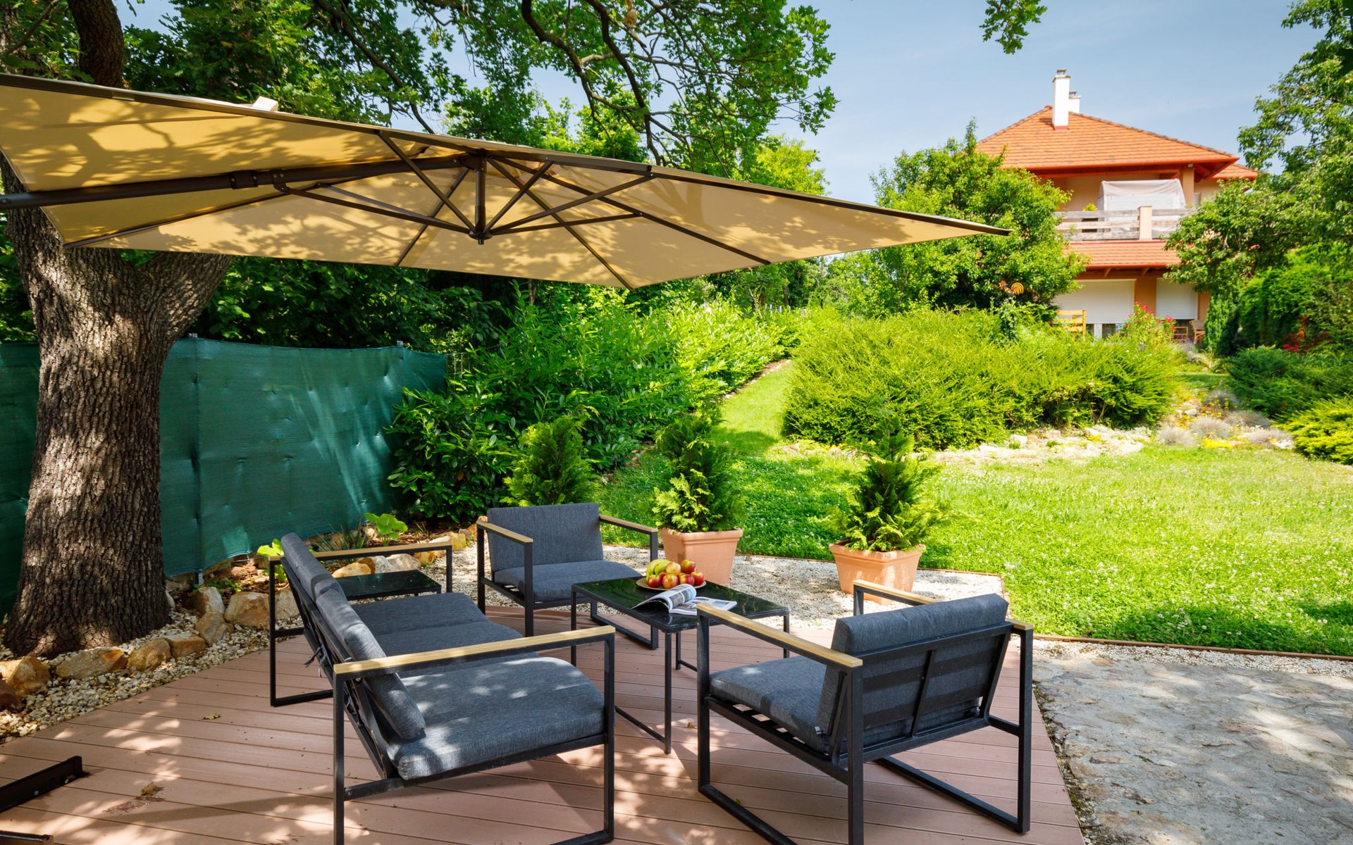 Révfülöp 25 km von Balatonfüred: Moderne, schöne Villa, renoviert im Jahre 2022. Im Ort, sonnige Lage im Villenviertel, 120 m vom See, 500 m vom Strand. Zur Mitbenutzung: Grundstück 1'800 m2 (eingezäunt), wunderschöner Garten zum Entspannen. Zur Alleinbenutzung: Aussendusche, Gartenmöbel, Grill. Im Hause: Tischtennis, Zentralheizung. Parkplatz (für 3 Autos). Lebensmittelgeschäft 900 m, Supermarkt 1 km, Restaurant, Bar, Café 700 m, Fußgängerzone 700 m, Fahrradverleih 1.1 km, Bahnstation 1 km, Grasstrand 500 m, Park 500 m, Thermalbad "Hévíz" 43 km. Golfplatz (18 Loch) 18 km, Tennis 6 km, Reitstall 2 km, Sportzentrum 2 km, Kinderspielplatz 500 m. Nahe gelegene Sehenswürdigkeiten: Tihany Abbey 26 km, Annagora Aquapark 27 km, Veszprem Zoo 43 km, Festetics Palace 37 km, Tapolca Lake Cave 17 km. Wandergebiete: Badacsony 13 km. In Balatonfüred statt, 28 km.