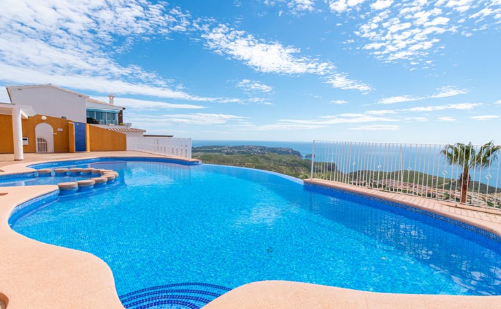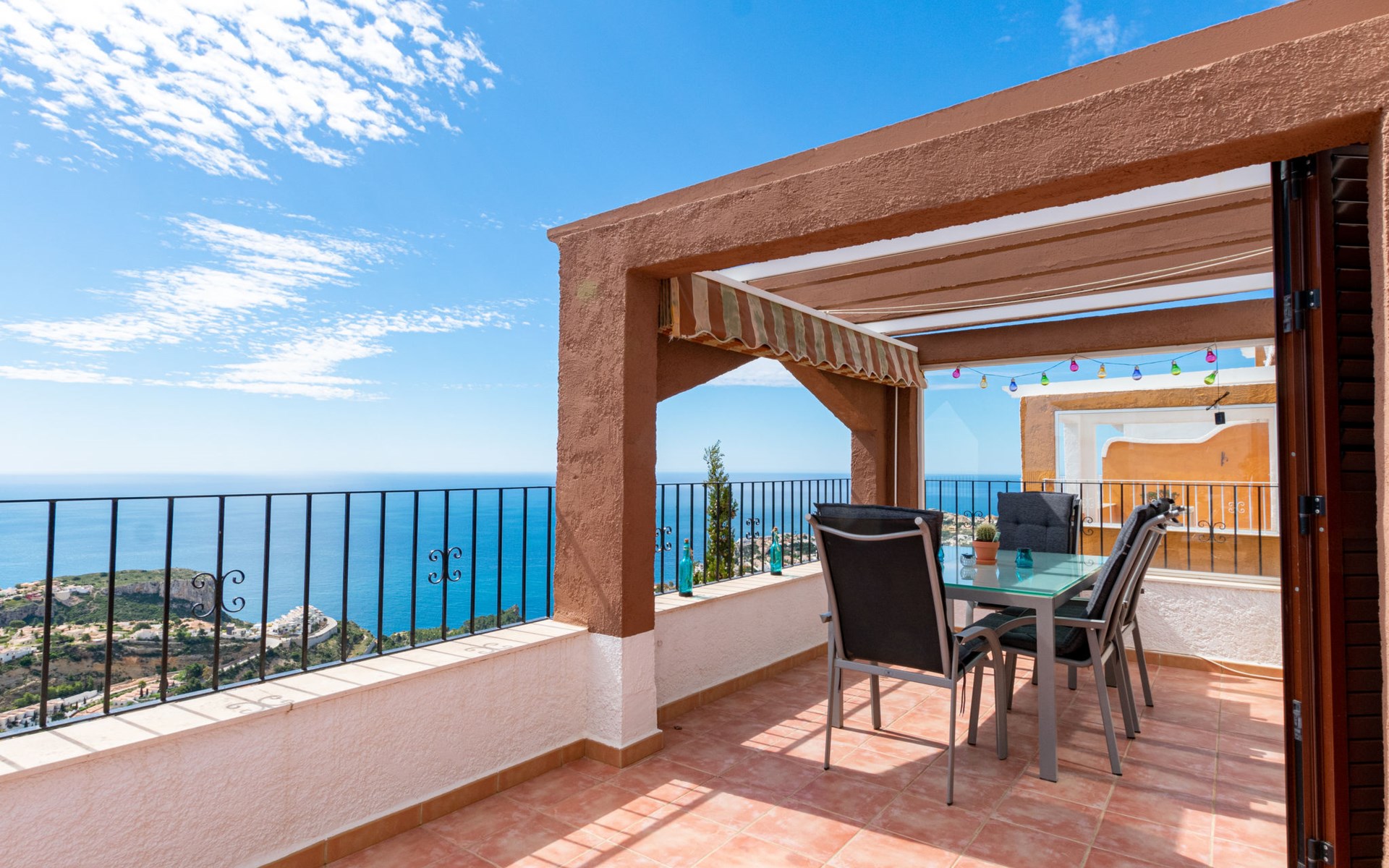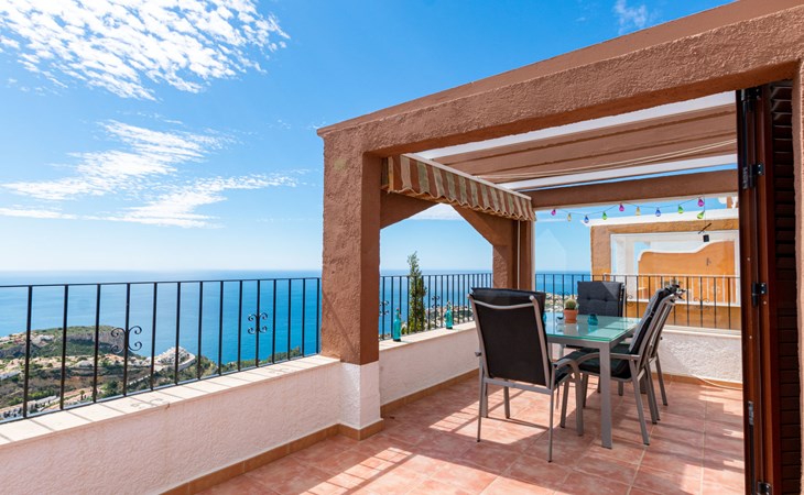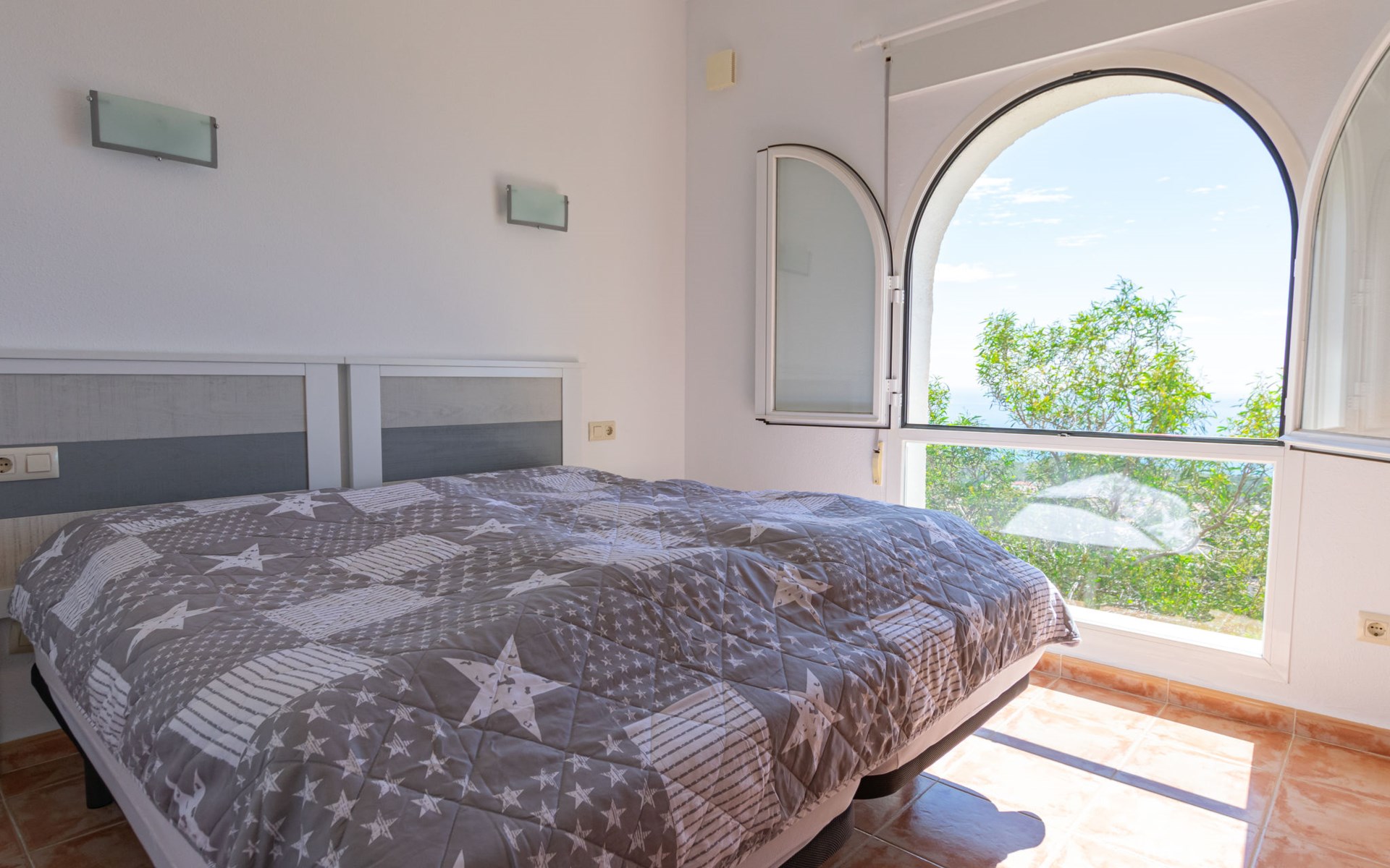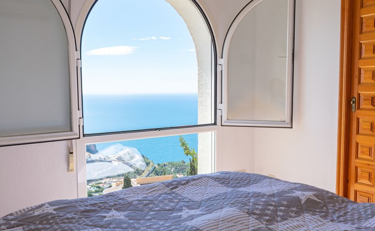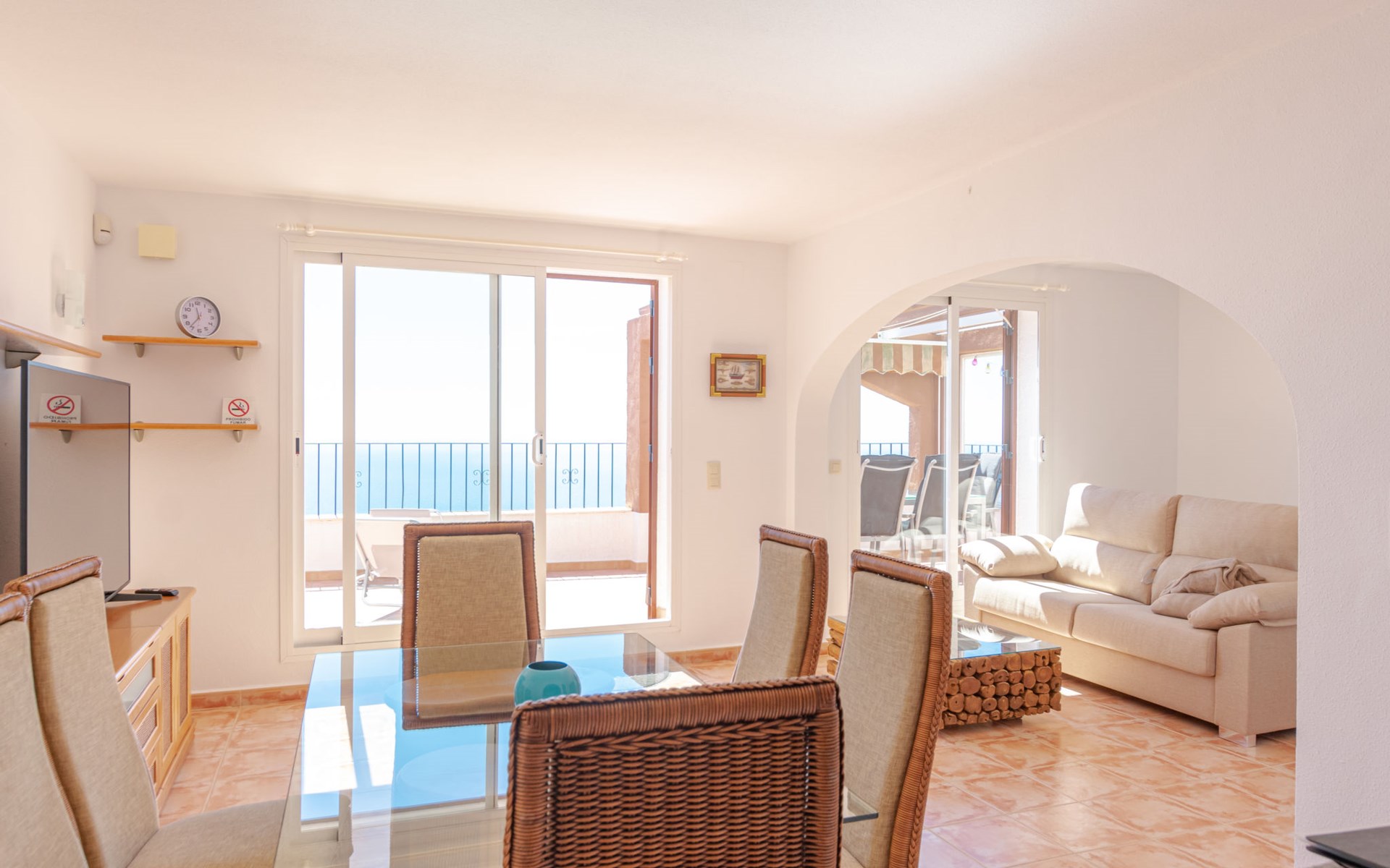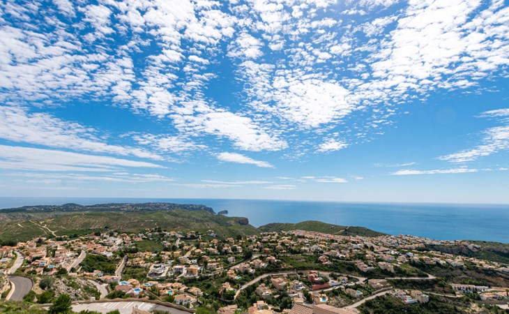 Benitachell: Feriensiedlung "Vista Mar", Baujahr 2008. Im Ortsteil Cumbre del Sol, ruhige, sonnige, erhöhte Lage, 3 km vom Meer. Zur Mitbenutzung: 2 Schwimmbäder (saisonale Verfügbarkeit: 01.Mar. - 30.Nov.) mit Innentreppe. Kinderbecken, Aussendusche, öffentliche Parkplätze auf der Strasse. Supermarkt 1 km, Einkaufszentrum 2 km, Restaurant 2 km, Bushaltestelle 6 km, Sandstrand "Arenal" 7 km, Badebucht 3 km. Bitte beachten: Fahrzeug empfohlen, kein Fahrstuhl vorhanden. Der Besitzer akzeptiert keine Jugendgruppen.