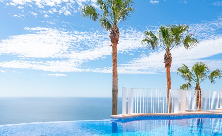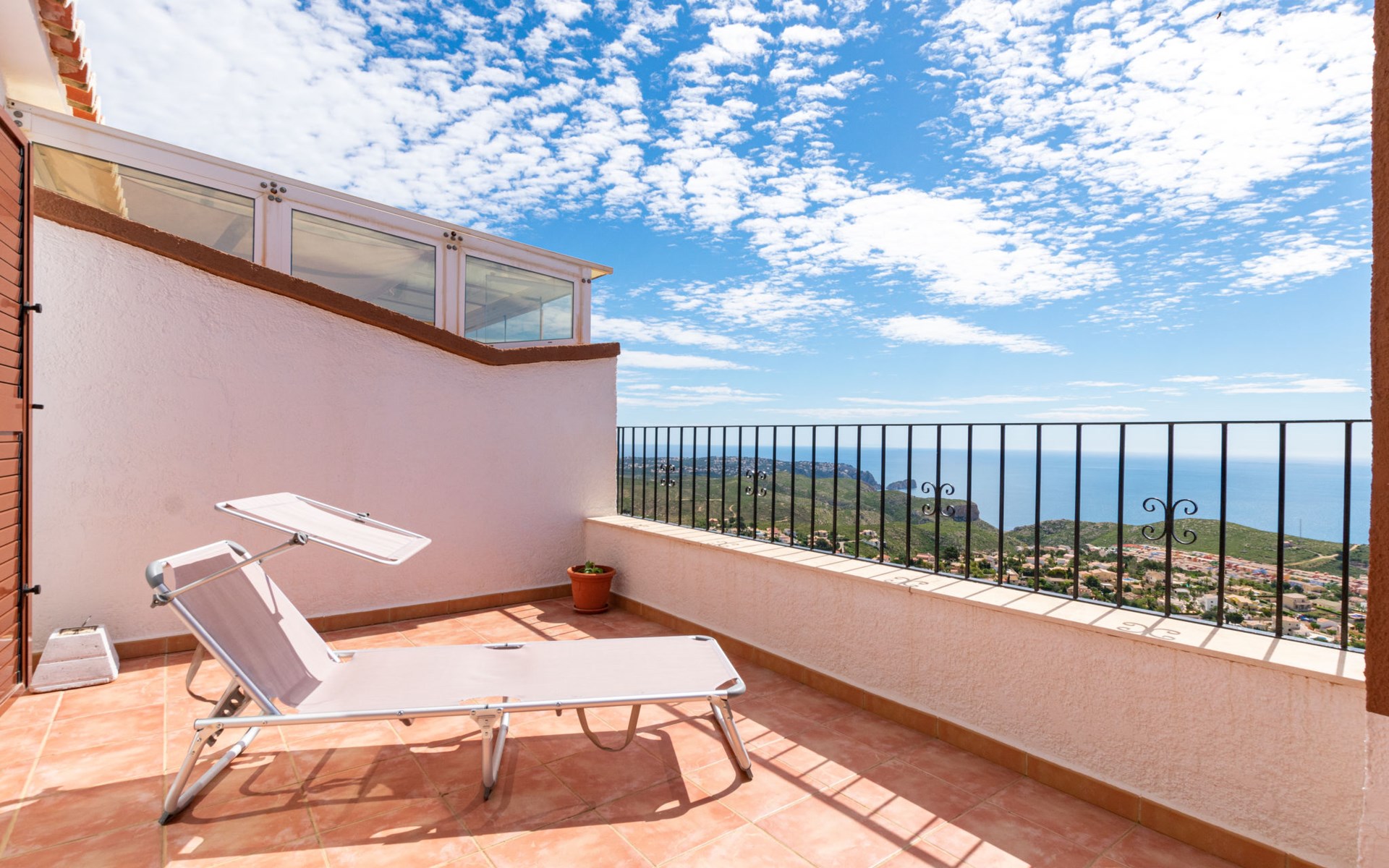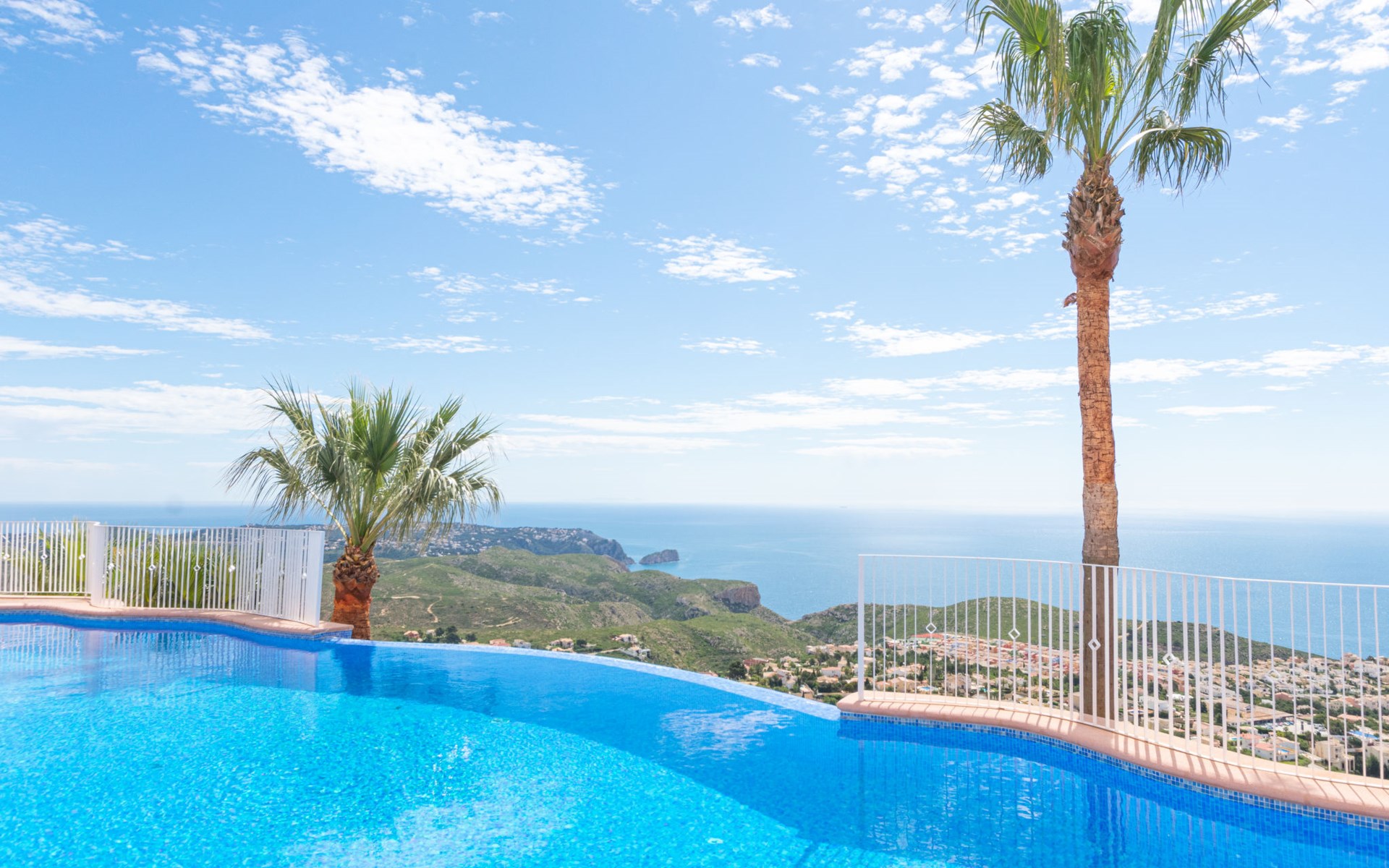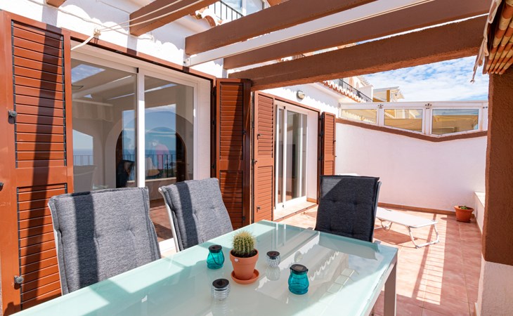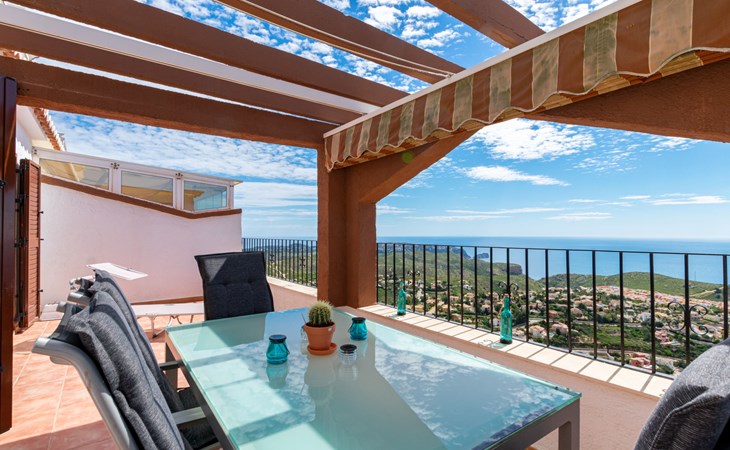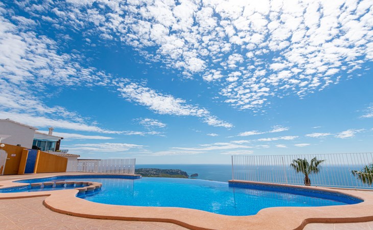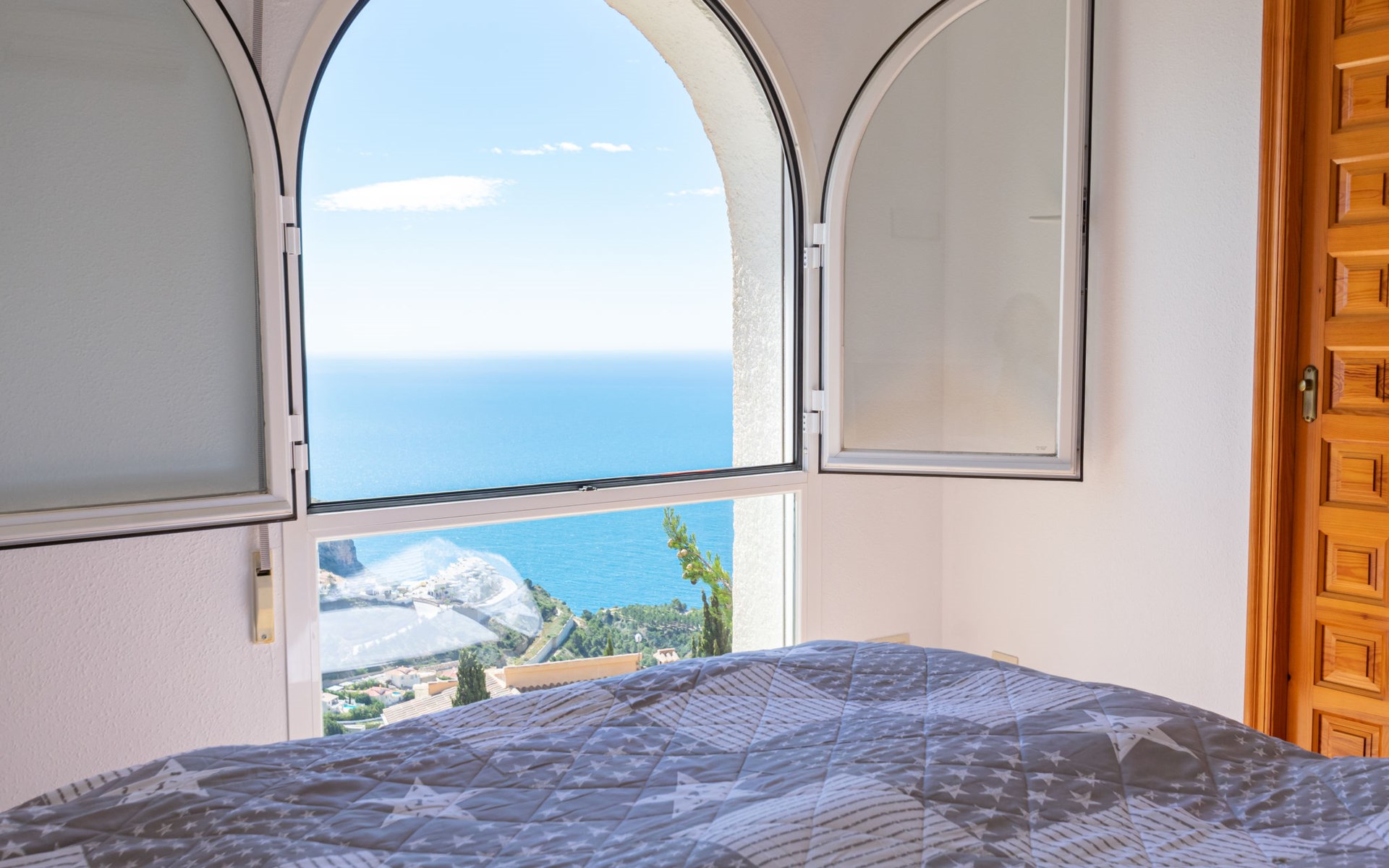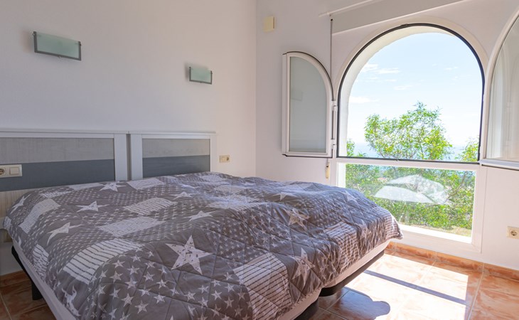 Benitachell: Feriensiedlung "Vista Mar", Baujahr 2008. Im Ortsteil Cumbre del Sol, ruhige, sonnige, erhöhte Lage, 3 km vom Meer. Zur Mitbenutzung: 2 Schwimmbäder (saisonale Verfügbarkeit: 01.Mar. - 30.Nov.) mit Innentreppe. Kinderbecken, Aussendusche, öffentliche Parkplätze auf der Strasse. Supermarkt 1 km, Einkaufszentrum 2 km, Restaurant 2 km, Bushaltestelle 6 km, Sandstrand "Arenal" 7 km, Badebucht 3 km. Bitte beachten: Fahrzeug empfohlen, kein Fahrstuhl vorhanden. Der Besitzer akzeptiert keine Jugendgruppen.