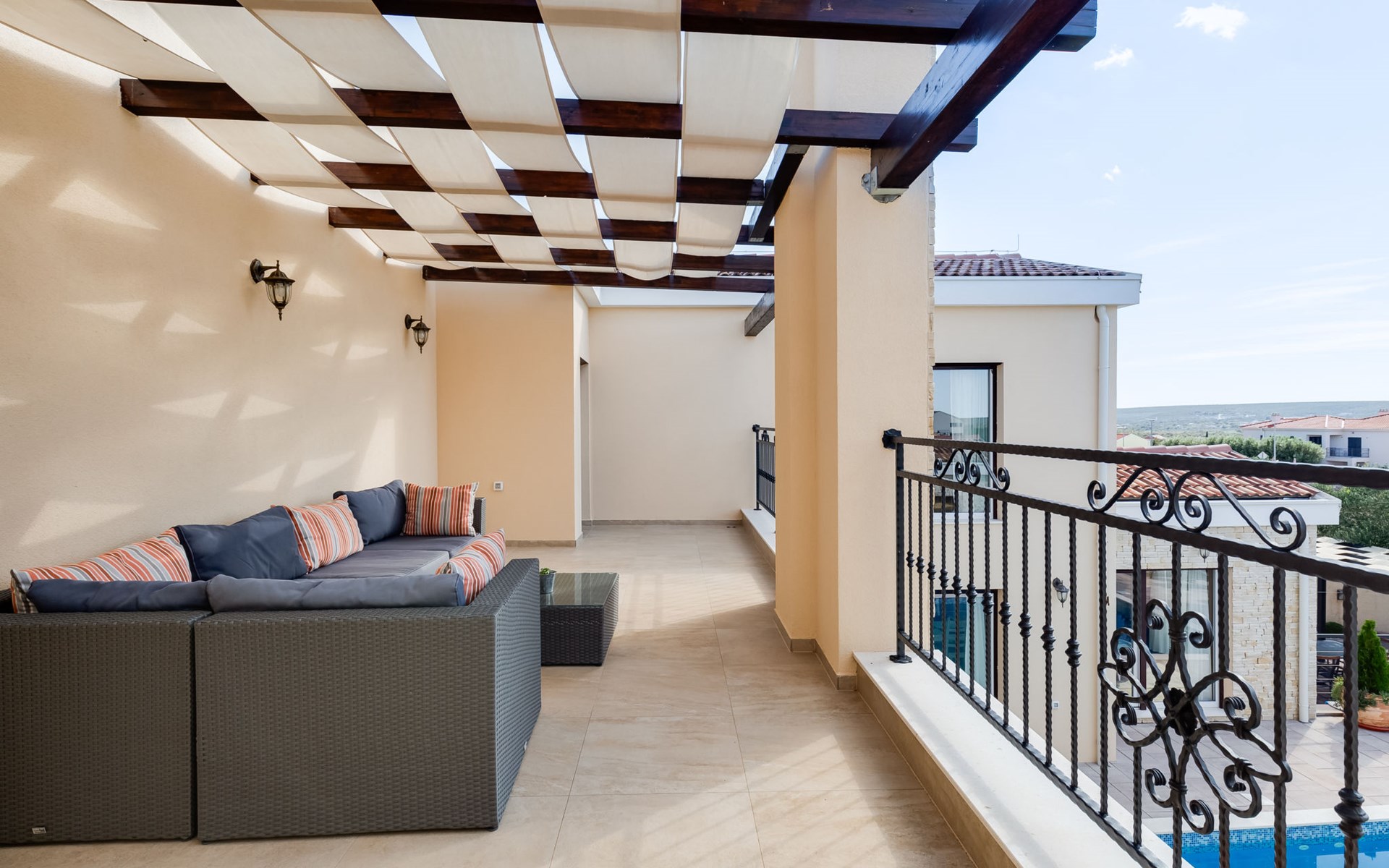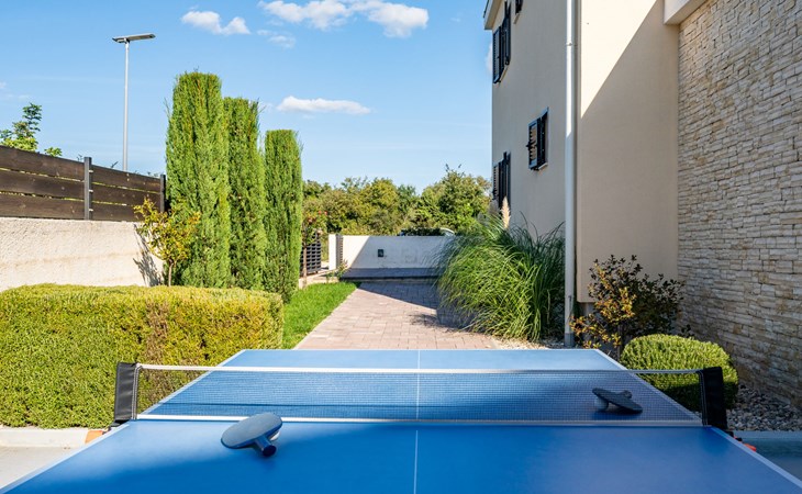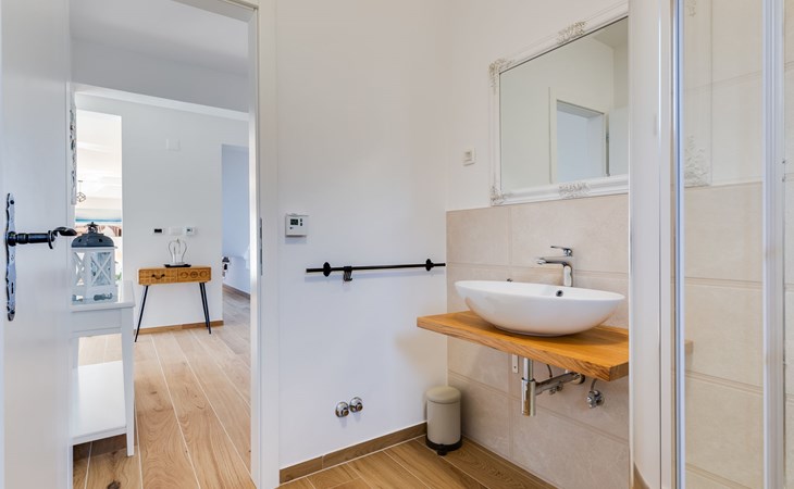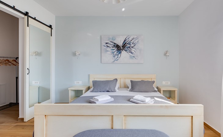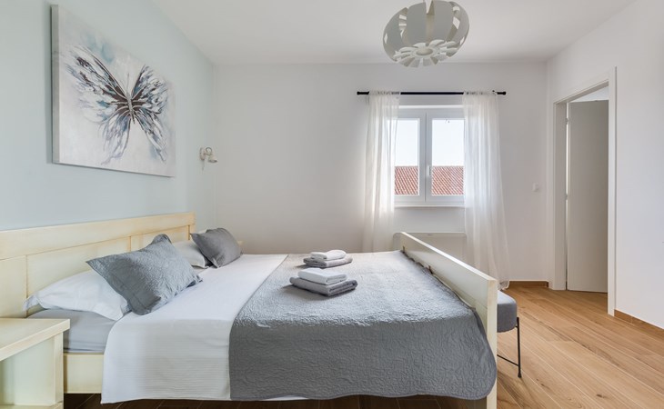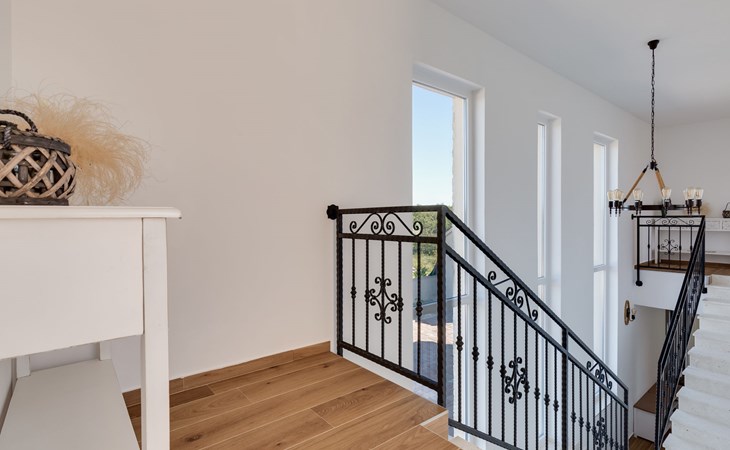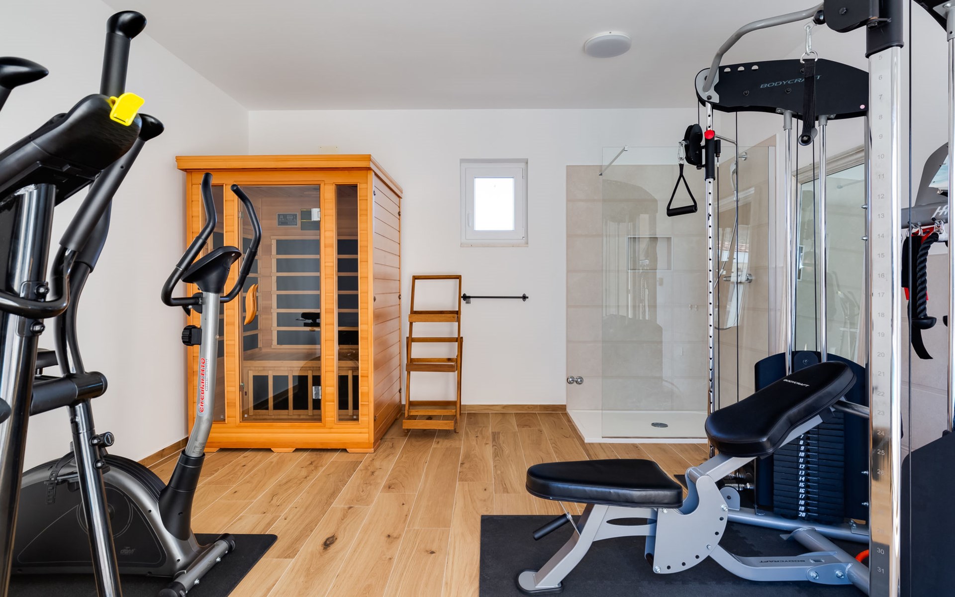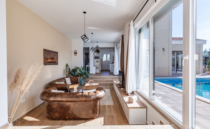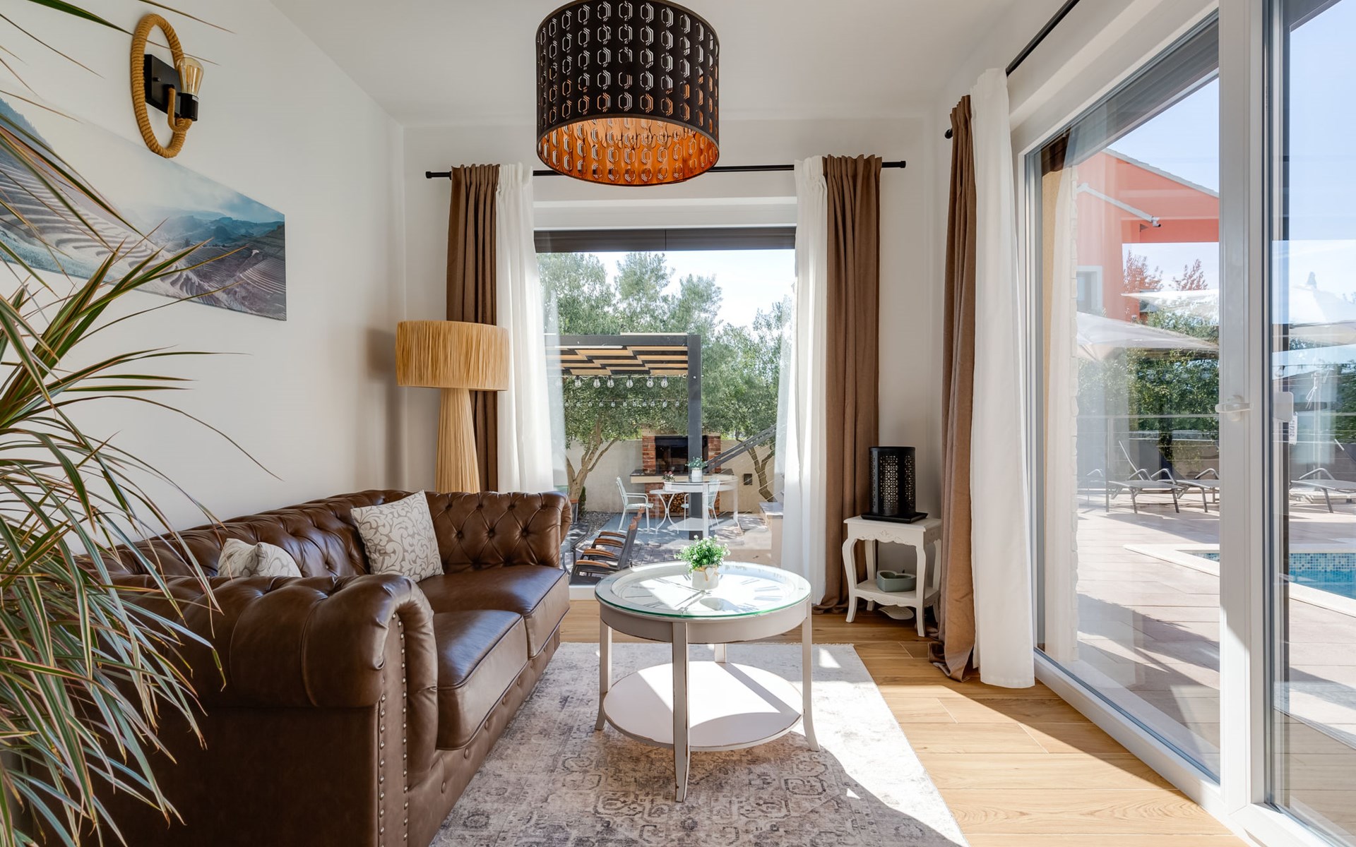 Gorica 10 km von Sukošan: Luxuriöses Einfamilienhaus "Jagoda". Ruhige, sonnige Lage, 8 km vom Meer. Zur Alleinbenutzung: Grundstück 700 m2 (eingezäunt), Pflanzen und Blumen, Schwimmbad (8 x 6 m, 48 m2, 150 cm tief, saisonale Verfügbarkeit: 01.Mai. - 01.Okt.) mit Innentreppe und Salzelektrolyse-Reinigungssystem. Aussendusche, Sprudelbad, Tischtennis, Gartenmöbel, Grill (Rutschbahn, Schaukel). Im Hause: Internetzugang, Sauna, Fitnessraum, Trampolin, Waschmaschine. Parkplatz (für 4 Autos) beim Haus auf dem Grundstück. Einkaufsgeschäft 500 m, Supermarkt 10 km, Restaurant 10 km, Bushaltestelle 8.9 km, Kieselstrand 8 km. Nahe gelegene Sehenswürdigkeiten: Nationalpark Paklenica 50 km, Nationalpark Krka 68 km, Nationalpark Plitvice 152 km. Bekannte Seen in der Umgebung sind gut erreichbar: Park prirode Vransko jezero 18 km. Der Besitzer akzeptiert keine Jugendgruppen.