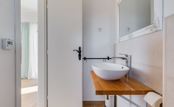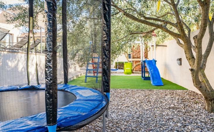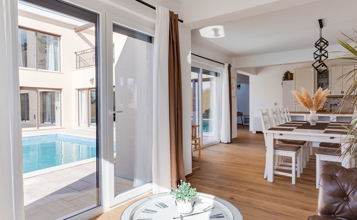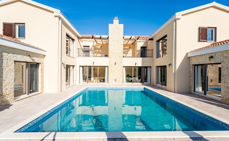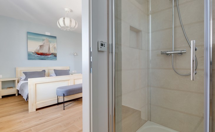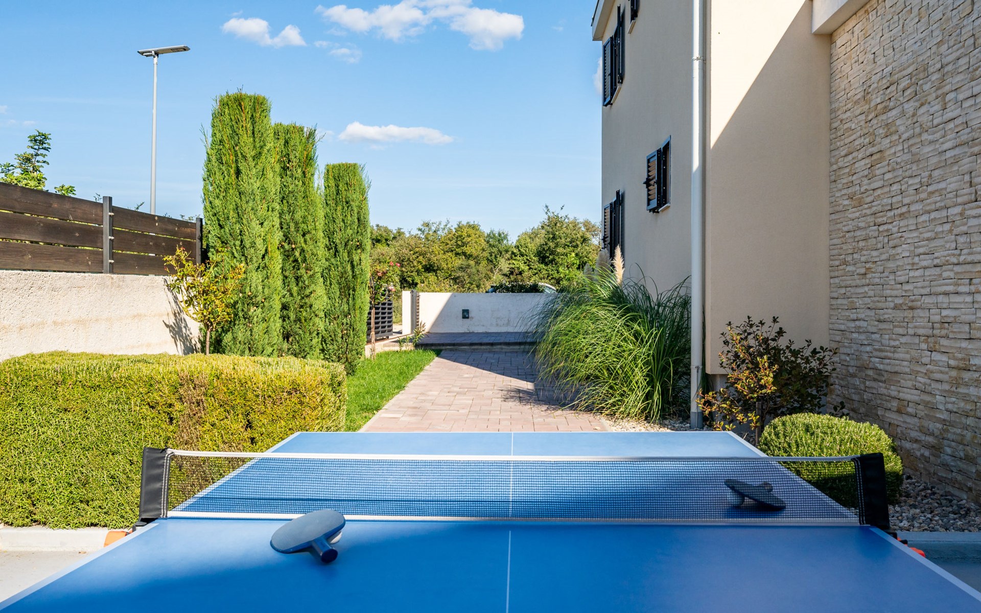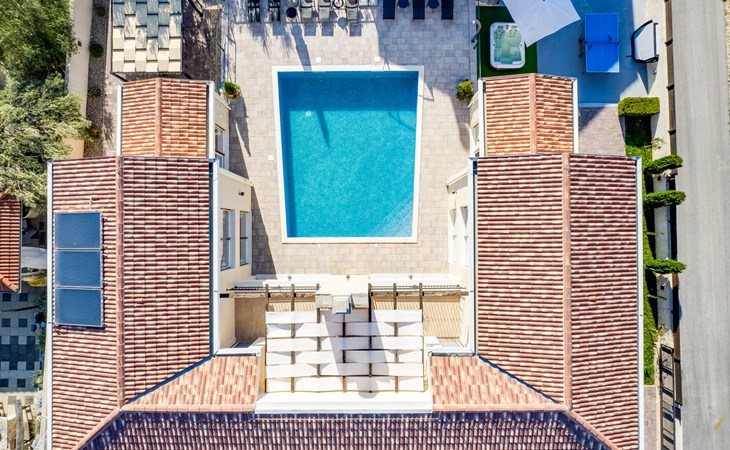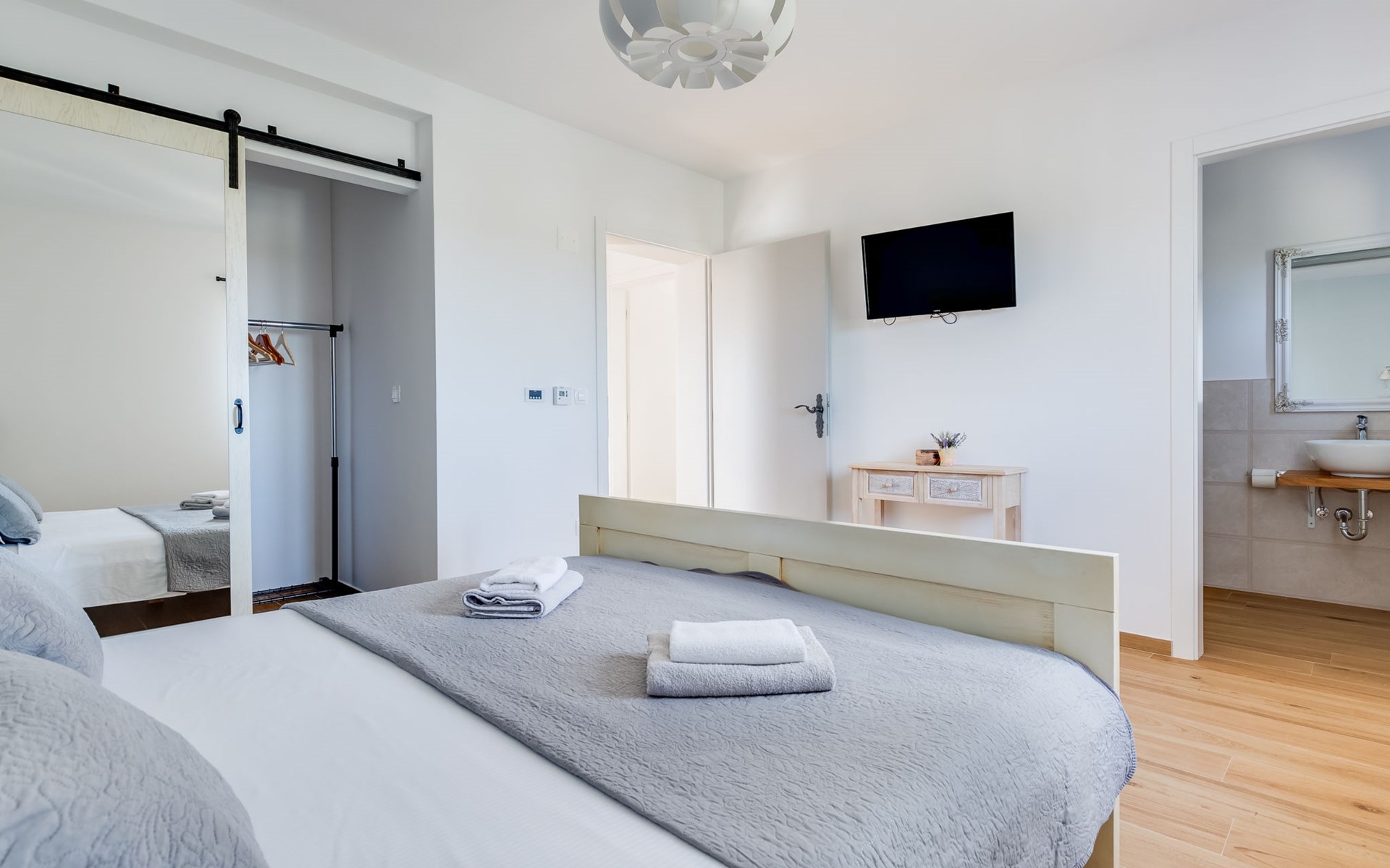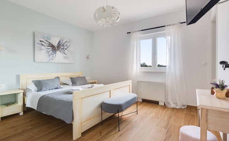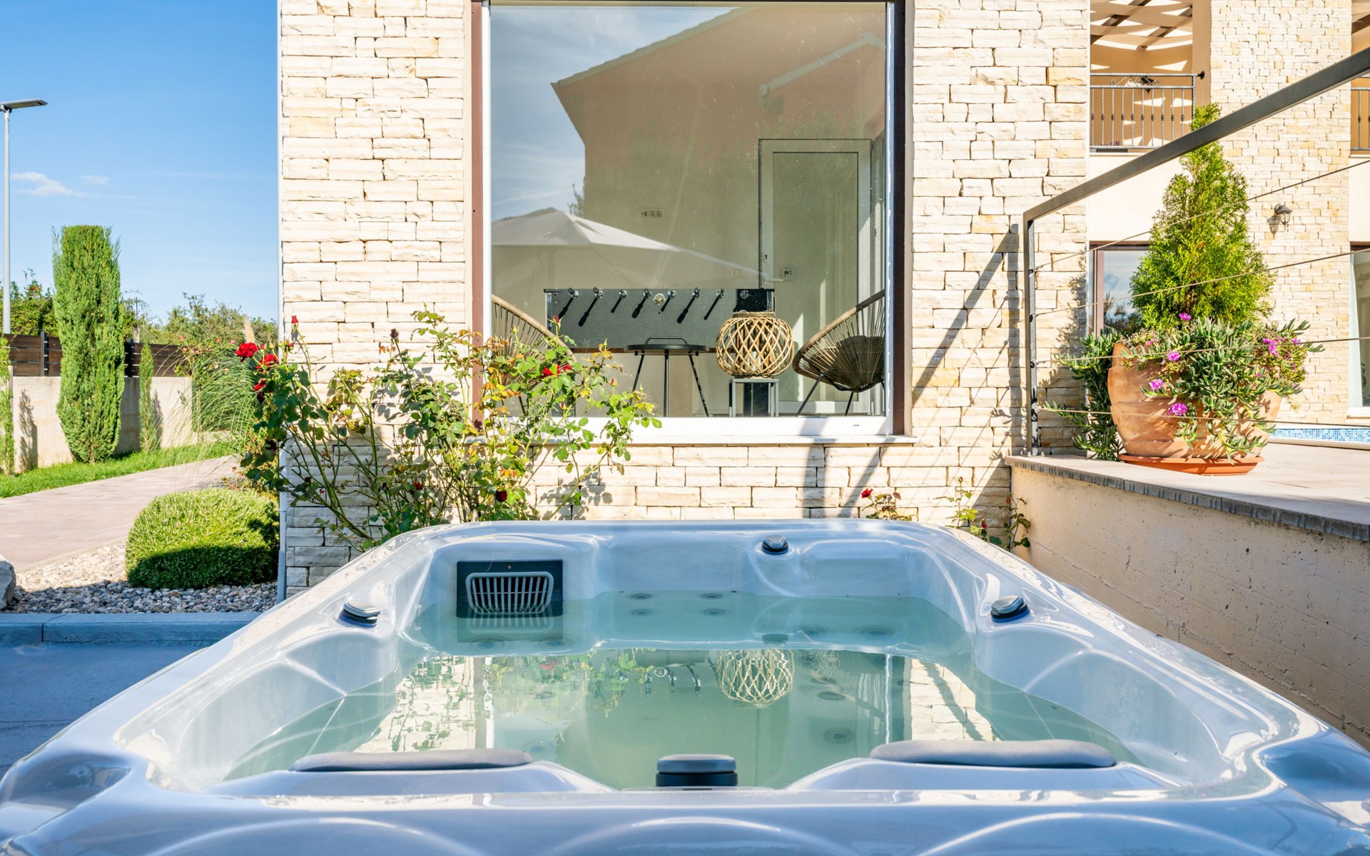 Gorica 10 km von Sukošan: Luxuriöses Einfamilienhaus "Jagoda". Ruhige, sonnige Lage, 8 km vom Meer. Zur Alleinbenutzung: Grundstück 700 m2 (eingezäunt), Pflanzen und Blumen, Schwimmbad (8 x 6 m, 48 m2, 150 cm tief, saisonale Verfügbarkeit: 01.Mai. - 01.Okt.) mit Innentreppe und Salzelektrolyse-Reinigungssystem. Aussendusche, Sprudelbad, Tischtennis, Gartenmöbel, Grill (Rutschbahn, Schaukel). Im Hause: Internetzugang, Sauna, Fitnessraum, Trampolin, Waschmaschine. Parkplatz (für 4 Autos) beim Haus auf dem Grundstück. Einkaufsgeschäft 500 m, Supermarkt 10 km, Restaurant 10 km, Bushaltestelle 8.9 km, Kieselstrand 8 km. Nahe gelegene Sehenswürdigkeiten: Nationalpark Paklenica 50 km, Nationalpark Krka 68 km, Nationalpark Plitvice 152 km. Bekannte Seen in der Umgebung sind gut erreichbar: Park prirode Vransko jezero 18 km. Der Besitzer akzeptiert keine Jugendgruppen.