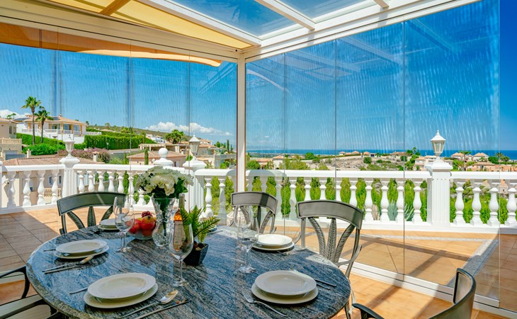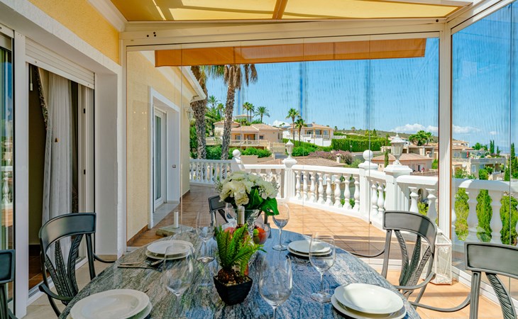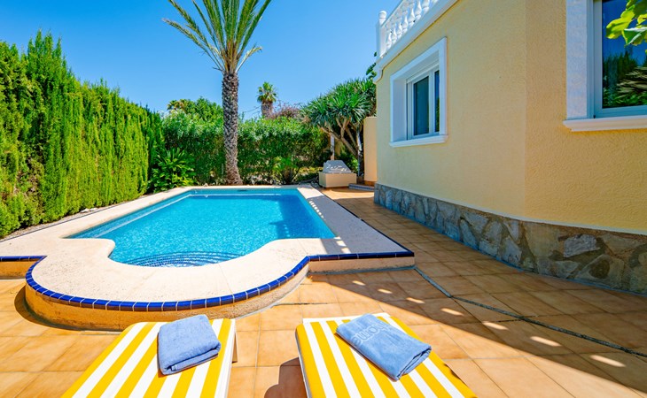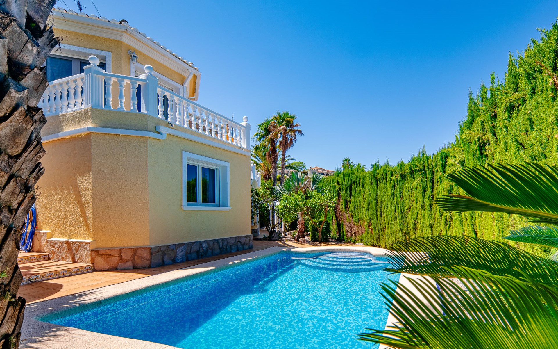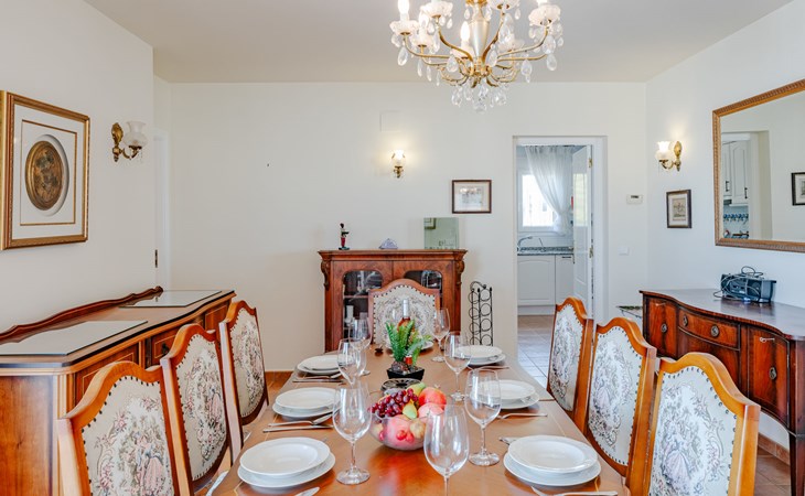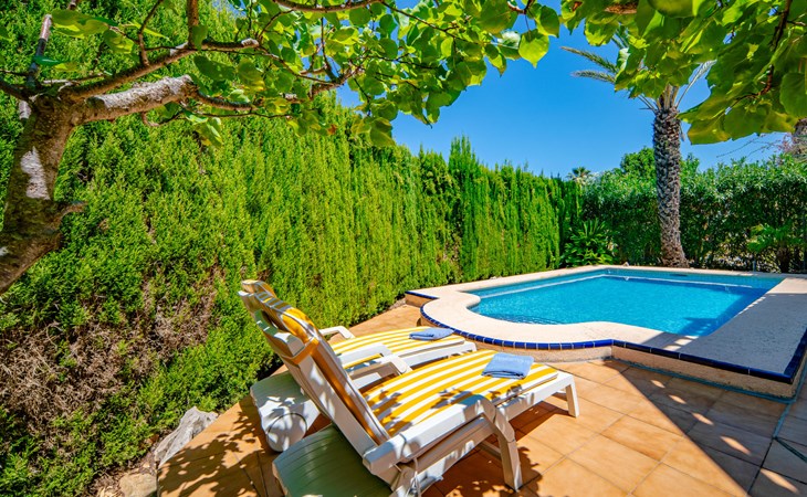 Sehr grosse, sehr schöne Villa "Marques", auf 2 Stockwerken. Im Ortsteil Marquesa VI, ruhige, sonnige Lage im Villenviertel, 5.3 km vom Meer, 5.3 km vom Strand. Zur Alleinbenutzung: grosser, schöner, gepflegter terrassierter Garten, Schwimmbad eckig (6 x 4 m, 120 - 170 cm tief, saisonale Verfügbarkeit: 01.Jan. - 31.Dez.) mit Innentreppe. Aussendusche, Pergola, Parkplatz (für 3 Autos) auf dem Grundstück. Supermarkt 3.7 km, Restaurant 2.8 km, Sandstrand "La Marineta Cassiana" 5.8 km. Surfschule 5.8 km, Segelschule 5.8 km. Der Besitzer akzeptiert keine Jugendgruppen.