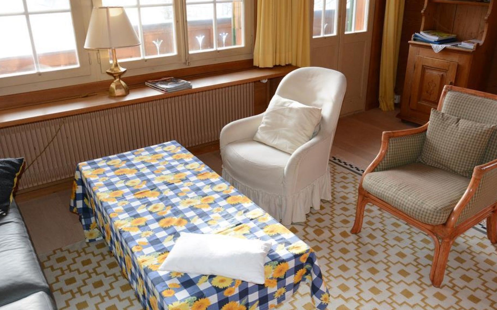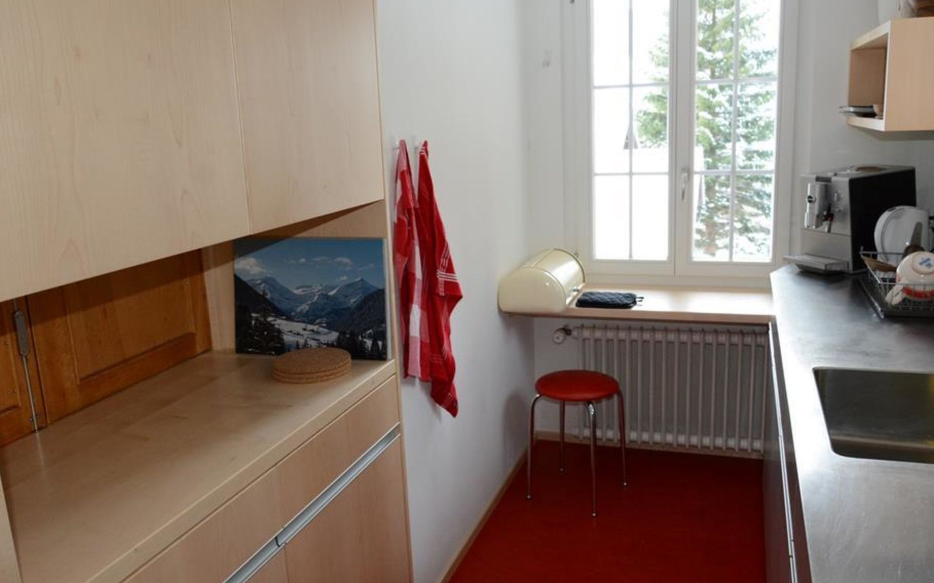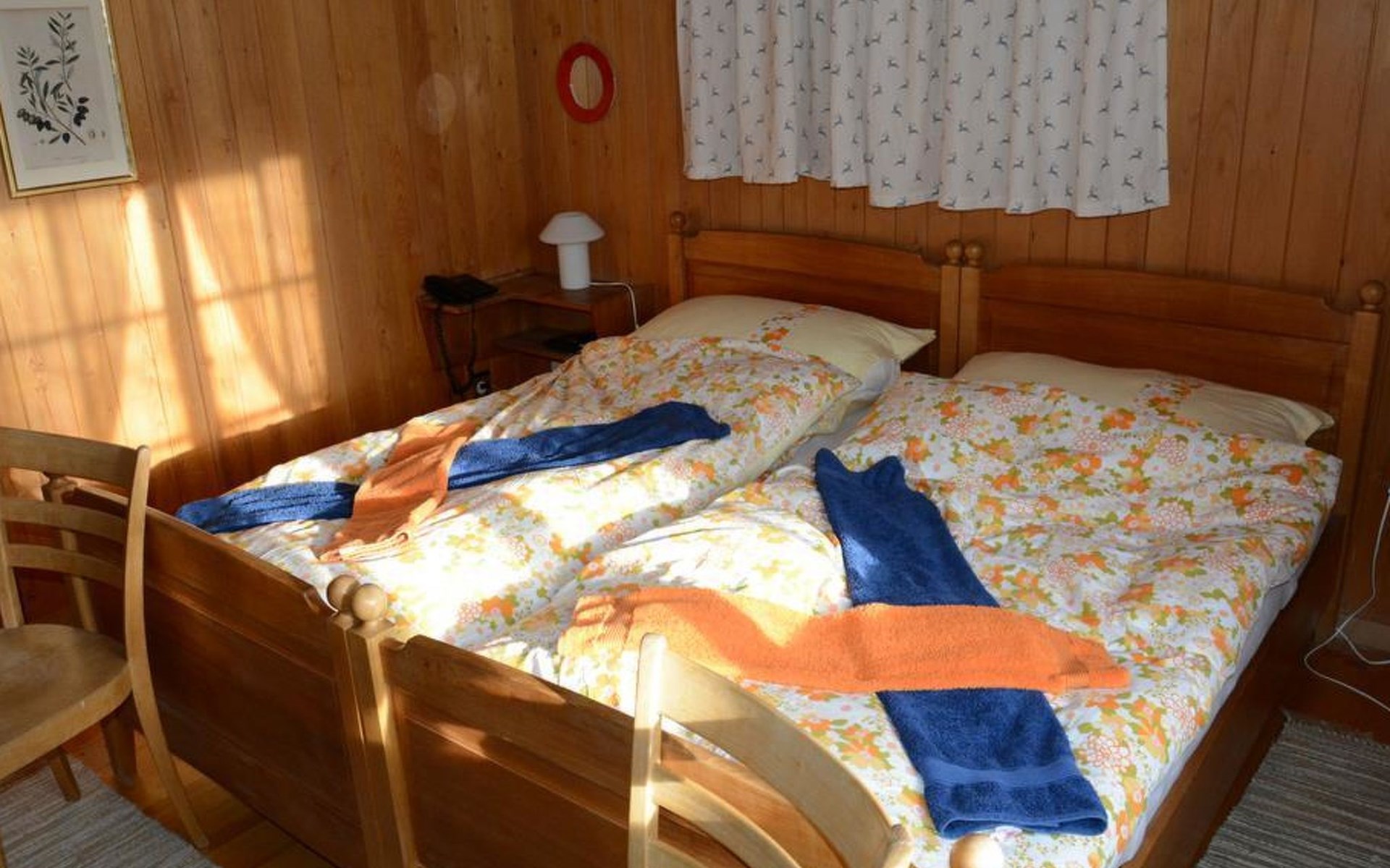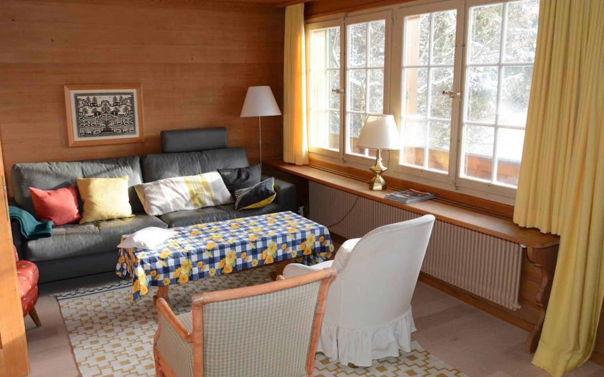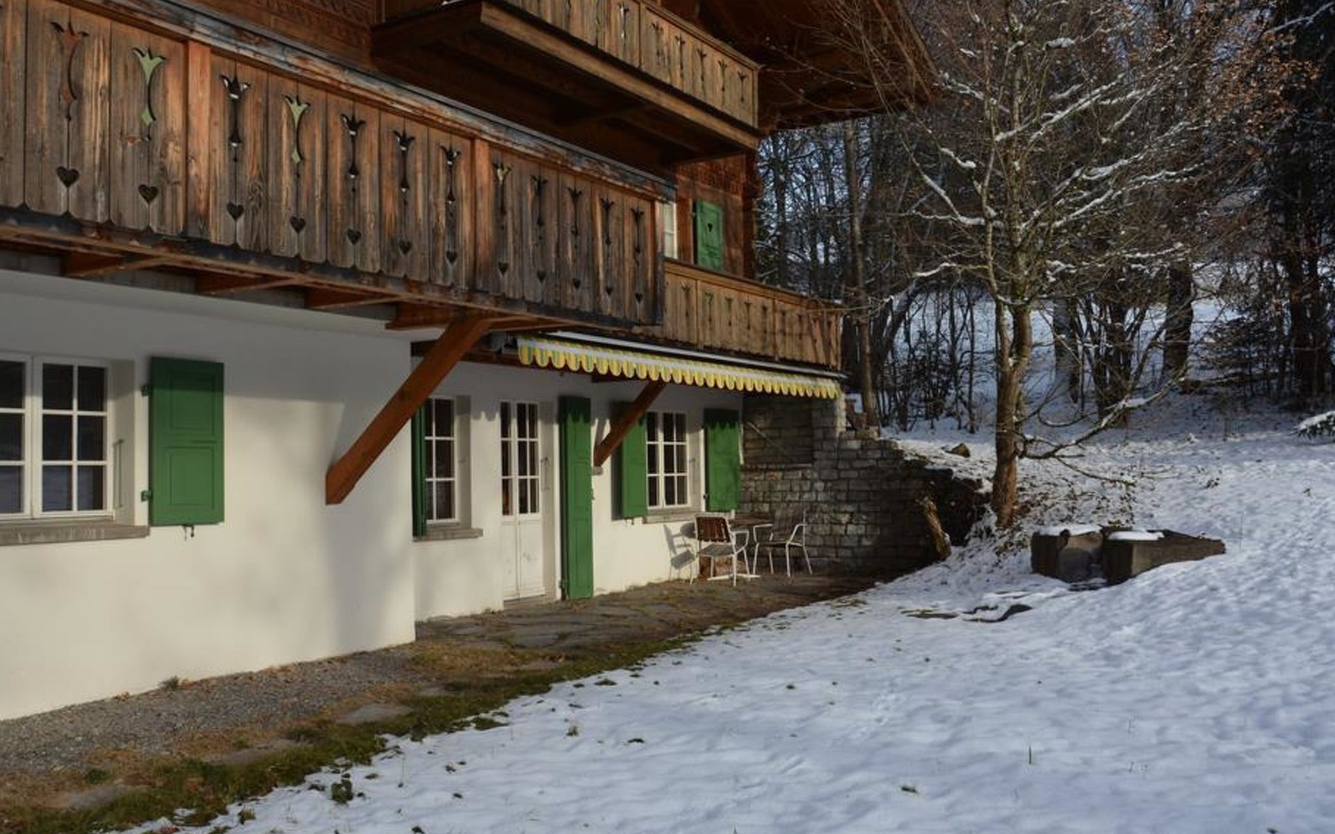 Gemütliches Holz-Chalet auf 3 Etagen. Erdgeschoss: Spielzimmer mit Tischtennistisch. Waschmaschine und Wäschetrockner. 1. Stock: Ess-/Wohnzimmer mit Sitzgruppe, Radio, TV, Balkon. Ältere Küche u.a. ausgestattet mit Mikrowelle, Geschirrspüler, Kühlschrank mit Gefrierfach, Kaffeevollautomat, Fondue- und Raclette-Set sowie Durchreiche ins Ess-/Wohnzimmer. 1 kleineres Schlafzimmer mit Doppelbett (2x90x200cm). Bad, WC. 2. Stock: 1 kleines Schlafzimmer mit Einzelbett (90x200cm) und Lavabo. 2 Schlafzimmer mit Doppelbett (2x90x200cm), Lavabo und Balkon. Dusche/WC. WiFi.