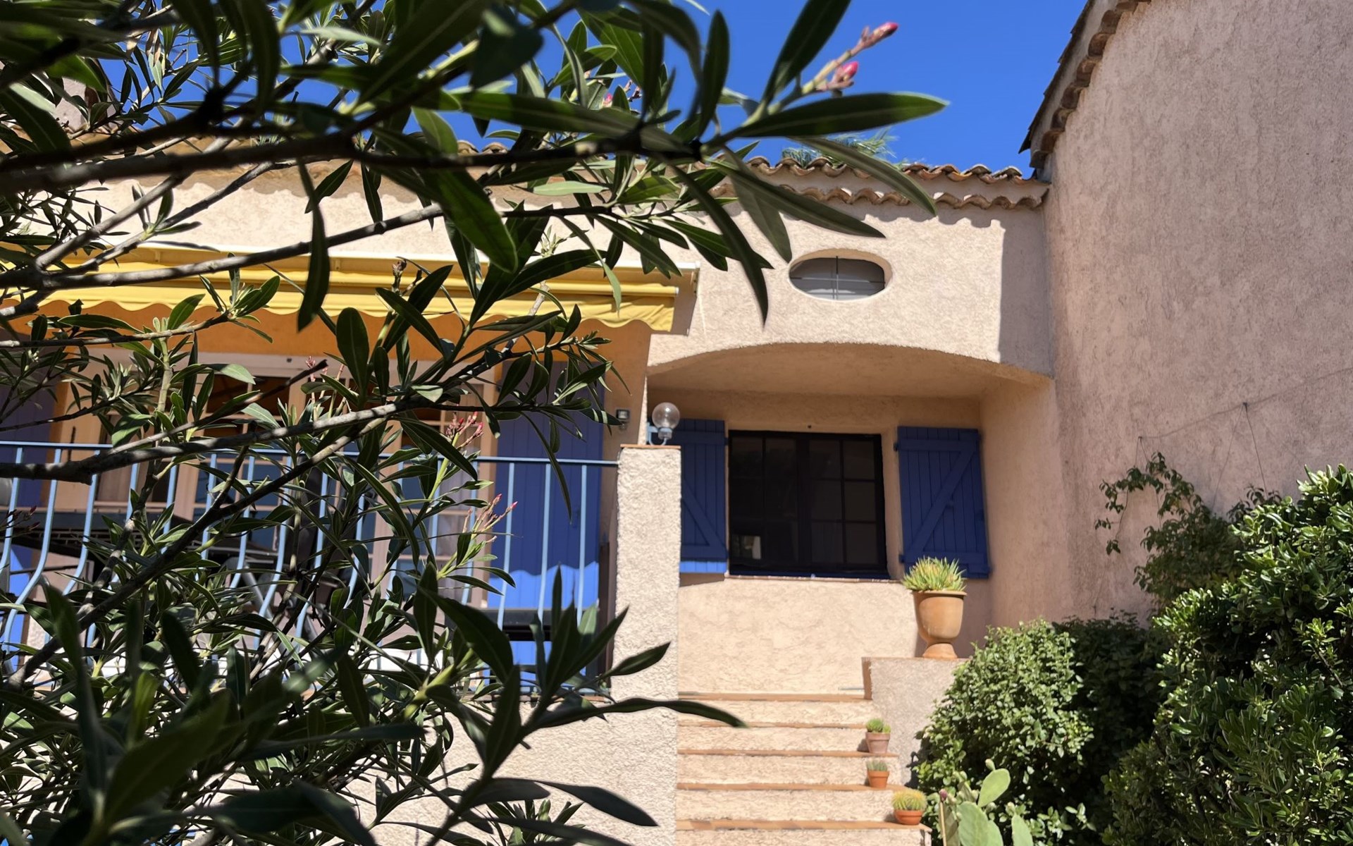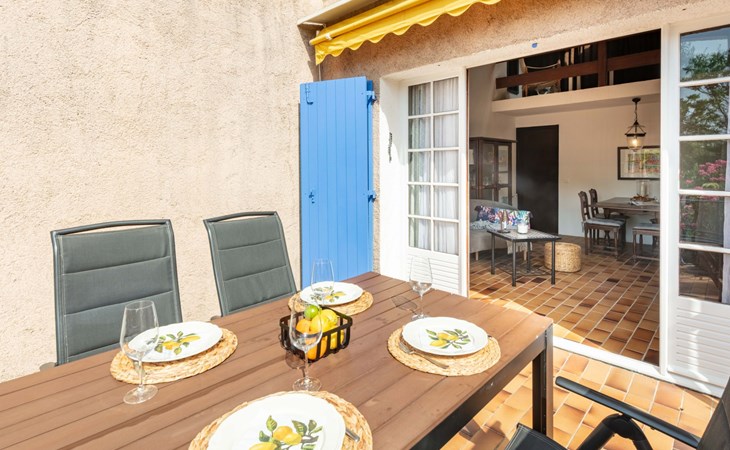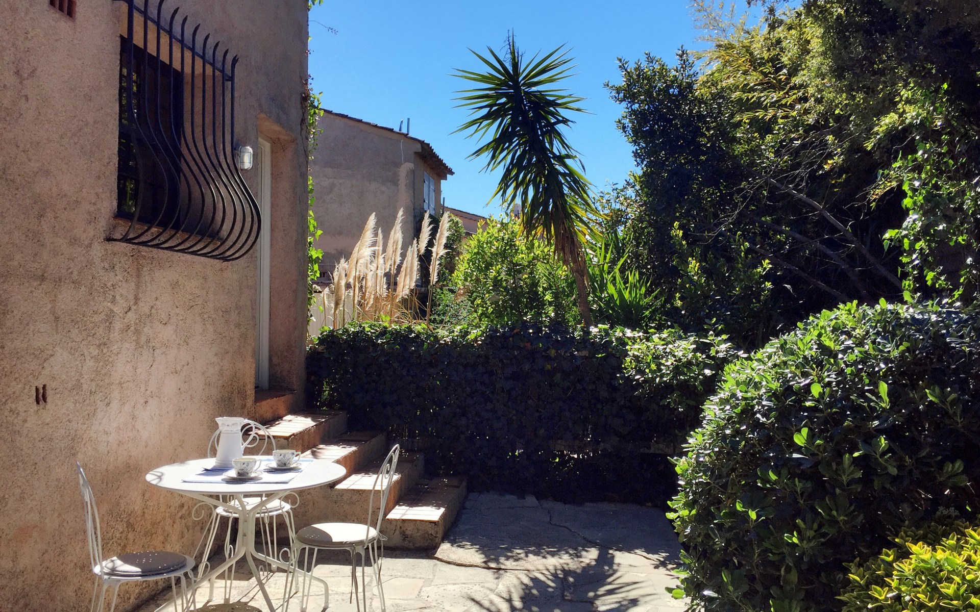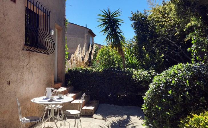Reihenhaus "La Maison bleue". 6 km vom Zentrum von Grimaud, 1.5 km vom Zentrum von Port Grimaud, 10 km vom Zentrum von Saint Tropez, in einem Wohnquartier, 1 km vom Meer. Zur Alleinbenutzung: gepflegter Garten 240 m2 mit Pflanzen. Aussendusche. Treppenweg (8 Stufen) bis zum Haus. Öffentliche Parkplätze auf der Strasse. Einkaufsgeschäft 200 m, Bushaltestelle 1.2 km, Sandstrand 1 km.