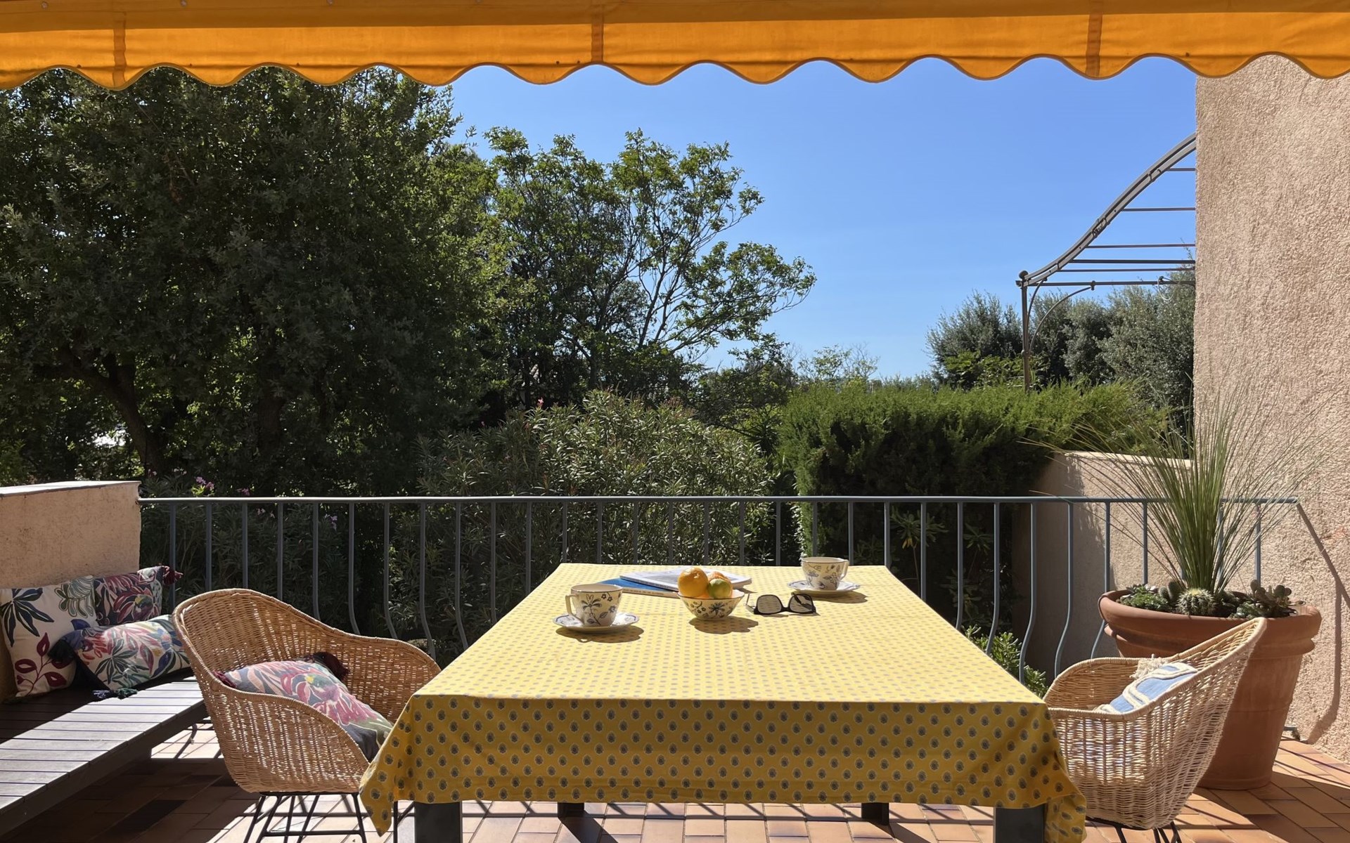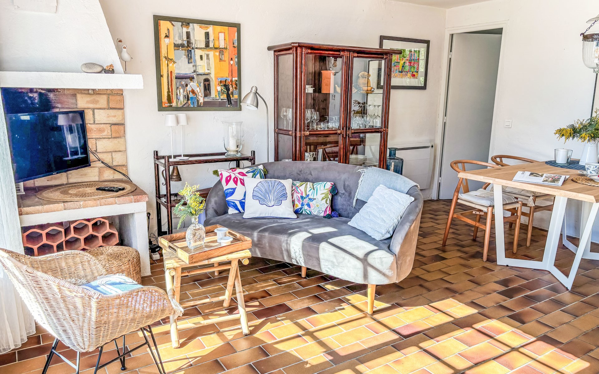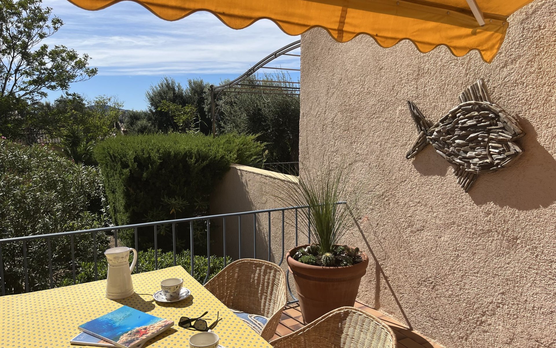 Reihenhaus "La Maison bleue". 6 km vom Zentrum von Grimaud, 1.5 km vom Zentrum von Port Grimaud, 10 km vom Zentrum von Saint Tropez, in einem Wohnquartier, 1 km vom Meer. Zur Alleinbenutzung: gepflegter Garten 240 m2 mit Pflanzen. Aussendusche. Treppenweg (8 Stufen) bis zum Haus. Öffentliche Parkplätze auf der Strasse. Einkaufsgeschäft 200 m, Bushaltestelle 1.2 km, Sandstrand 1 km.