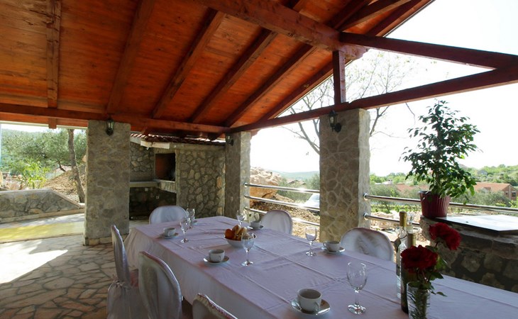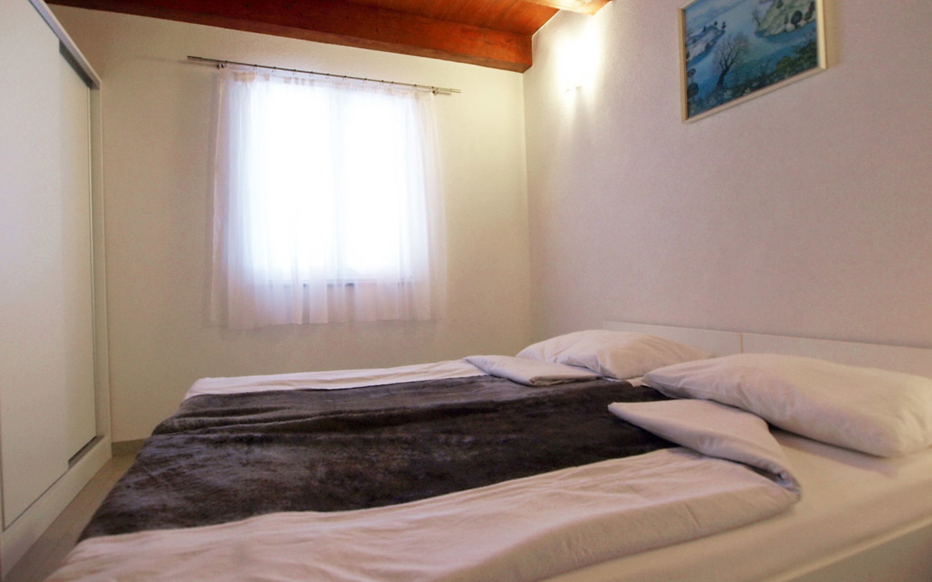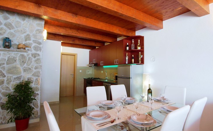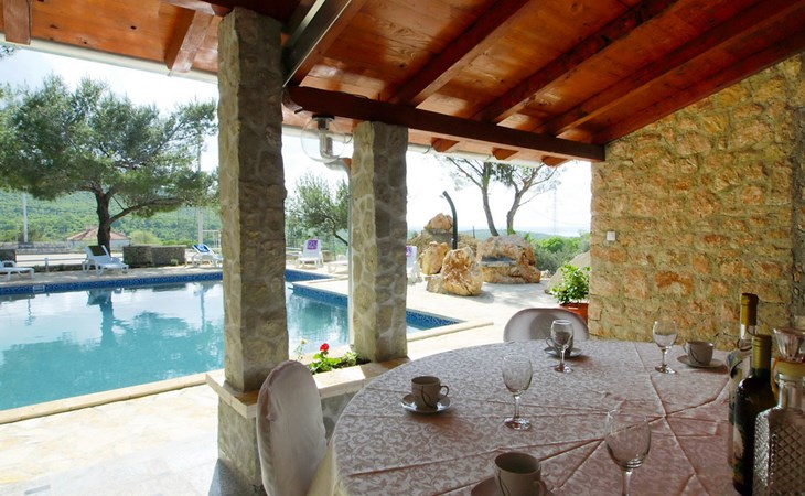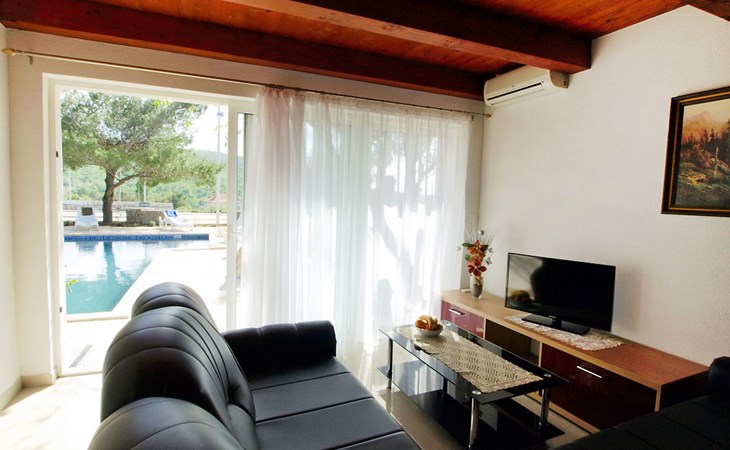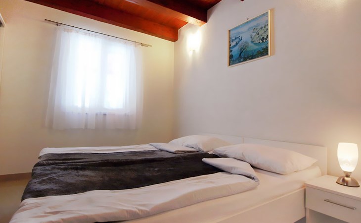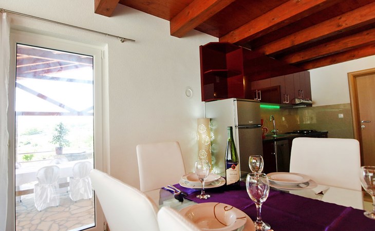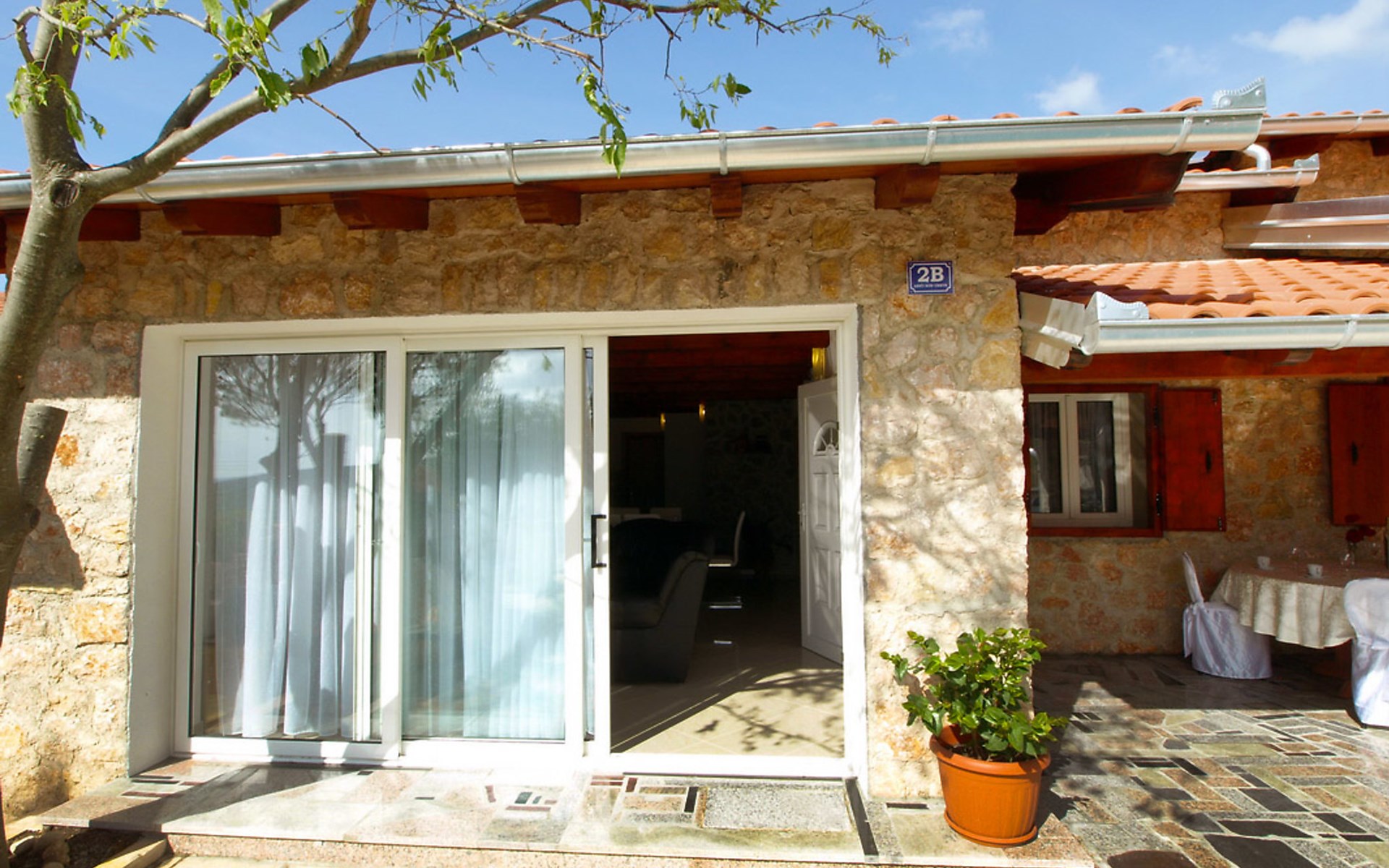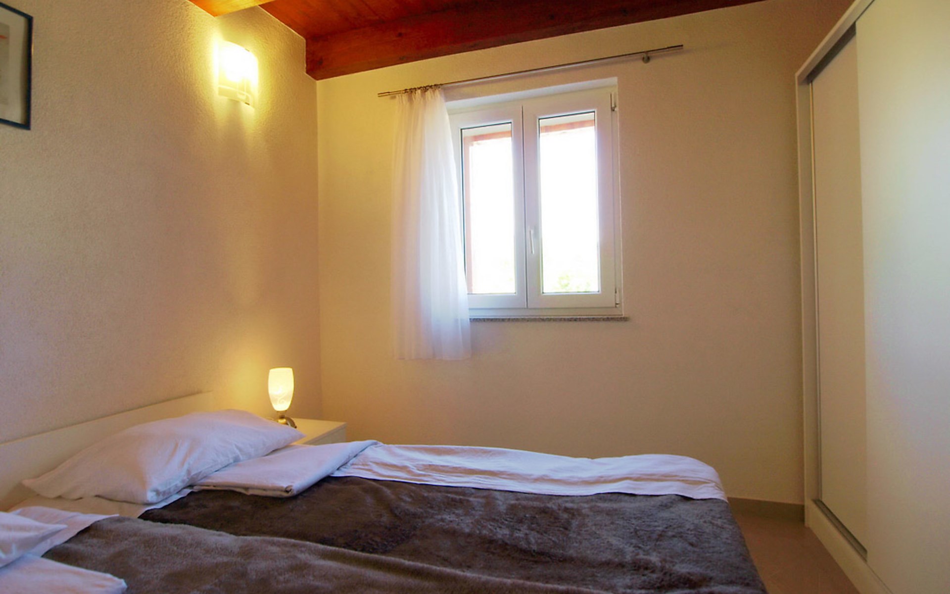 Die Wohneinheit besteht aus 2 Wohnungen, die aber zusammen vermietet werden. Einfamilienhaus "Villa Sandra". Im Ortszentrum von Kruševo, 10 km vom Zentrum von Obrovac, sonnige Lage am Hang, 5 km vom Meer, im Grünen. Zur Alleinbenutzung: Grundstück 1'000 m2, Garten, Schwimmbad (10 x 6 m, 63 m2, 140 cm tief, saisonale Verfügbarkeit: 09.Mai. - 19.Sep.) mit Innentreppe. Aussendusche, Grill, Kinderspielplatz. Im Hause: Internetzugang, Waschmaschine. Abholservice vom Flughafen (extra). Parkplatz beim Haus auf dem Grundstück. Einkaufsgeschäft 100 m, Restaurant 4.5 km, Bushaltestelle 23.2 km, Kieselstrand 5 km. Nahe gelegene Sehenswürdigkeiten: Rafting Zrmanja 10 km. Jugendgruppen nur auf Anfrage.
