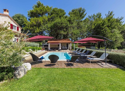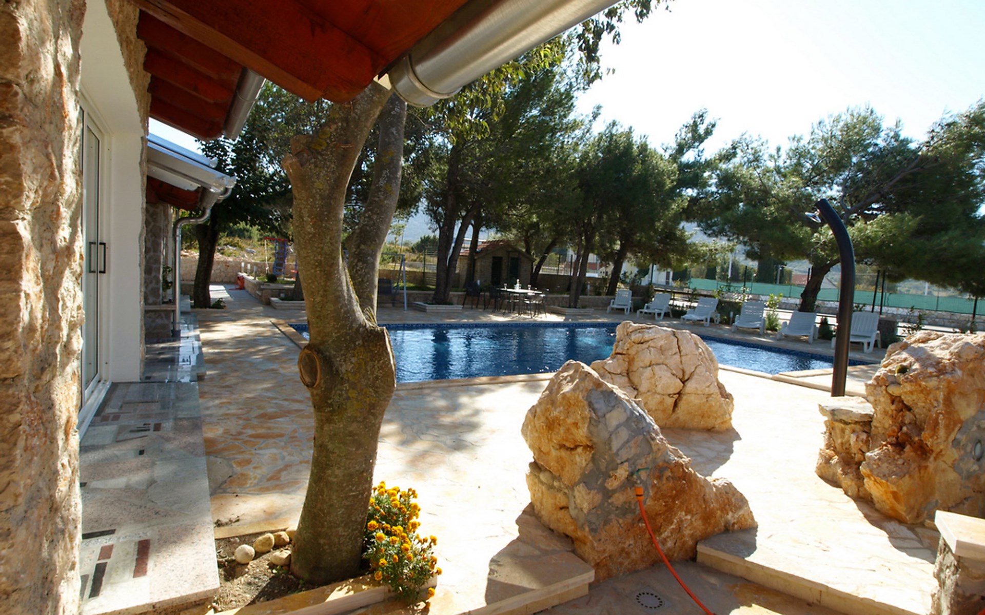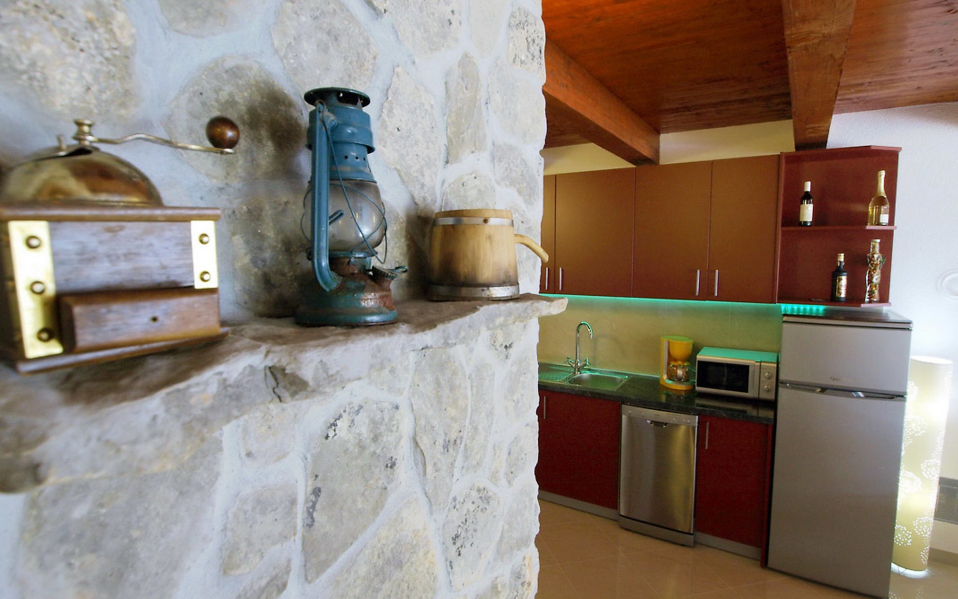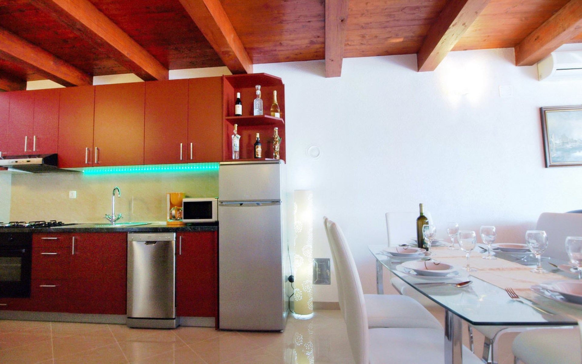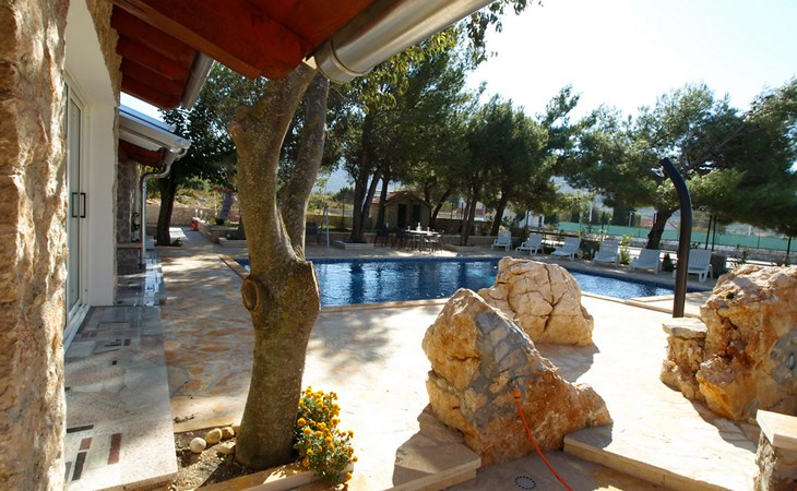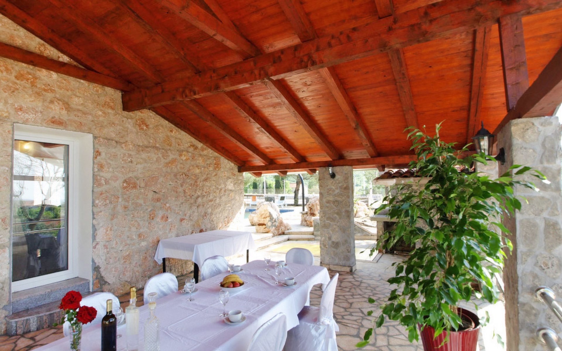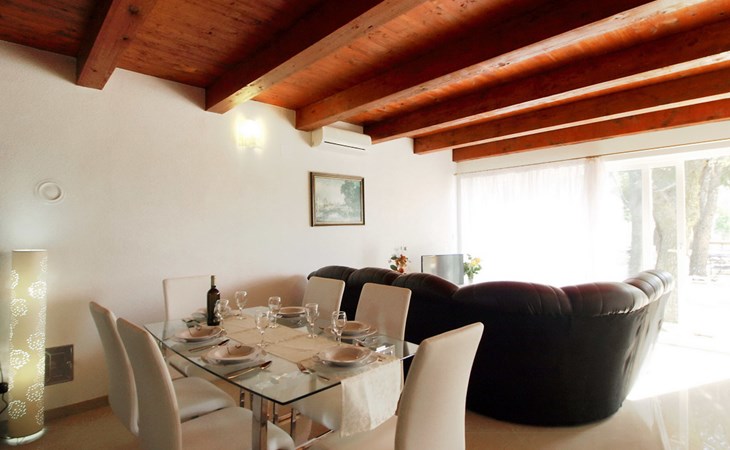 Die Wohneinheit besteht aus 2 Wohnungen, die aber zusammen vermietet werden. Einfamilienhaus "Villa Sandra". Im Ortszentrum von Kruševo, 10 km vom Zentrum von Obrovac, sonnige Lage am Hang, 5 km vom Meer, im Grünen. Zur Alleinbenutzung: Grundstück 1'000 m2, Garten, Schwimmbad (10 x 6 m, 63 m2, 140 cm tief, saisonale Verfügbarkeit: 09.Mai. - 19.Sep.) mit Innentreppe. Aussendusche, Grill, Kinderspielplatz. Im Hause: Internetzugang, Waschmaschine. Abholservice vom Flughafen (extra). Parkplatz beim Haus auf dem Grundstück. Einkaufsgeschäft 100 m, Restaurant 4.5 km, Bushaltestelle 23.2 km, Kieselstrand 5 km. Nahe gelegene Sehenswürdigkeiten: Rafting Zrmanja 10 km. Jugendgruppen nur auf Anfrage.