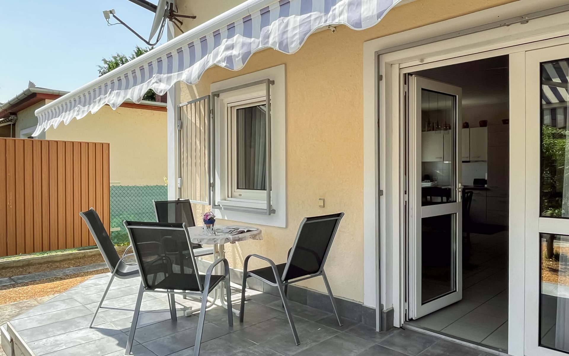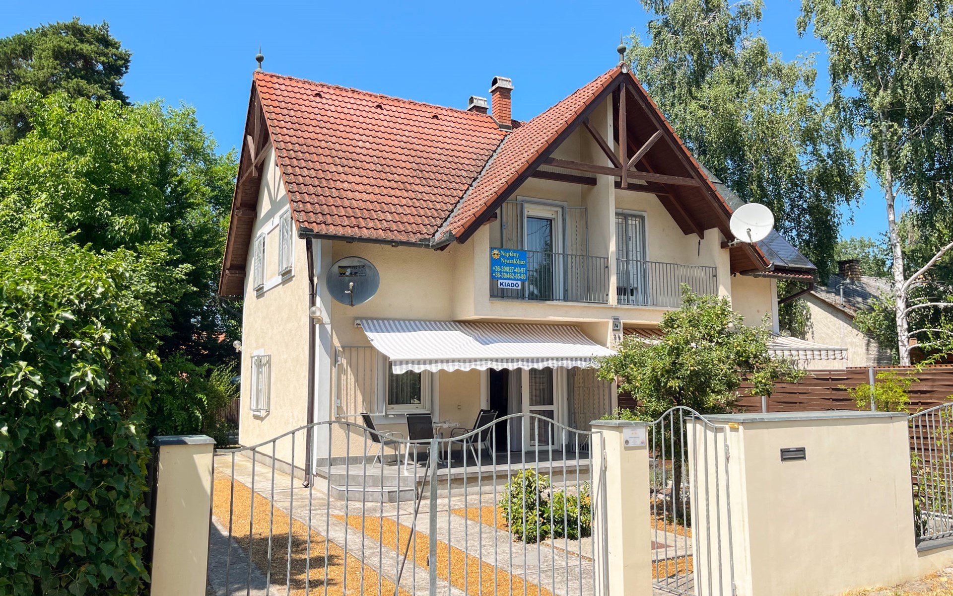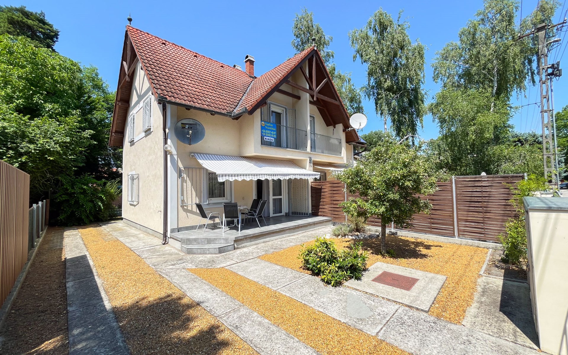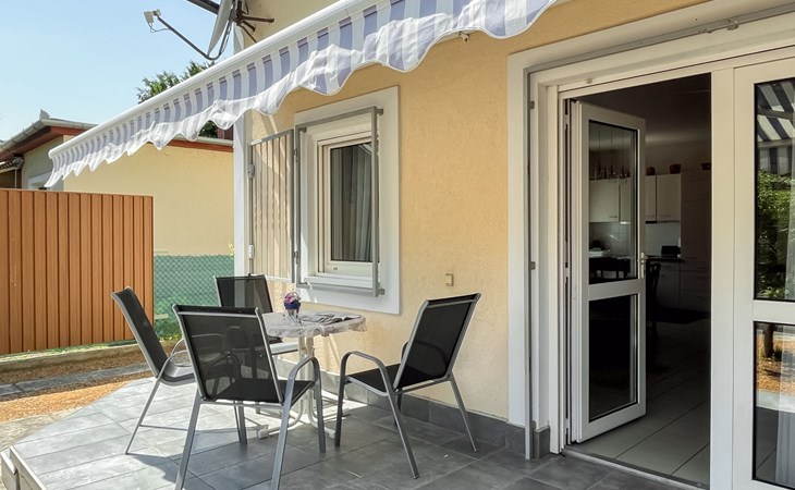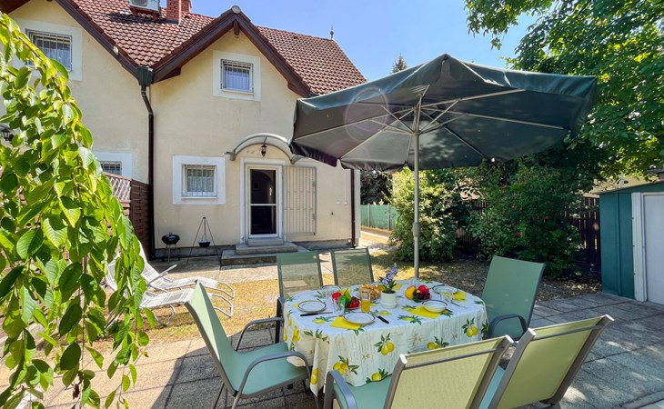 Fonyód 9 km von Balatonlelle: Gemütliches Doppelhaus "Freesia", auf 2 Stockwerken. Im Ort, 100 m vom See, 300 m vom Strand. Zur Alleinbenutzung: Garten 200 m2. Sitzplatz. Im Hause: Wireless LAN, Waschmaschine. Lebensmittelgeschäft 500 m, Restaurant 200 m, Fahrradverleih 3 km, Bushaltestelle "Fonyód (Fonyódliget), Árpád utca" 450 m, Bahnstation "Fonyódliget" 400 m, Grasstrand 100 m, Thermalbad "Csisztafürdő" 11 km. Radweg 200 m, Kinderspielplatz 400 m. Nahe gelegene Sehenswürdigkeiten: Fonyod Ferris Wheel 4 km, Balatonboglár Adventure Park 7 km, Balatonlelle Theme Park 7 km, Xantus János Sphere Lookout 7 km, Fonyód Marina 4 km.