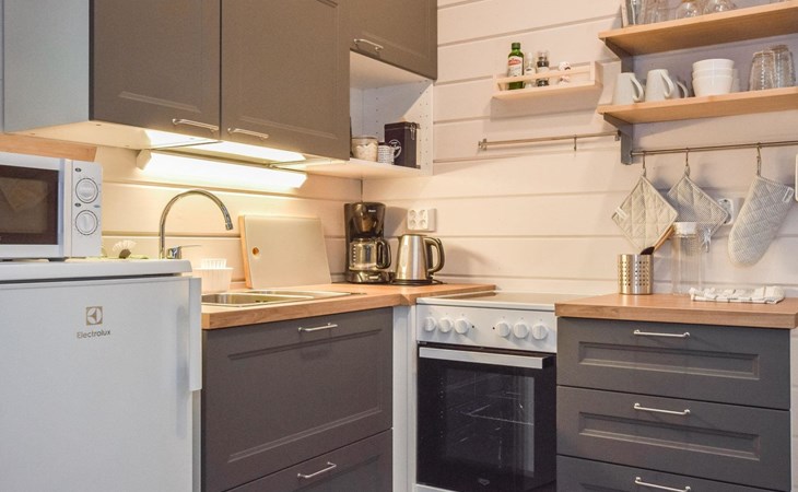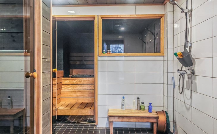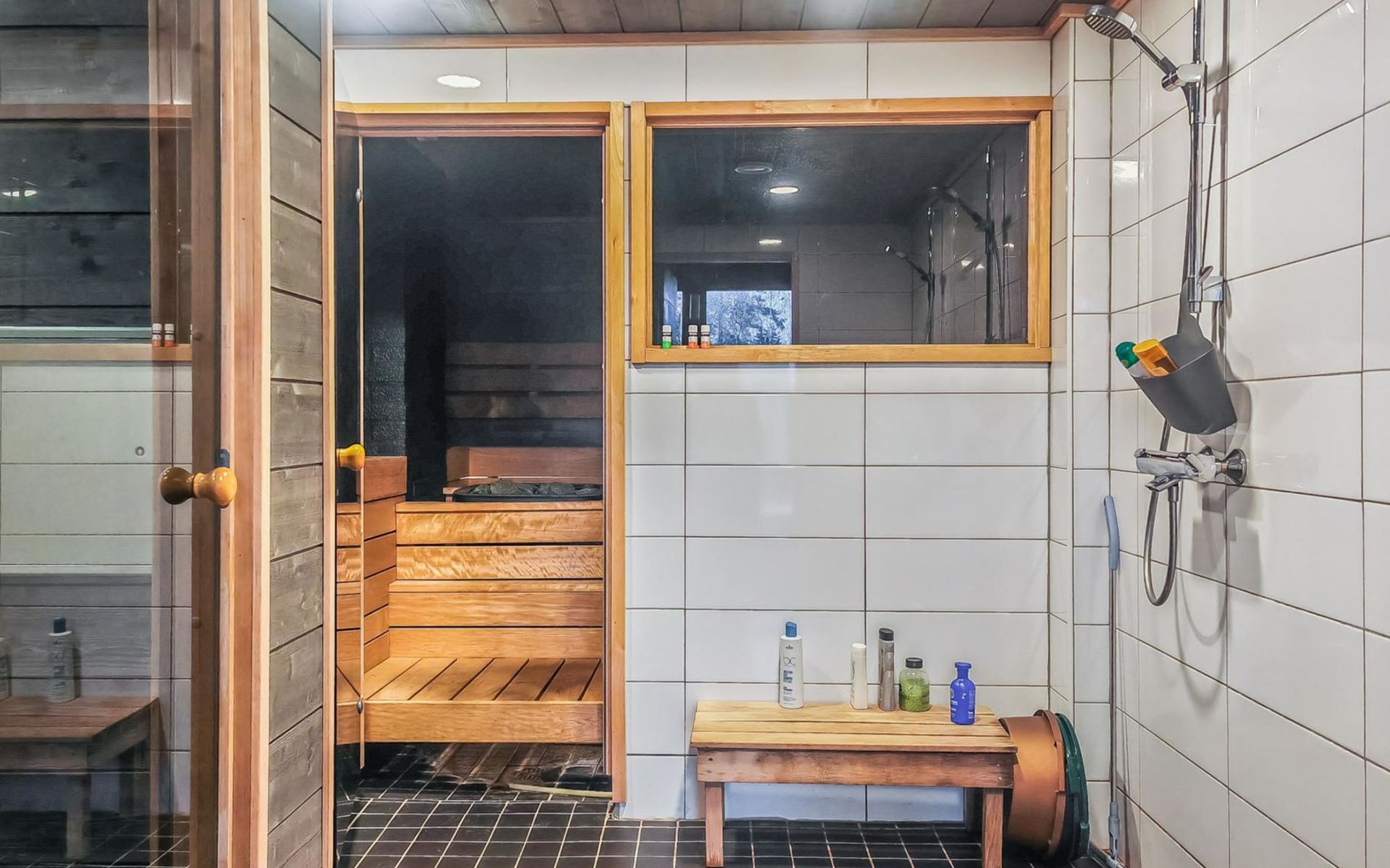 The cabin itself doesn't have a private sauna, but a separate beach sauna is available for rent from the owner at a price of €100 per day.