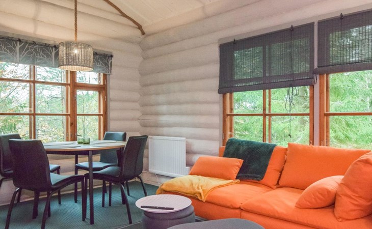 80 km to the west from Helsinki, pond Metsäniitynlampi 45 m. This log cabin (built in 1993) doesn't have its own beachfront. The cabin features a living room, combined kitchen and dining area, a shower-equipped bathroom, and two bedrooms, two beds in each.
