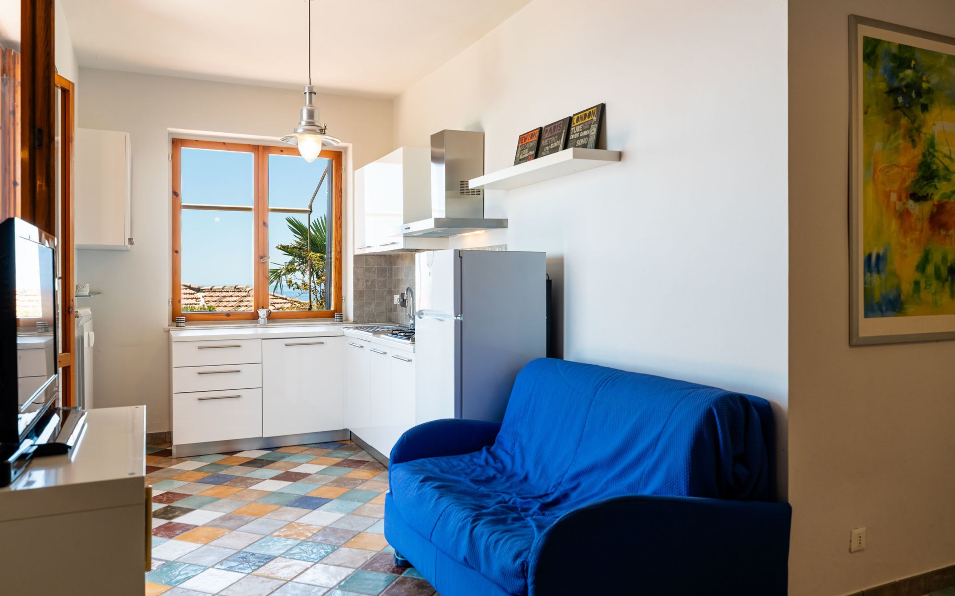 Komfortables Appartementhaus auf 3 Stockwerken. 1.8 km vom Zentrum von Santo Stefano al Mare, 3 km vom Zentrum von Riva ligure, 10 km vom Zentrum von Sanremo, am Hang, 1 km vom Meer. Im Hause: Fahrstuhl. Treppenweg (8 Stufen) bis zum Haus. Öffentliche Parkplätze 200 m auf der Strasse. Supermarkt 1.5 km, Restaurant 1 km, Bäckerei 1.8 km, Café 1 km, Bushaltestelle 800 m, Bahnstation "Taggia" 4 km, Sandstrand 2 km, Kieselstrand 1 km. Jacht-Hafen 1.2 km, Radweg 800 m. Bitte beachten: Be- und Entladen am Ferienhaus möglich.