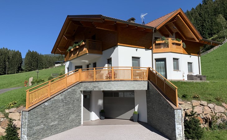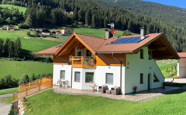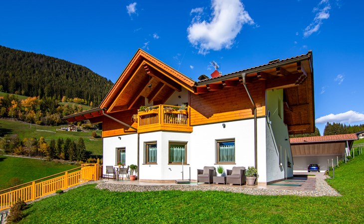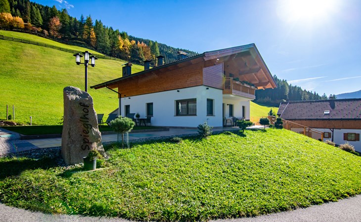 Sarentino: Gemütliches, komfortables Landhaus "Spieglhof", 1'050 m.ü.M., auf 2 Stockwerken, Baujahr 2017, umgeben von Wiesen. 3 Wohnungen im Ferienhaus. Oberhalb von Astfeld/Campolasta, im Weiler Trienbachberg, 2 km vom Zentrum von Astfeld/Campolasta, 4.5 km vom Zentrum von Sarntheim/Sarentino, 24 km vom Zentrum von Bozen/Bolzano, sonnige Lage, 7.2 km vom Skigebiet, im Grünen. Zur Mitbenutzung: Grundstück 3 ha, Garten (nicht eingezäunt), Wiese, Liegewiese. Im Hause: Sauna (extra). Fitnessraum, Dampfbad (extra). Infrarotwärmekabine, Ruheraum, Tischtennis, Tischfussball, Einstellraum für Fahrräder, Zentralheizung, Waschmaschine (extra), Wäschetrockner (zur Mitbenutzung, extra), Skischuhtrockner. Parkplatz (für 3 Autos, überdacht). Einkaufsgeschäft 1.5 km, Supermarkt 6 km, Restaurant 1.5 km, Fahrradverleih 6 km, Bushaltestelle "152 Sarnthein-Reinswald-Durnholz" 200 m, Freibad 4.5 km, Thermalbad "Meran/Merano" 52 km. Golfplatz (9 Loch) 32 km, Reitstall 1 km, Radweg 1.5 km, Luftseilbahn 7 km, Skisportanlagen 7 km, Skibushaltestelle 400 m, Skischule 7 km, Schlittelbahn 7 km. Nahe gelegene Sehenswürdigkeiten: Aberstückl/Sonvigo 11 km. Bekannte Skigebiete sind gut erreichbar: Reinswald/San Martino 7 km, Rosengarten/Catinaccio (Welschnofen) 45 km. Bekannte Seen in der Umgebung sind gut erreichbar: Durnholzer See/Lago Valdurna (1545 m) 12 km. Wandergebiete: Urlesteig (Reinswald/San Martino) 7 km, Radelspitz/Cima Rodella (2442 m) 2 km, Sarner Scharte/Forcola Sar. (2460 m) 2 km. Bitte beachten: Der Besitzer wohnt auf dem gleichen Grundstück.