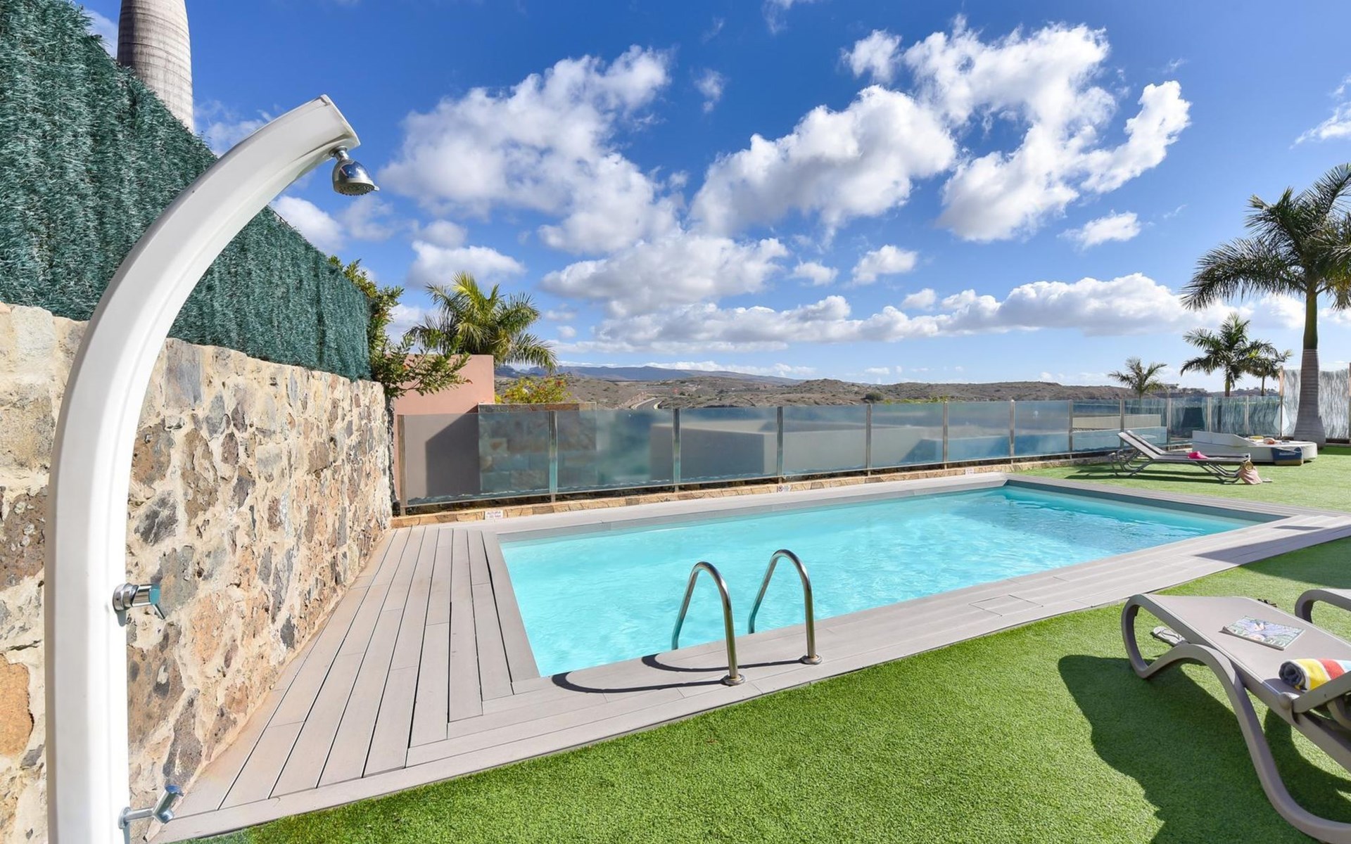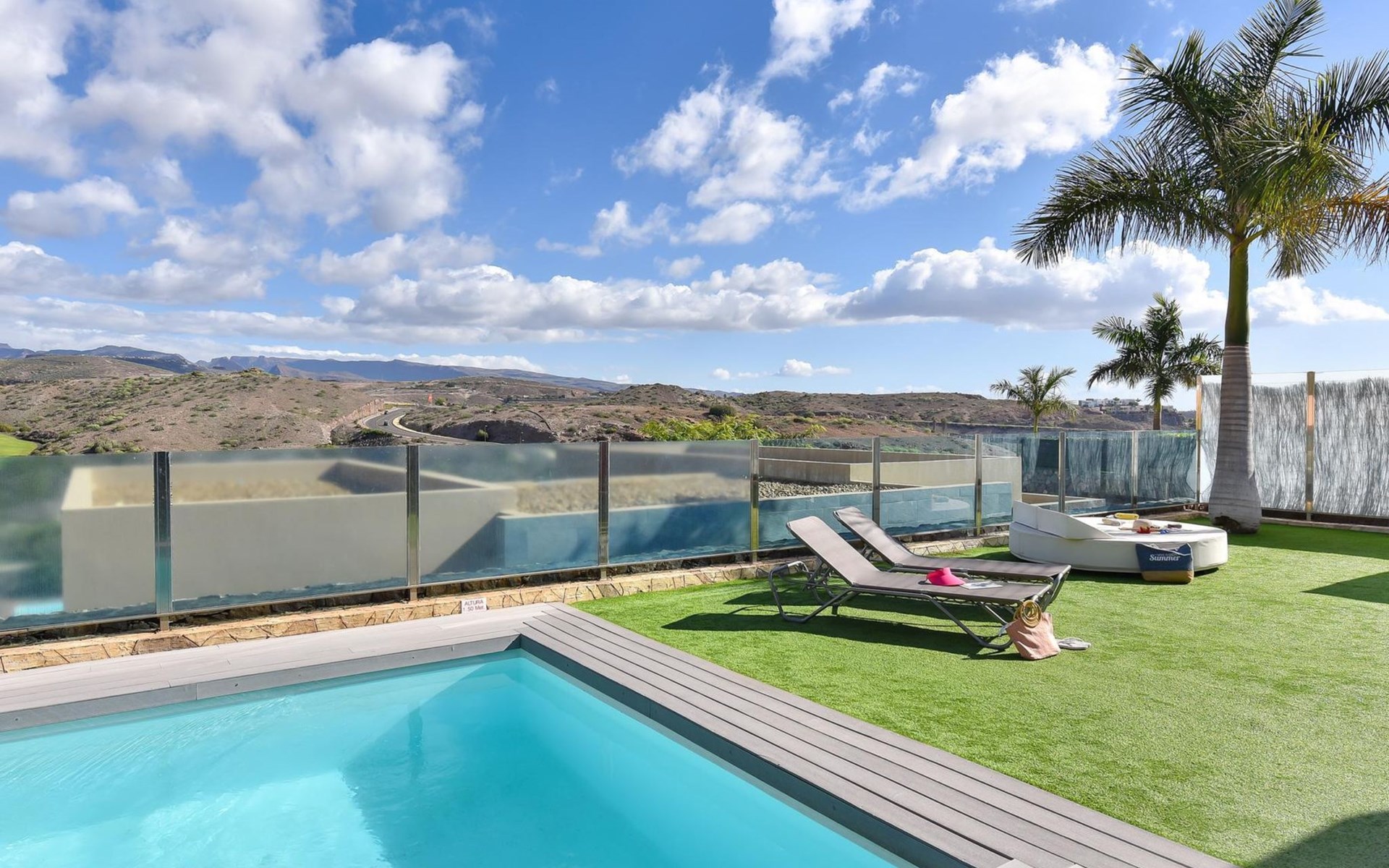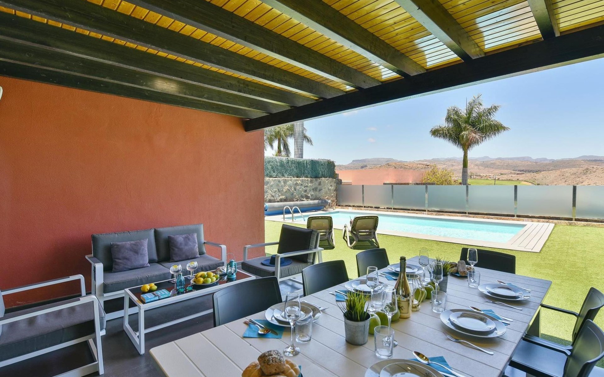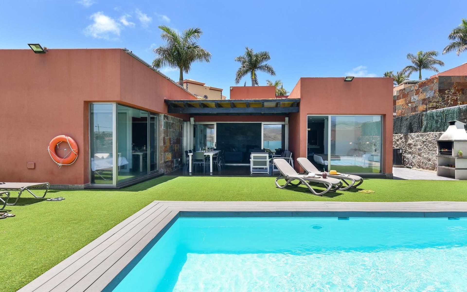 Moderne, komfortable Villa "Par4 Villa 20 con Piscina Privada", renoviert im Jahre 2014. El Salobre, am Ortsrand Maspalomas, ruhige, sonnige Lage, direkt am Meer. Zur Alleinbenutzung: Garten, Schwimmbad (8 x 4 m, 140 cm tief, saisonale Verfügbarkeit: 01.Jan. - 31.Dez.). Grill. Im Hause: Wireless LAN, Klimaanlage, Waschmaschine, Wäschetrockner. Einkaufsgeschäft 7 km, Restaurant 4 km, Bushaltestelle "Las Crucitas" 19 km, Sandstrand "7000". Golfplatz (18 Loch) 100 m. Bitte beachten: Fahrzeug empfohlen. Geeignet für Familien, geeignet für Senioren. Flugplatz 35 km vom Haus.