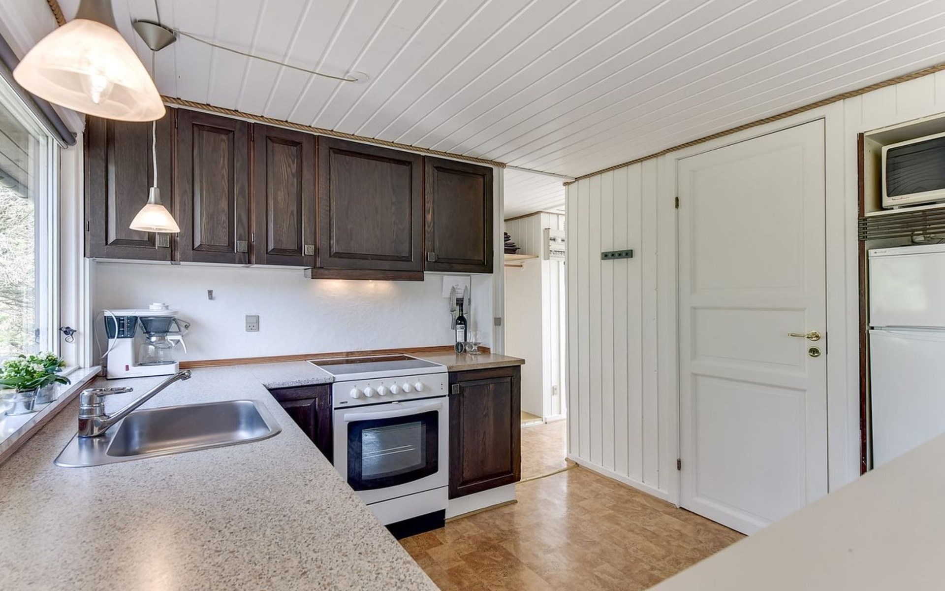Einfamilienhaus, Baujahr 1960. 1 km vom Meer. Zur Alleinbenutzung: naturbelassenes Grundstück 1'800 m2. Terrasse (11 m2), Kinderspielplatz (Schaukel). Im Hause: Sauna, Waschmaschine, Wäschetrockner. Carport. Lebensmittelgeschäft 200 m. Der Besitzer akzeptiert keine Jugendgruppen.