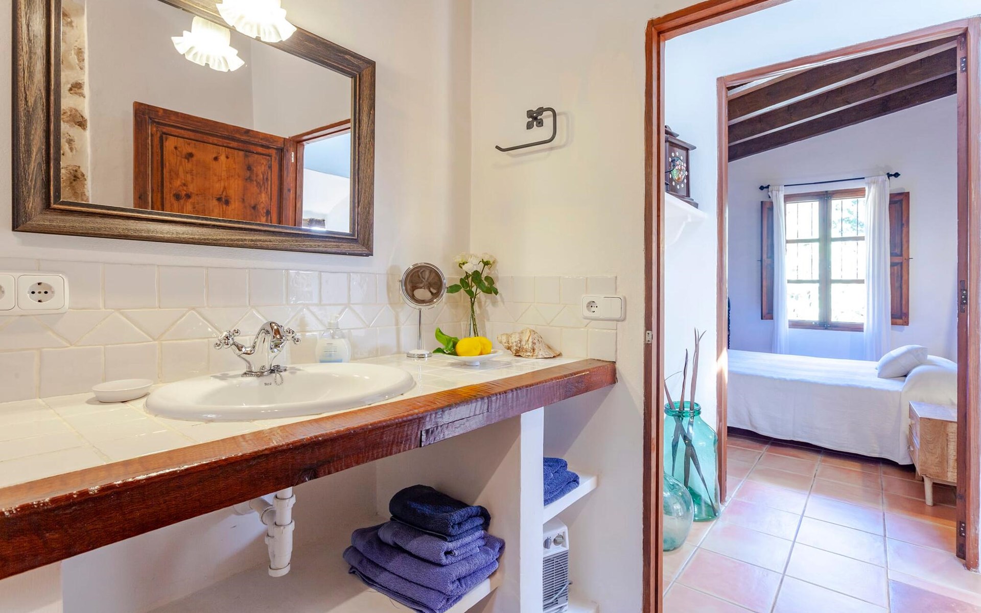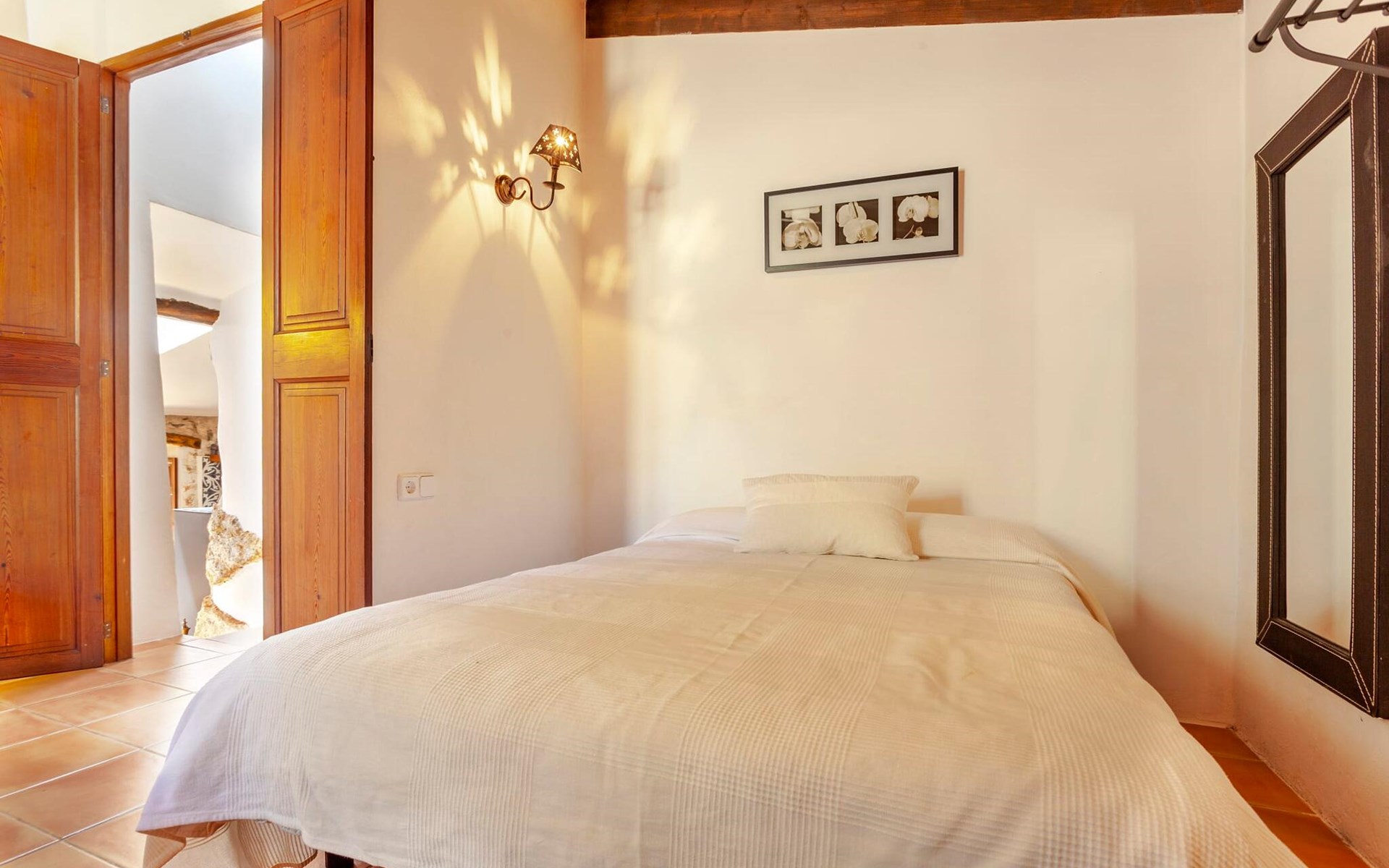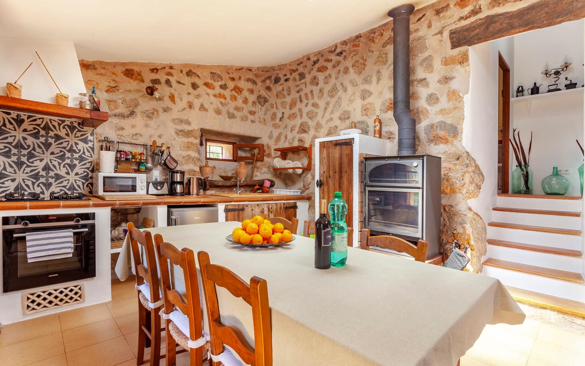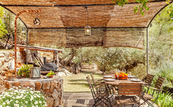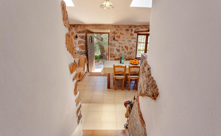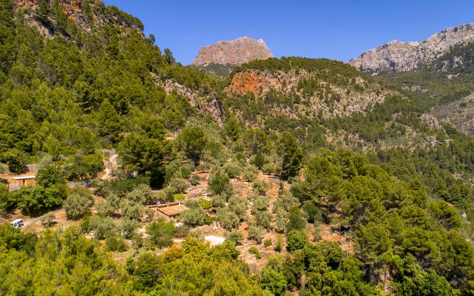 Diese kleine, hochgelegene Bergoase der Ruhe vermittelt einen zauberhaften Eindruck, eingebettet in die beeindruckende Kulisse des Tramuntana-Gebirges mit uriger Eleganz. Finden Sie Ihren Lieblingsplatz unter einem knorrigen Olivenbaum oder auf der luftigen, überdachten Terrasse und genießen Sie die Ruhe rund um dieses herrliche Plätzchen, den Ausblick auf das Tal, die Berge und Wälder in vollen Zügen. Lauschen Sie dem Vogelgezwitscher, erleben Sie die beruhigende Wirkung einer wildromantischen Kulisse, die Sie sonst nirgendwo finden werden. Die Natursteinmauern, die verstreuten Blumentöpfe und das urige Tor rahmen Ihr temporäres Schmuckstück malerisch ein und sorgen für ein wildromantisches Flair. Unter den Hängelampen neben dem Zierbrunnen wird es auf der Terrasse abends besonders üppig, vor allem, wenn Sie auf dem Grill ein paar mediterrane Köstlichkeiten zubereiten und diese dann beim Ausklingen des Tages genießen.