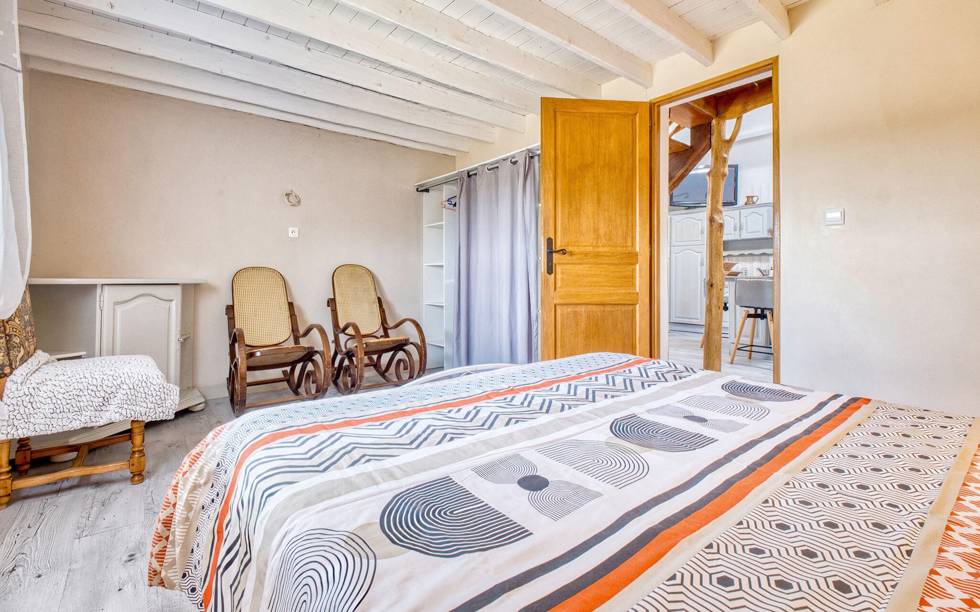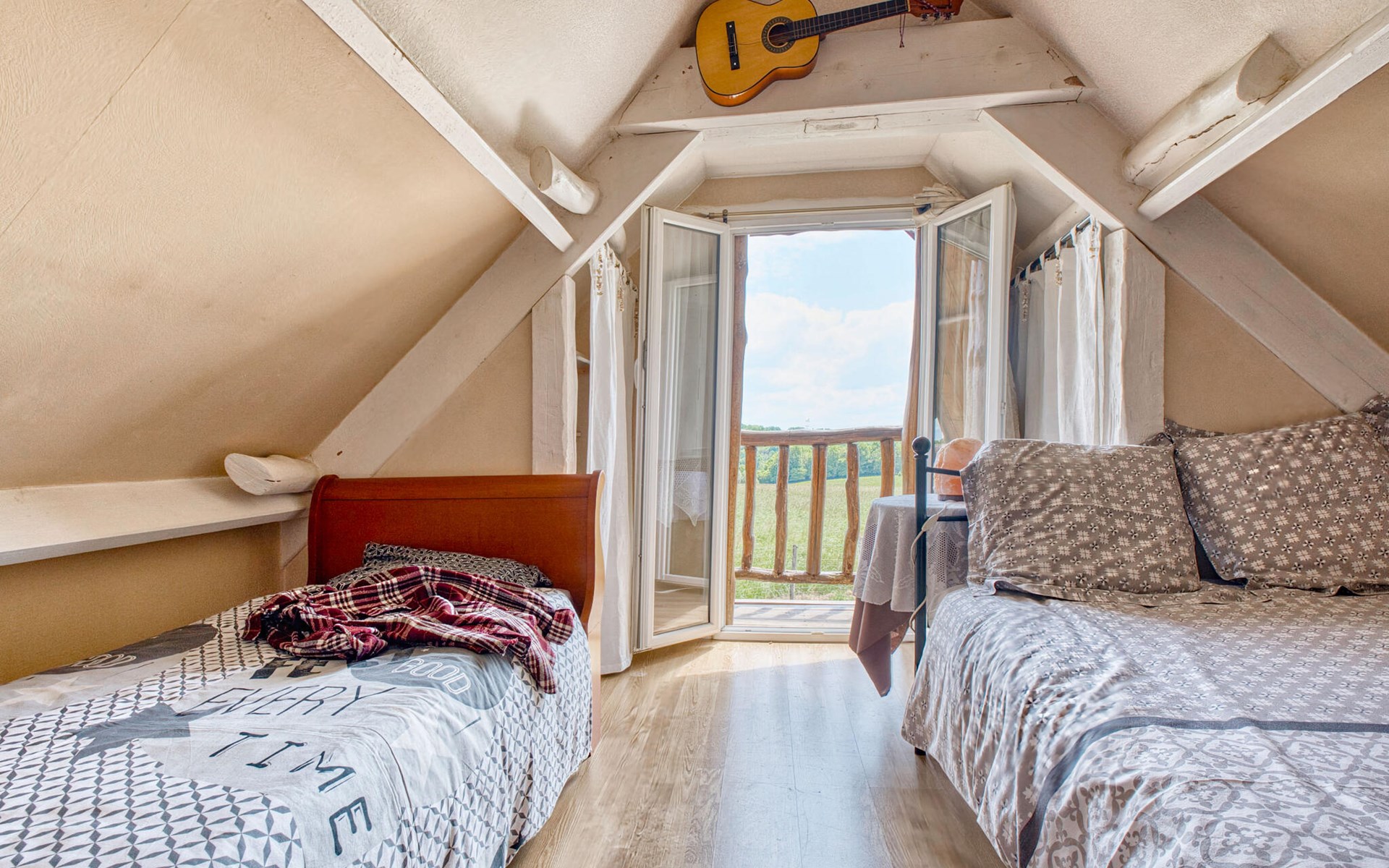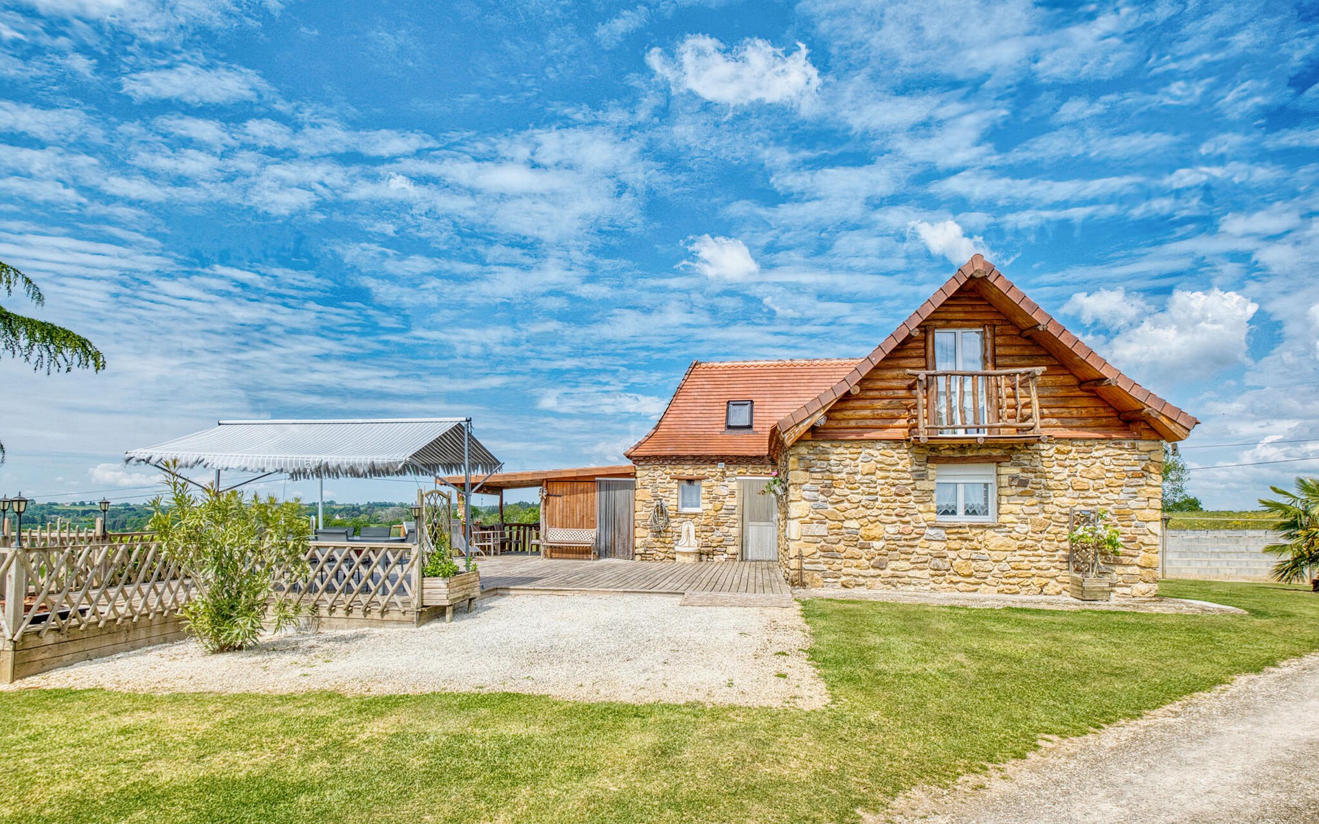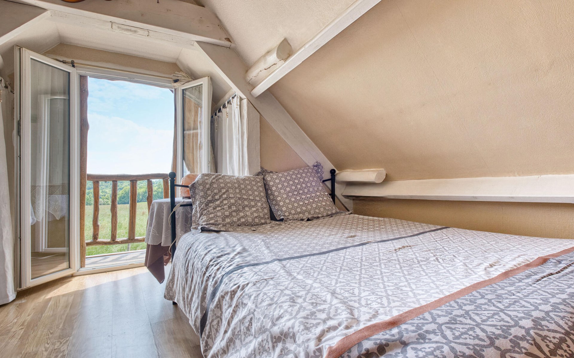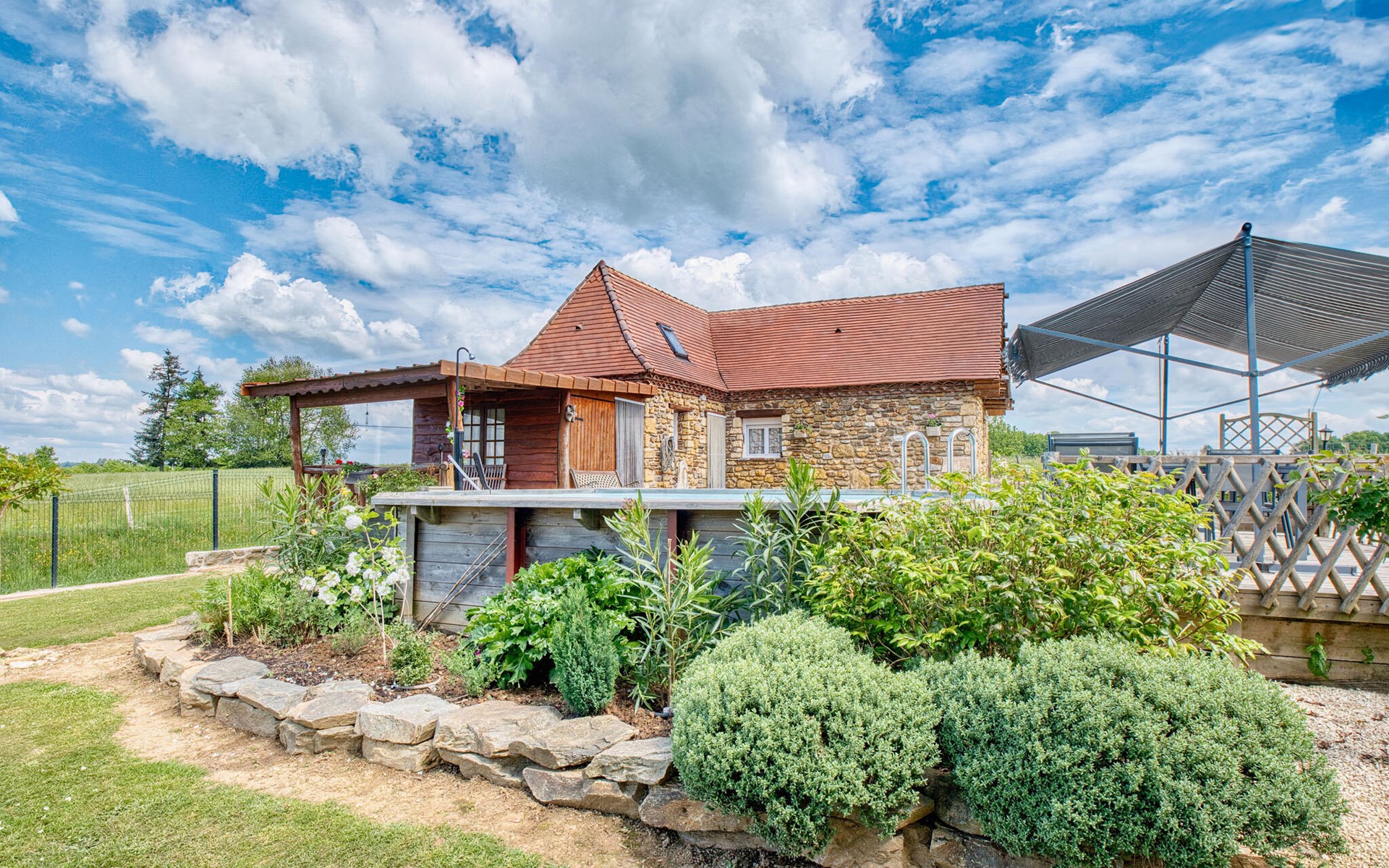 Nutzen Sie den Außenbereich für gesellige Stunden und Erholung. Schwimmen Sie im Pool mit Holzdeck, nehmen Sie Ihre Mahlzeiten im Schatten der Pergola ein oder entspannen Sie auf der Veranda mit weitem Blick über Felder und Hügel. Für Kinder gibt es ein Spielhaus, eine Rutsche, eine Wippe sowie eine Tischtennisplatte und ein Badmintonfeld. Die hölzerne Gartenbar lädt zu kühlen Getränken am Nachmittag ein.