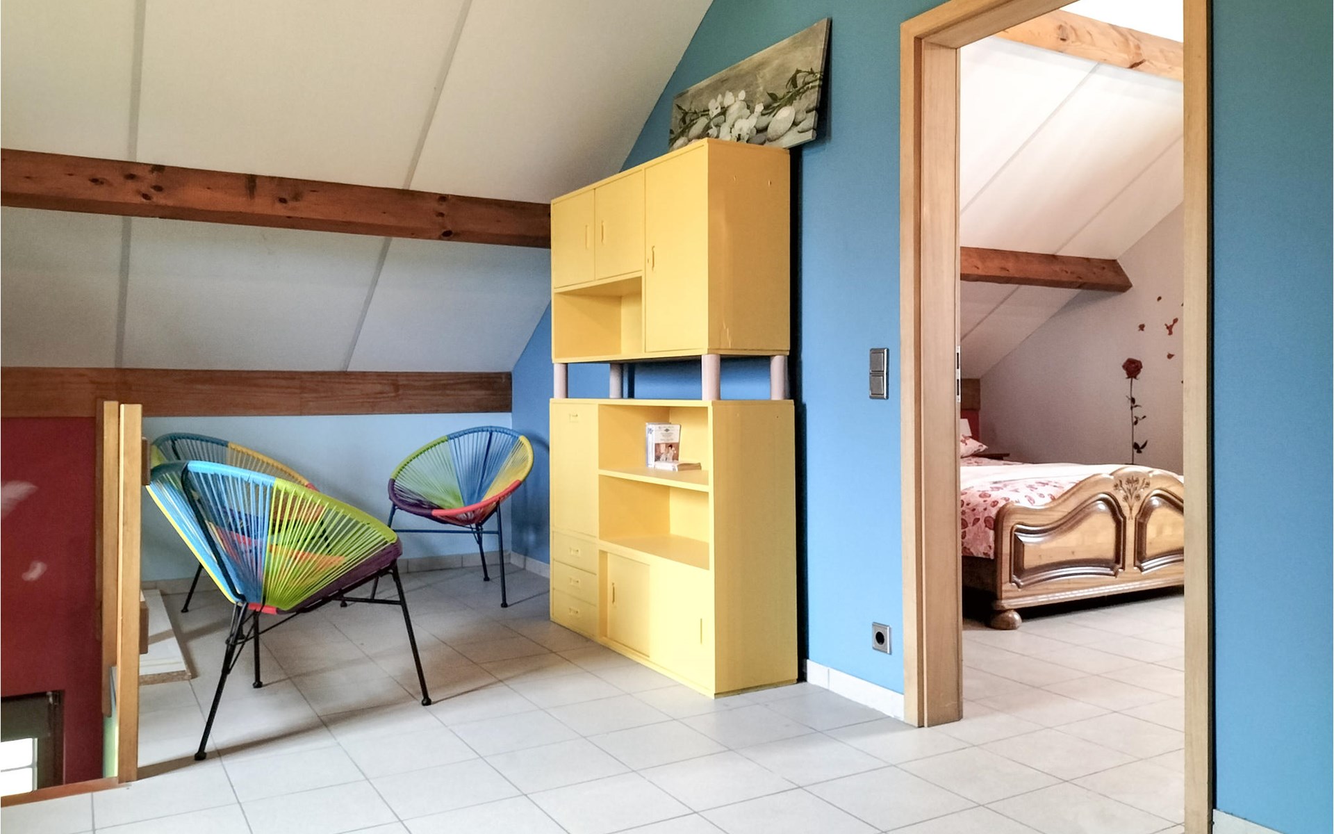 Hier wohnen Sie in einem Steinhaus auf dem Lande, wo Sie sich wie zu Hause fühlen werden. Wenn Sie eintreten, fallen Ihnen sofort die hohe Decke, die kreative Einrichtung mit vielen kleinen Details und vor allem die farbenfrohen Wände in den groβzügigen Räumen auf, die alle zu einer warmen, modernen Atmosphäre beitragen. Das groβe schwarze Sofa lädt zu gemütlichen Momenten ein. Nehmen Sie Platz auf den bunten Stühlen auf der Terrasse und genieβen Sie von hier aus den Sonnenuntergang, während die Kinder im eingezäunten Garten spielen.