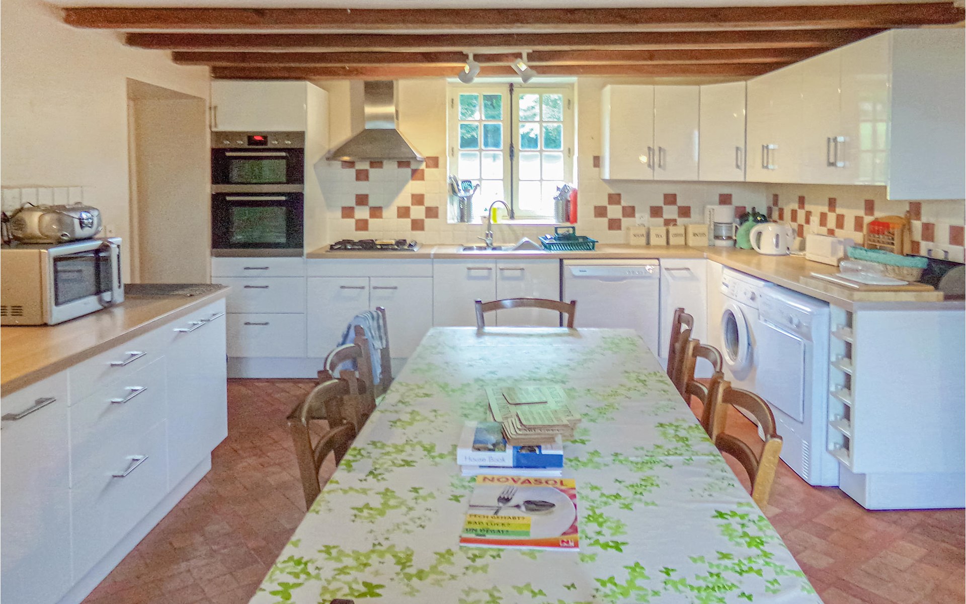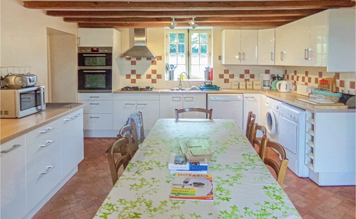 Freuen Sie sich auf Ihren nächsten Urlaub in diesem traditionellen Ferienhaus in Frankreich. Eingebettet in eine malerische Landschaft, bietet dieses ehemalige Bauernhaus den idealen Rückzugsort, um dem hektischen Alltag zu entfliehen. Genießen Sie die friedliche Umgebung und erkunden Sie die Wälder und Felder der Region. Im Inneren erwartet Sie eine rustikale und komfortable Einrichtung. Das Wohnzimmer lädt mit seinen gemütlichen Sofas und dem großen Kaminofen zum Entspannen ein. Warme Farbtöne und liebevolle Details verleihen dem Raum eine behagliche Atmosphäre. In der großzügigen Küche mit modernen Geräten können Sie gemeinsame Mahlzeiten zubereiten und diese am großen Esstisch genießen.