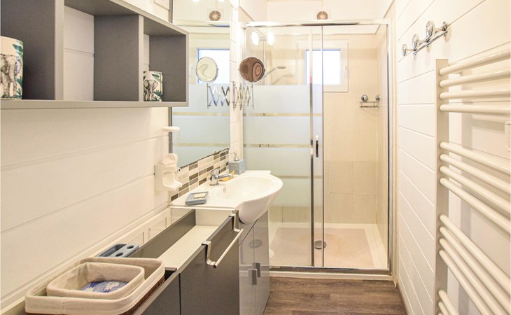In einem km erreichen Sie den Sandstrand Sword Beach. Des Weiteren ist das Gebiet ideal für Radfahrer, welche Sie auch im Schuppen abstellen können. Besuchen Sie Strände von Débarquement, sowie die Casino von Ouistreham und Thalasso. In der Nähe liegt Caen mit dem Memorial und dem Themenpark Festyland. In Bayeux können Sie den Wandteppich und die mittelalterliche Stadt mit einer gotische Kathedrale besuchen. Dieses Chalet liegt in gleicher Entfernung zu Bayeux und Cabourg, sowie Deauville. Die Küste von Nâcre bietet Ihnen den idealen Punkt für Wassersport, wobei die Segelschule einen 1 km entfernt liegt. Alle Wege in die Umgebung können gut mit dem Rad zurückgelegt werden.