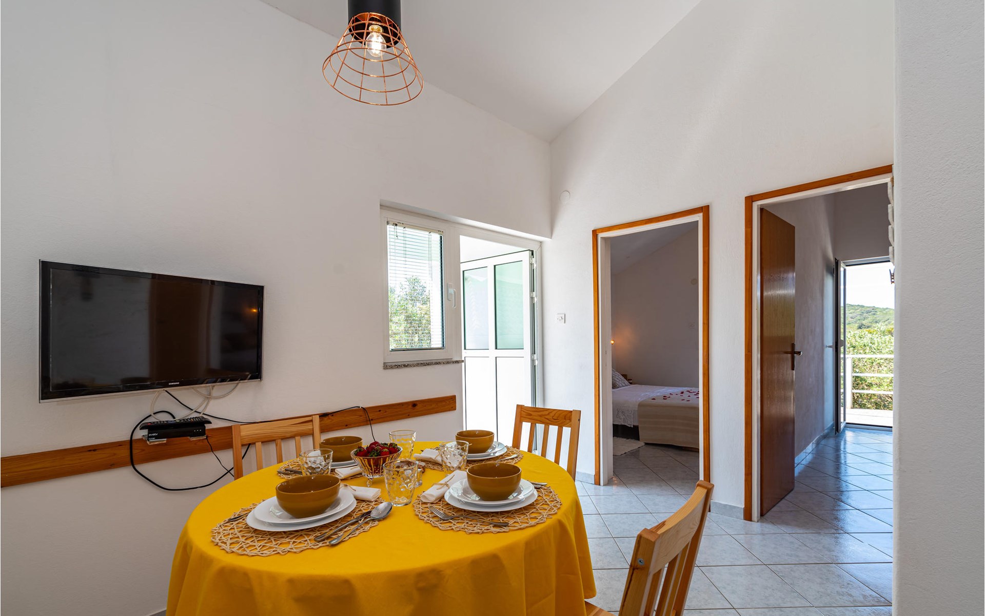 Wenn Sie Ruhe, viel Natur und kristallklares Meer suchen, ist dieses Ferienhaus genau das Richtige für Sie. Kommen Sie mit Ihren Freunden oder der Familie samt geliebten Vierbeinern in diese nette Unterkunft und erleben Sie einen wunderbaren Urlaub mit viel Sonne und frischer Luft. Auf der Terrasse können Sie unter strahlend blauem Himmel Ihr Frühstück einnehmen und den Tag planen oder am Abend ein leckeres Glas Wein trinken und beobachten, wie die Sonne im Meer versinkt. Die Zimmer sind mit allem Nötigen ausgestattet und sorgen für einen wunderbaren Rückzugsort fernab von allem Alltagsstress und der Hektik der Städte.
