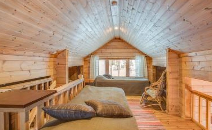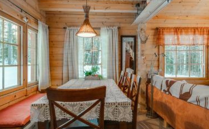 170 km nördlich von Kajaani, See Juntusjärvi 30 m (Länge 4 km, Breite 2 km, verbunden mit dem Kiantajärvi-See), so dass die Gesamtlänge über 50 km beträgt), flaches Ufer, harter steiniger Sandboden, eigenes Boot. Block-Ferienhaus (laminierter Block), Baujahr 2010, Wohnküche, Schlafboden (Falttür) mit 2 Betten, Obergeschoss/Schlafboden mit 2 Betten und 2 Matratzen, Sauna (Holzofen), Waschraum, offene Veranda, Balkon. Separate Seeufersauna 36 m², Entfernung 20 m, "Dampfbad" (Holzofen, Warmwasserspeicher am Herd), Raum mit Kamin mit 2 Zustellbetten, offene Veranda. Seeufersauna verfügt über elektrisches Licht und Wasserleitung, im Sommer. Block-Chalet in ruhiger Lage, am Ufer des grossen Sees. Kunden können auch ein zweites Boot, auf einem wilden Fluss im Wildnissgebiet Martinselkonen nutzen. Verpflegungsdienste, Schleppangeln, Jagd, Beeren- und Pilzsammelausflüge und andere Programmangebote können beim Eigentümer gebucht werden. Schneemobil kann vom Eigentümer gemietet wereden. Ruhtinansalmi Kirche 3 km, Kalmosärkät (prähistorische Siedlung) 5 km, Hossa Fischerei- und Wandergebiet 35 km, Martinselkonen Schutzgebiet 5 km, Bärenbeobachtungs- und Fotostandort 10 km. Es gibt Käfige und Hundehütten auf dem Hof und einige Haustiere könnten im Saunagebäude gewesen sein. Es ist jedoch nicht gestattet, Haustiere ins Haus zu bringen.