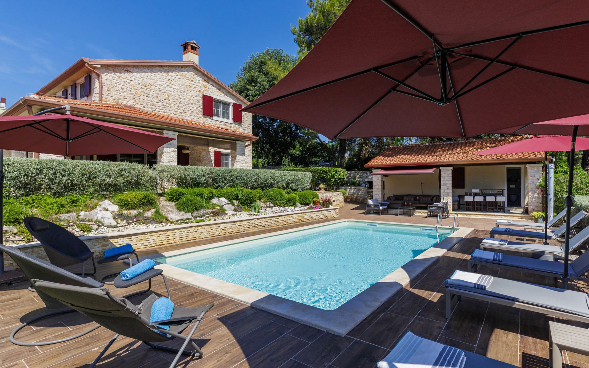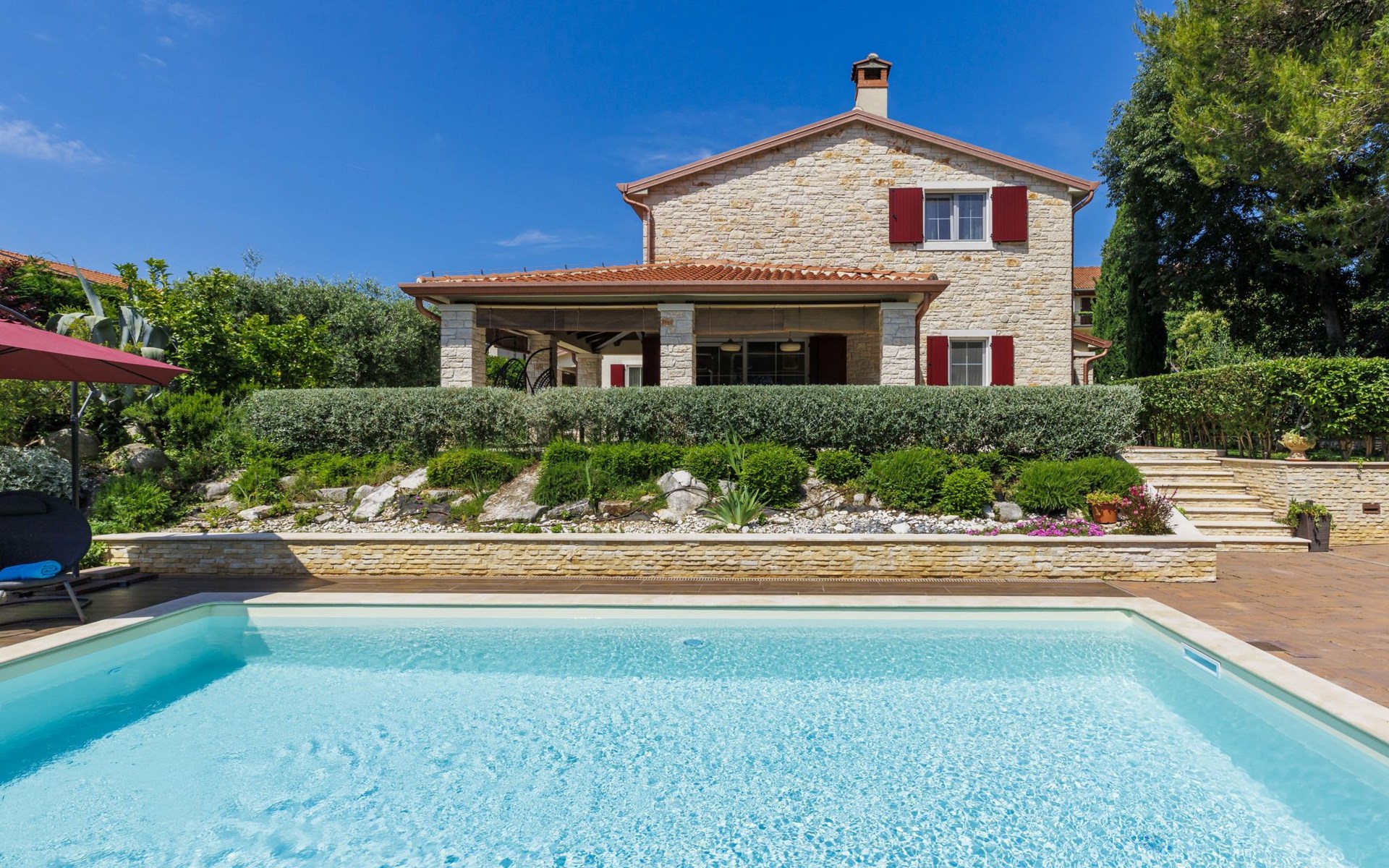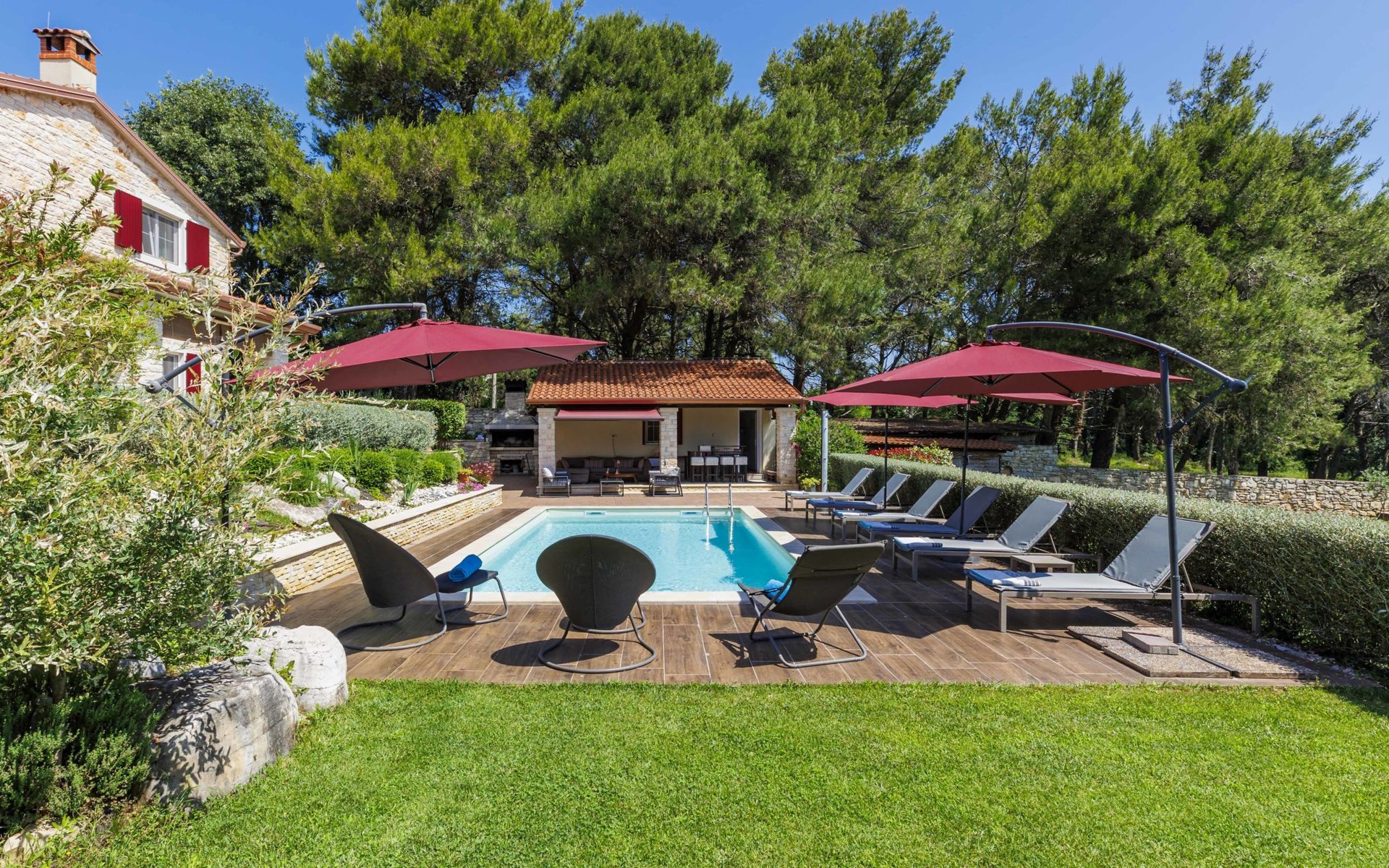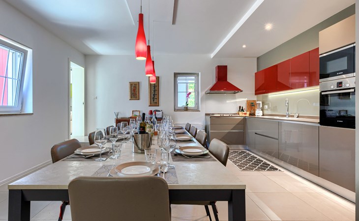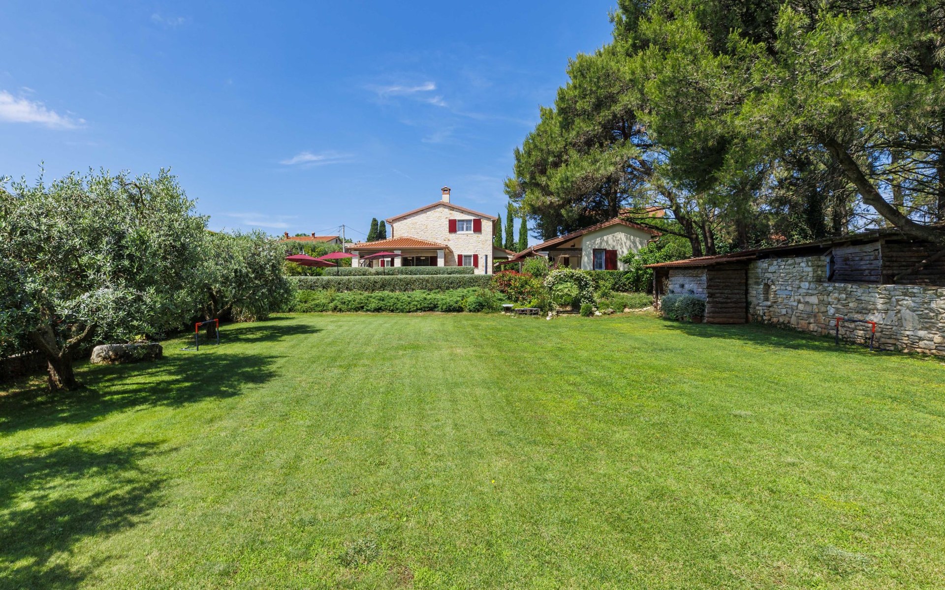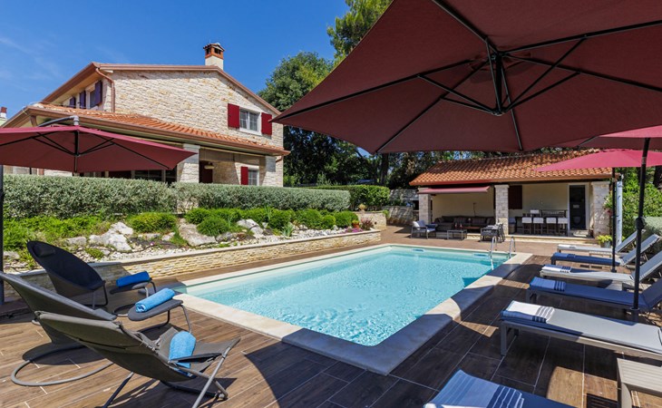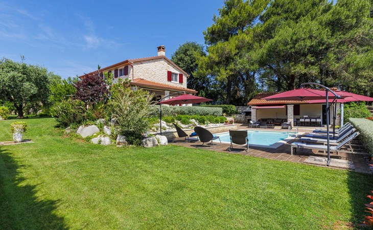 Sehr schöne Villa "Eda", auf 2 Stockwerken. 200 m vom Zentrum von Tar, 7 km vom Zentrum von Poreč, 2 km vom Meer, 3 km vom Strand. Zur Alleinbenutzung: Grundstück 1'950 m2 (eingezäunt), Garten mit Rasen und Pflanzen, Schwimmbad eckig (8 x 4 m, 150 cm tief, saisonale Verfügbarkeit: 01.Mai. - 01.Okt.). Dusche/WC im Poolbereich, Aussendusche, Badminton, Terrasse (20 m2), Gartenmöbel, Grill. Im Hause: Internetzugang, Tischfussball, Waschmaschine. Parkplatz (für 3 Autos) beim Haus auf dem Grundstück. Einkaufsgeschäft, Restaurant 200 m, Bushaltestelle 350 m, Kieselstrand 2 km. Tennis 8 km, Wanderwege ab Haus, Radweg 100 m. Nahe gelegene Sehenswürdigkeiten: Aquapark 14 km. Bitte beachten: Flugplatz 63 km vom Haus. Fahrräder auf Anfrage (im Preis inbegriffen).