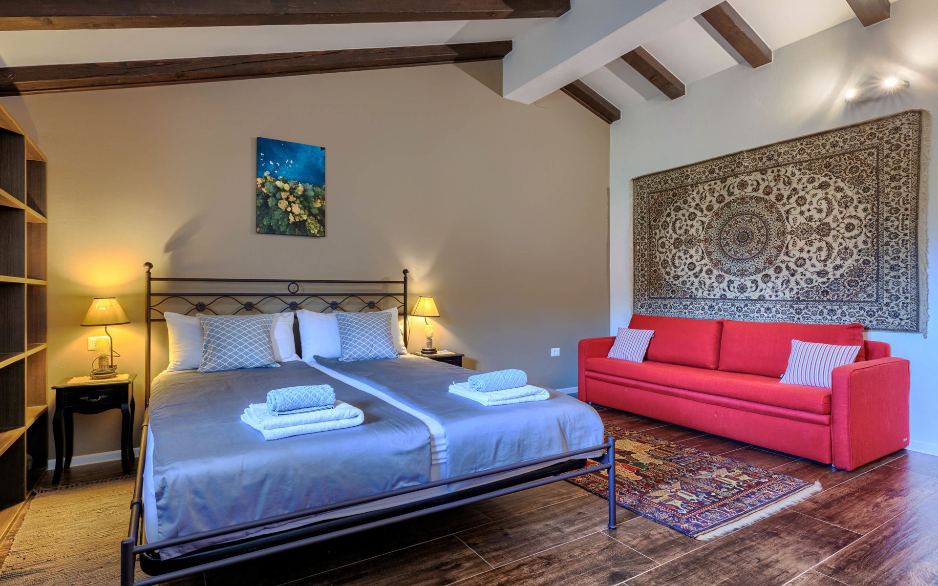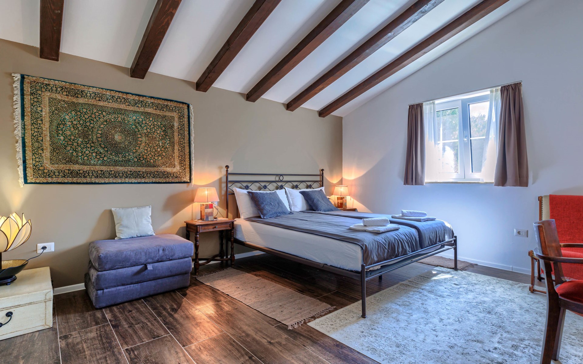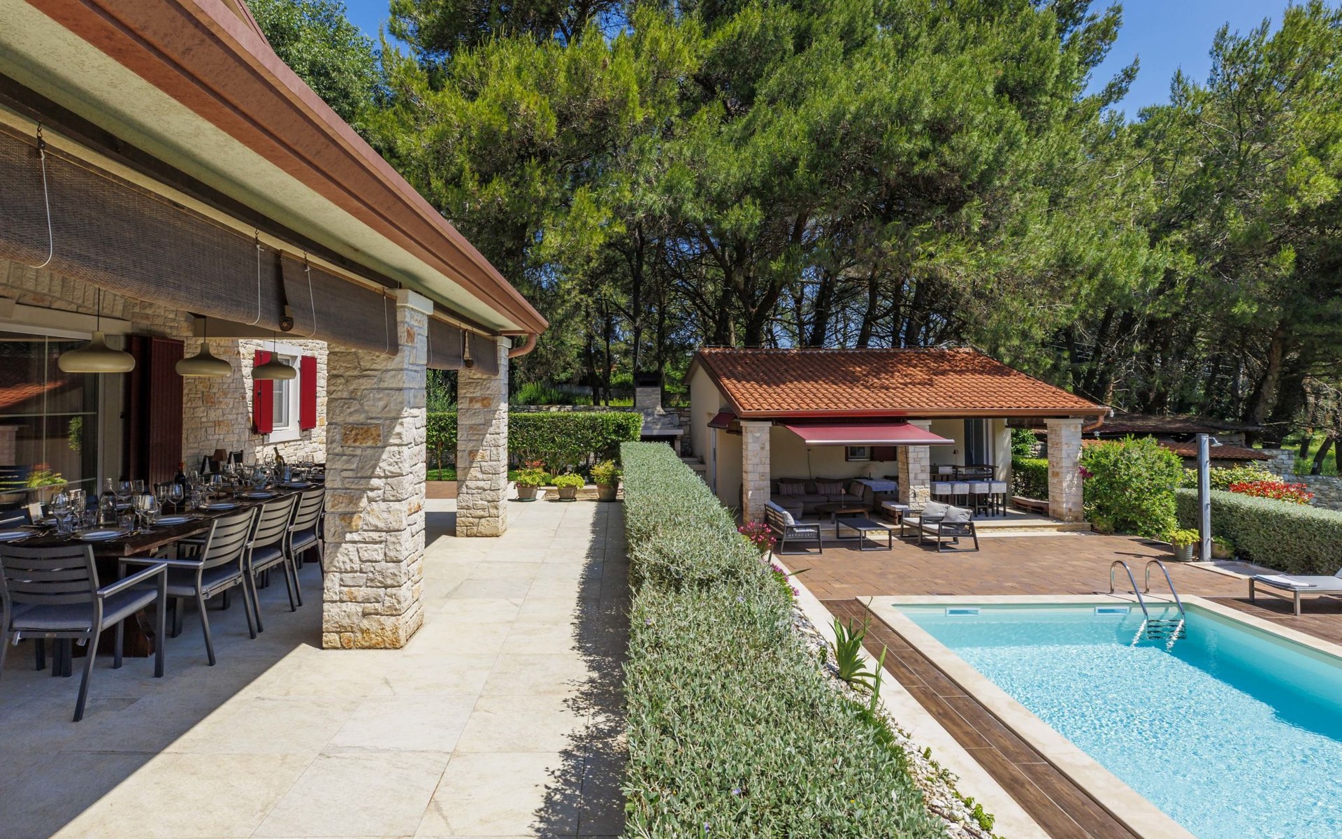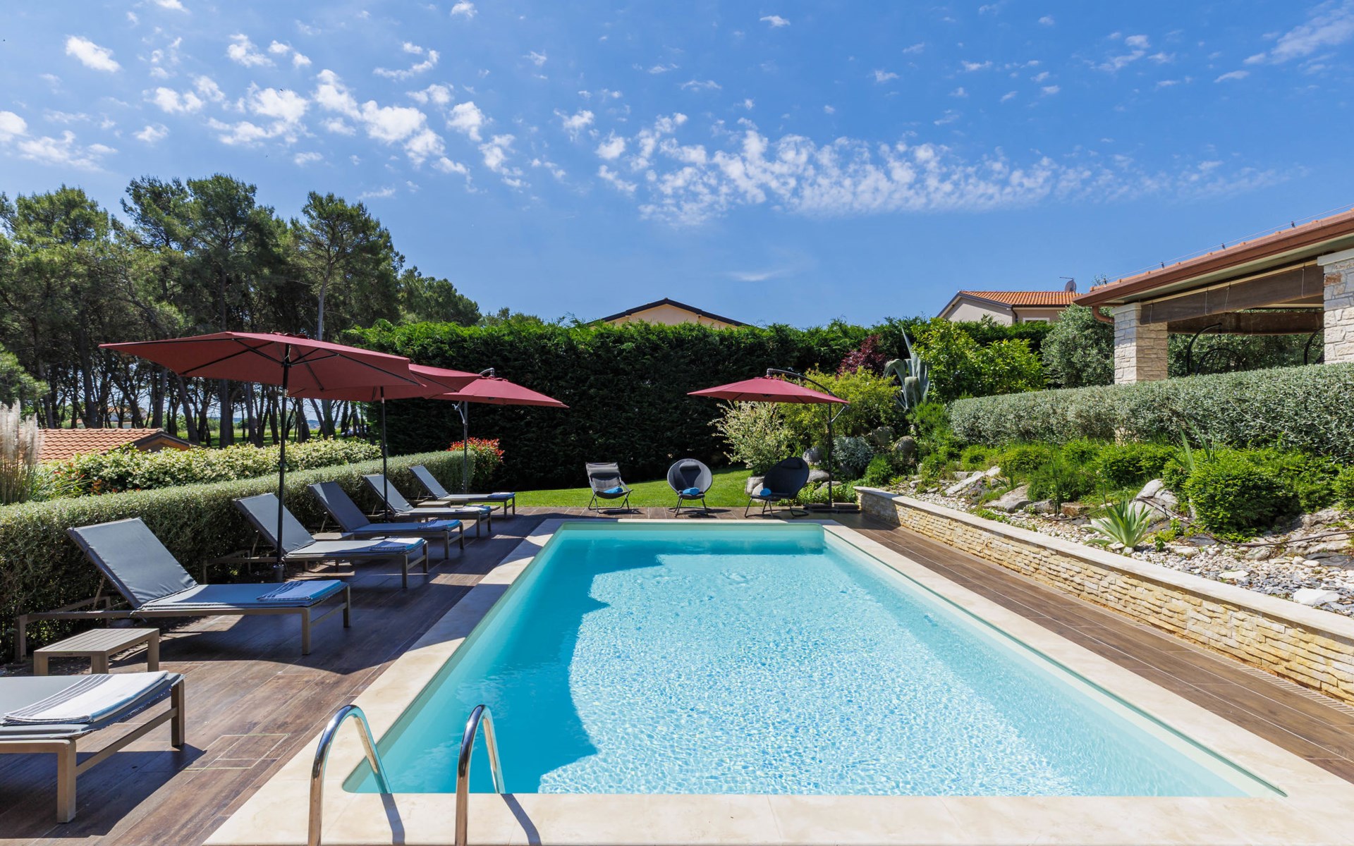 Sehr schöne Villa "Eda", auf 2 Stockwerken. 200 m vom Zentrum von Tar, 7 km vom Zentrum von Poreč, 2 km vom Meer, 3 km vom Strand. Zur Alleinbenutzung: Grundstück 1'950 m2 (eingezäunt), Garten mit Rasen und Pflanzen, Schwimmbad eckig (8 x 4 m, 150 cm tief, saisonale Verfügbarkeit: 01.Mai. - 01.Okt.). Dusche/WC im Poolbereich, Aussendusche, Badminton, Terrasse (20 m2), Gartenmöbel, Grill. Im Hause: Internetzugang, Tischfussball, Waschmaschine. Parkplatz (für 3 Autos) beim Haus auf dem Grundstück. Einkaufsgeschäft, Restaurant 200 m, Bushaltestelle 350 m, Kieselstrand 2 km. Tennis 8 km, Wanderwege ab Haus, Radweg 100 m. Nahe gelegene Sehenswürdigkeiten: Aquapark 14 km. Bitte beachten: Flugplatz 63 km vom Haus. Fahrräder auf Anfrage (im Preis inbegriffen).