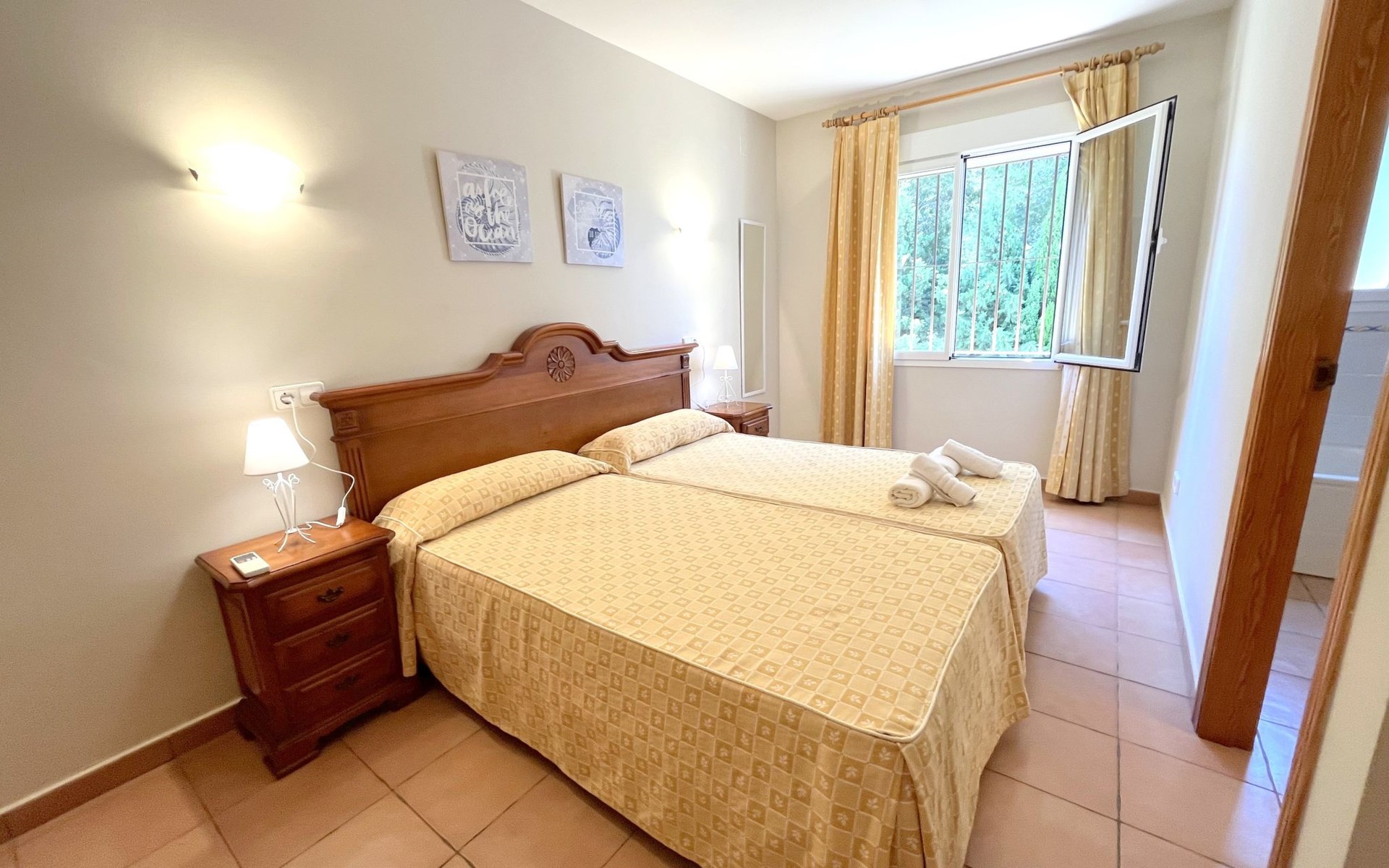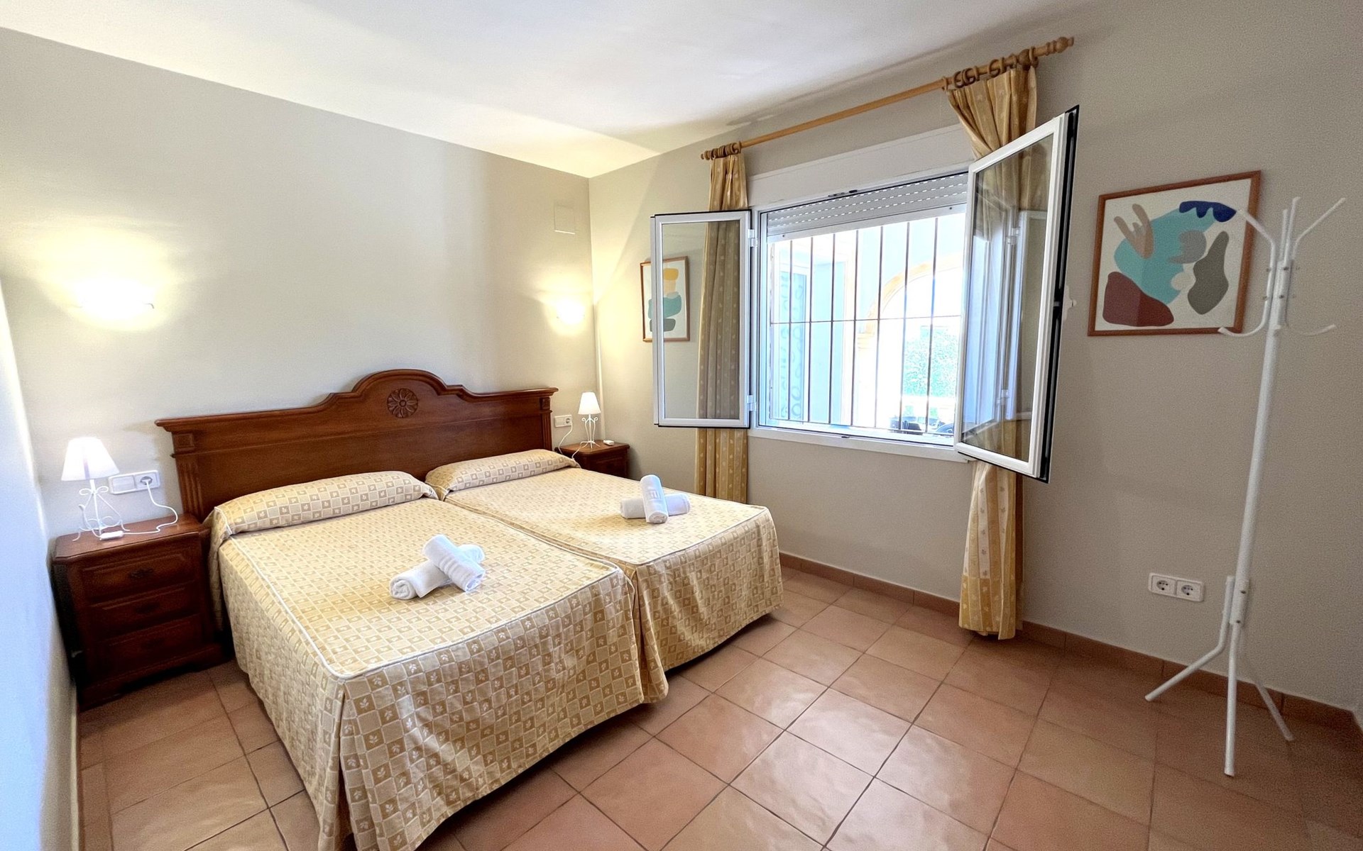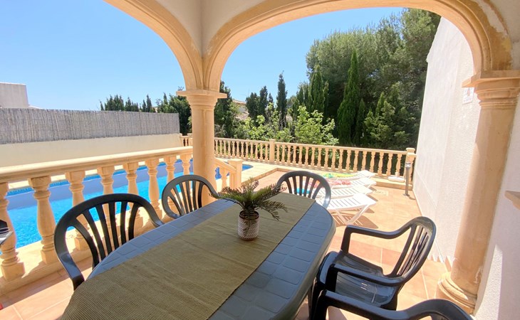 Haus. 24 Häuser in der Residenz. Im Ortsteil Monte Javea, 5 km vom Zentrum von Jávea-Arenal, am Hang, 3 km vom Meer. Zur Alleinbenutzung: Grundstück (eingezäunt) mit Pflanzen und Bäumen, Schwimmbad (8 x 4 m, 120 - 220 cm tief, saisonale Verfügbarkeit: 01.Jan. - 31.Dez.). Öffentliche Parkplätze auf der Strasse. Einkaufsgeschäft 2.5 km, Restaurant 1 km, Bushaltestelle "Calablanca" 3.6 km, Sandstrand "Arenal" 5 km, Kieselstrand "Granadella" 3 km. Tennis 1 km.