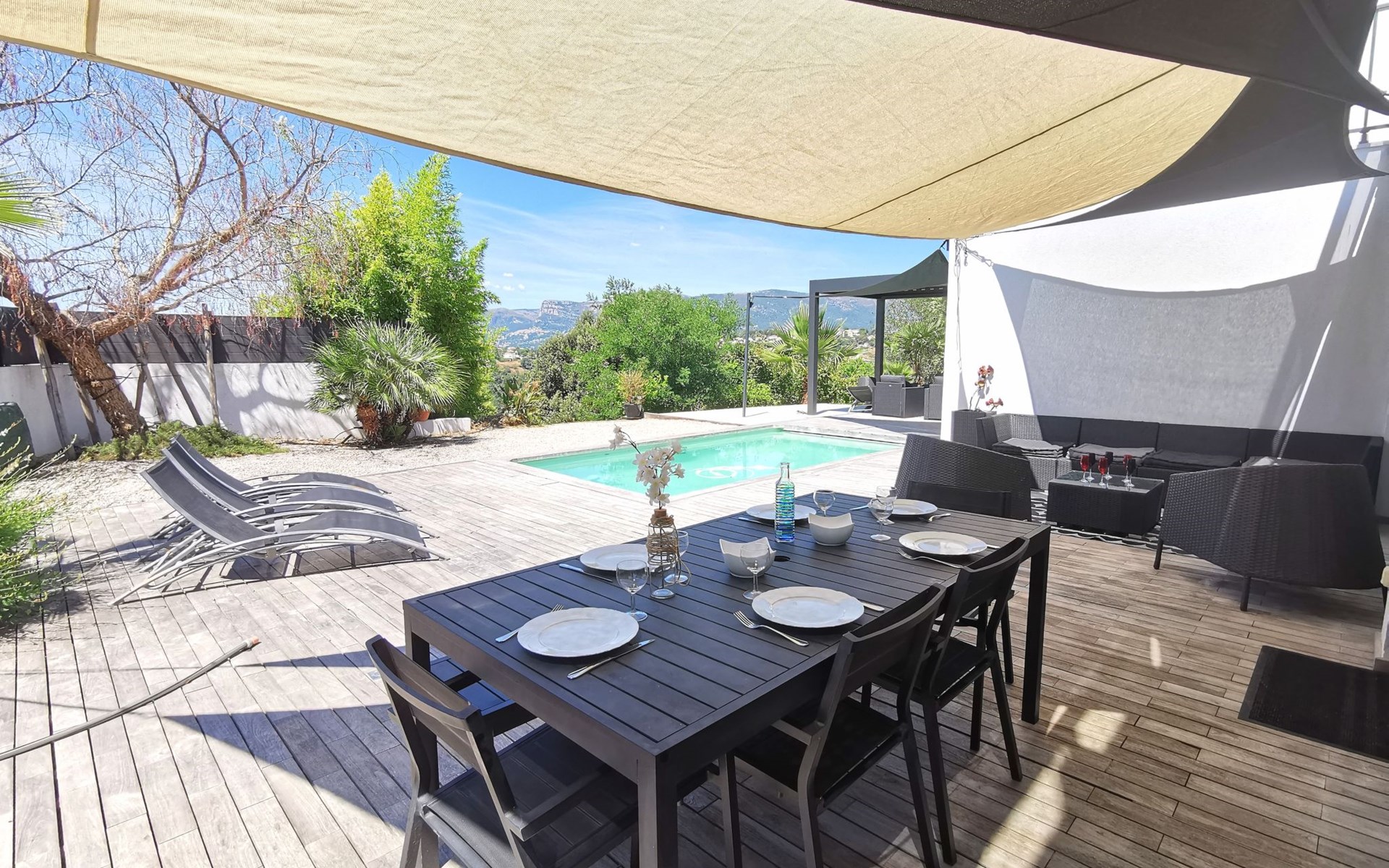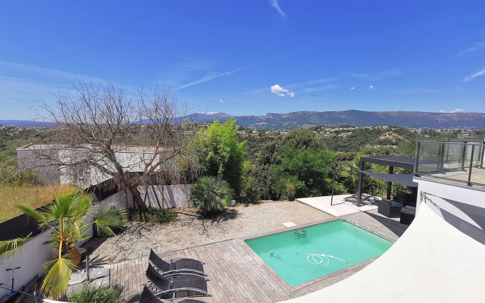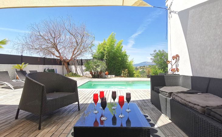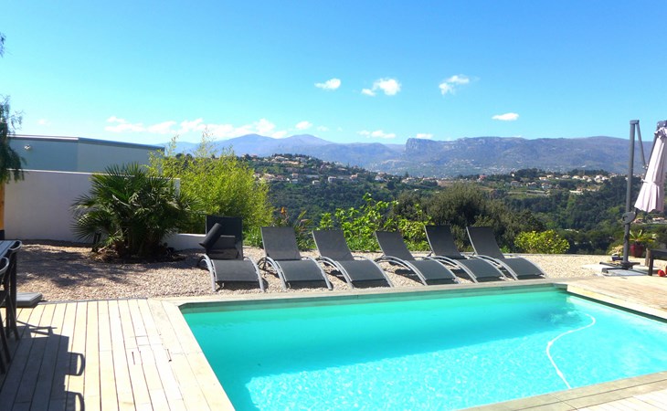 Moderne, schöne Villa "Les Oliviers", auf 2 Stockwerken, Baujahr 2012. Oberhalb von Nice Ouest, im Ortsteil St Pierre de Feric, ruhige, sonnige Lage in einem Wohnquartier, 8 km vom Meer, 8 km vom Strand. Zur Alleinbenutzung: Grundstück, Schwimmbad (6 x 4 m, 150 cm tief, saisonale Verfügbarkeit: 01.Jun. - 01.Sep.) mit Alarmanlage. Tischtennis, Terrasse, Parkplatz (für 4 Autos). Einkaufsgeschäft 4 km, Lebensmittelgeschäft 1.3 km, Supermarkt 1.3 km, Restaurant 1.2 km, Bäckerei 1.3 km, Bushaltestelle "Le Plateau" 10 m, Bahnstation "Nice-Ville" 7 km, Steinstrand "publique" 7 km. Golfplatz (18 Loch) 24 km, Reitstall 1.9 km. Nahe gelegene Sehenswürdigkeiten: Place Masséna 8 km, Promenade des Anglais 8 km, Vieux-Nice 9 km, Vieux-Port 10 km, Chateau de Nice 10 km. Wandergebiete: Parc National du Mercantour 54 km. Bitte beachten: Fahrzeug empfohlen. Der Besitzer akzeptiert keine Jugendgruppen. Die Schlüsselübergabe findet bei der Agentur Interhome in Nice statt, 6 km.