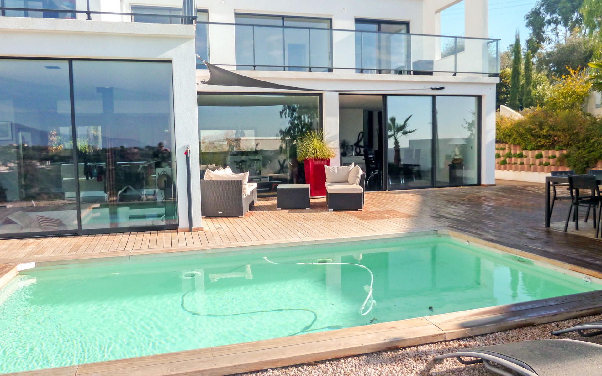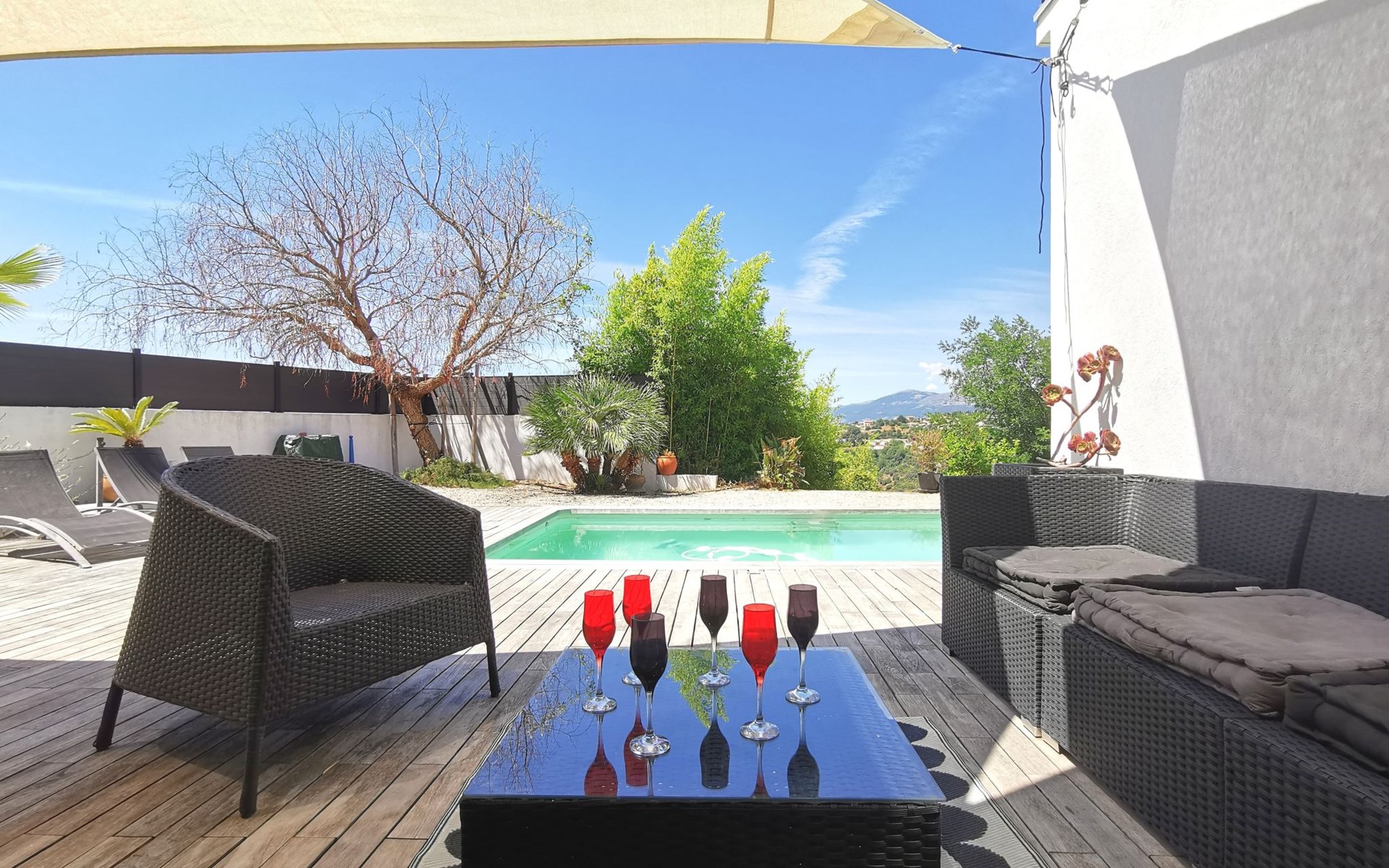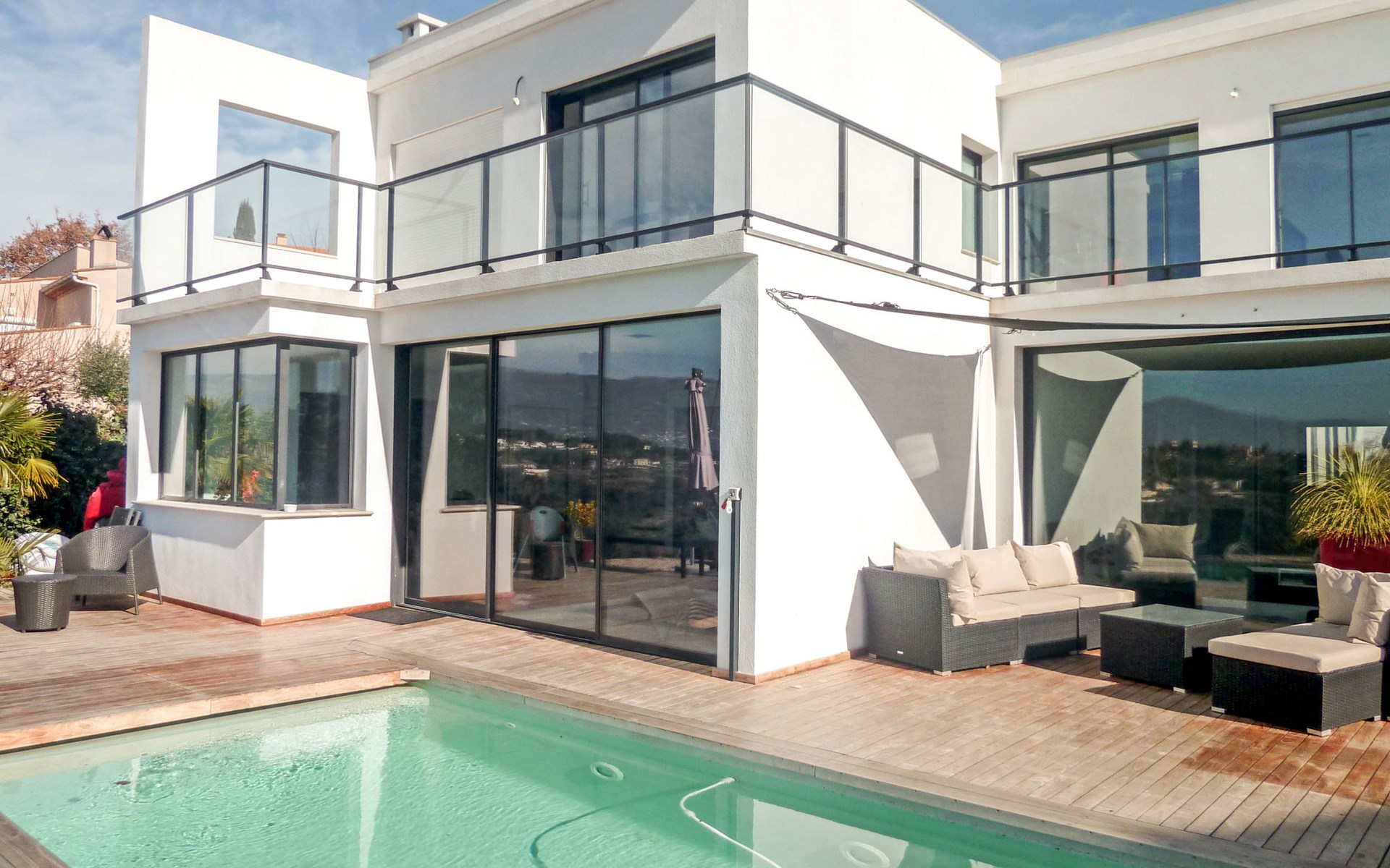 Moderne, schöne Villa "Les Oliviers", auf 2 Stockwerken, Baujahr 2012. Oberhalb von Nice Ouest, im Ortsteil St Pierre de Feric, ruhige, sonnige Lage in einem Wohnquartier, 8 km vom Meer, 8 km vom Strand. Zur Alleinbenutzung: Grundstück, Schwimmbad (6 x 4 m, 150 cm tief, saisonale Verfügbarkeit: 01.Jun. - 01.Sep.) mit Alarmanlage. Tischtennis, Terrasse, Parkplatz (für 4 Autos). Einkaufsgeschäft 4 km, Lebensmittelgeschäft 1.3 km, Supermarkt 1.3 km, Restaurant 1.2 km, Bäckerei 1.3 km, Bushaltestelle "Le Plateau" 10 m, Bahnstation "Nice-Ville" 7 km, Steinstrand "publique" 7 km. Golfplatz (18 Loch) 24 km, Reitstall 1.9 km. Nahe gelegene Sehenswürdigkeiten: Place Masséna 8 km, Promenade des Anglais 8 km, Vieux-Nice 9 km, Vieux-Port 10 km, Chateau de Nice 10 km. Wandergebiete: Parc National du Mercantour 54 km. Bitte beachten: Fahrzeug empfohlen. Der Besitzer akzeptiert keine Jugendgruppen. Die Schlüsselübergabe findet bei der Agentur Interhome in Nice statt, 6 km.