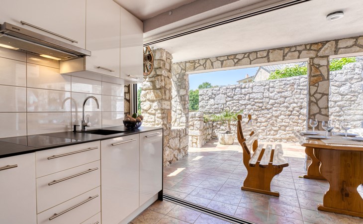 Einfamilienhaus "Lovreno", auf 2 Stockwerken. 1.5 km vom Zentrum von Crikvenica, 8 km vom Zentrum von Jadranovo, 12 km vom Zentrum von Novi Vinodolski, 1.4 km vom Meer, 1.4 km vom Strand. Zur Alleinbenutzung: Grundstück 80 m2 mit Rasen und Pflanzen. Aussendusche, Grill. Im Hause: Internetzugang, Waschmaschine. Zufahrt bis 50 m zum Haus. 50 m Fussweg bis zum Haus. Parkplatz (für 2 Autos) in 50 m. Einkaufsgeschäft 1 km, Restaurant 1.5 km, Bushaltestelle 3.6 km, Kieselstrand 1.4 km. Jacht-Hafen 2 km. Bitte beachten: Flugplatz 36 km vom Haus.