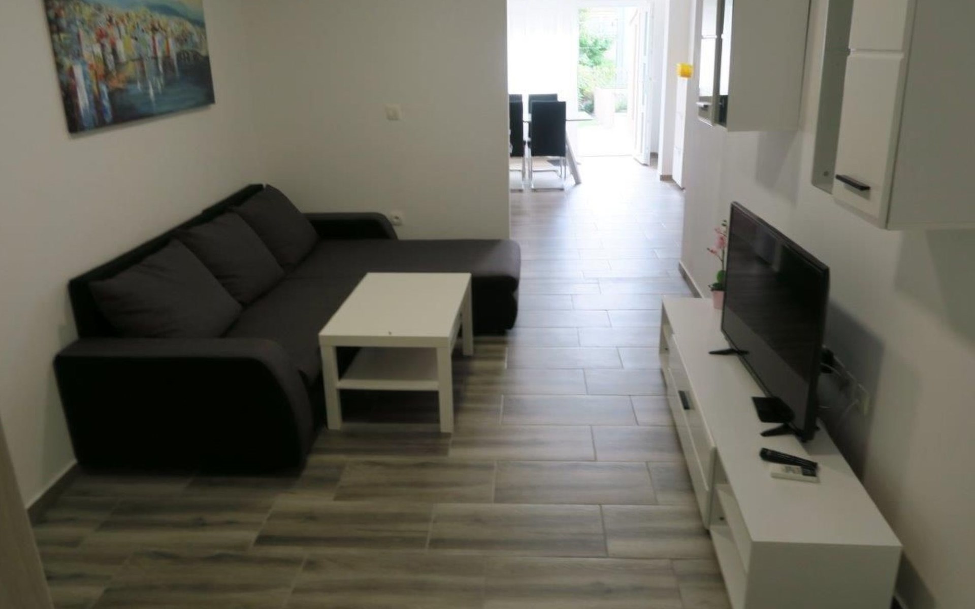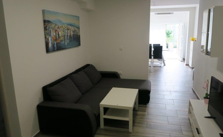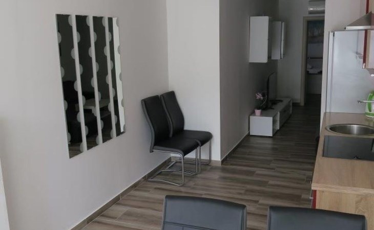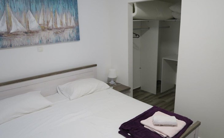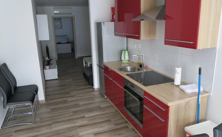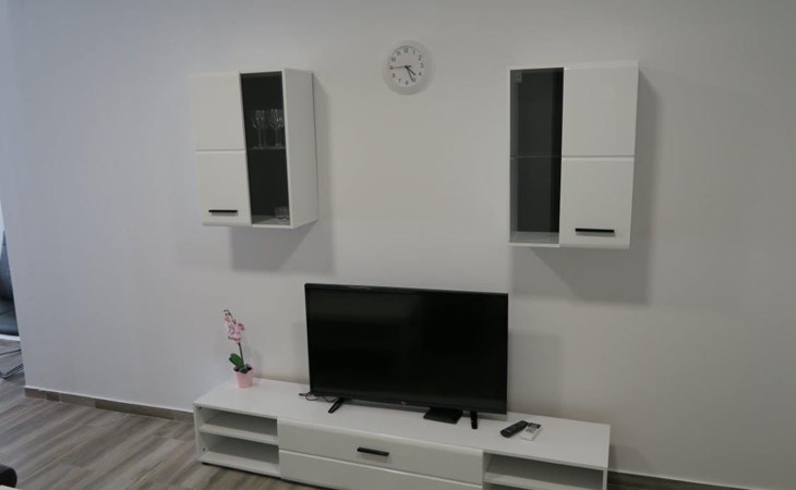 Die Zweibett-Wohnung bietet 65m² Wohnfläche. Die Wohnung hat eine offene Küche, voll ausgestattet mit Herd, Backofen, Kühlschrank, Mikrowelle, Geschirrspüler und Wasserkocher. Es gibt einen schönen großen Tisch mit 6 Stühlen, an dem Sie Ihre Mahlzeiten genießen können. An die Küche schließt sich ein Wohnzimmer mit Flachbildfernseher, Stereoanlage und Doppelschlafsofa an. Das Sofa ist 90 x 200 cm groß und 180 x 200 cm, wenn es ausgezogen ist. Die Wohnung hat auch 2 Badezimmer mit Dusche, WC, Haartrockner und Waschbecken mit Unterschrank und Waschmaschine. Die Wohnung hat 1 großes Schlafzimmer mit einem Doppelbett (180 x 200cm) und ein Schlafzimmer mit 2 Betten von 90 x 200cm. In allen Zimmern gibt es Schränke. Alle Zimmer der Wohnung sind klimatisiert. Internetzugang ist in der ganzen Wohnung verfügbar.
