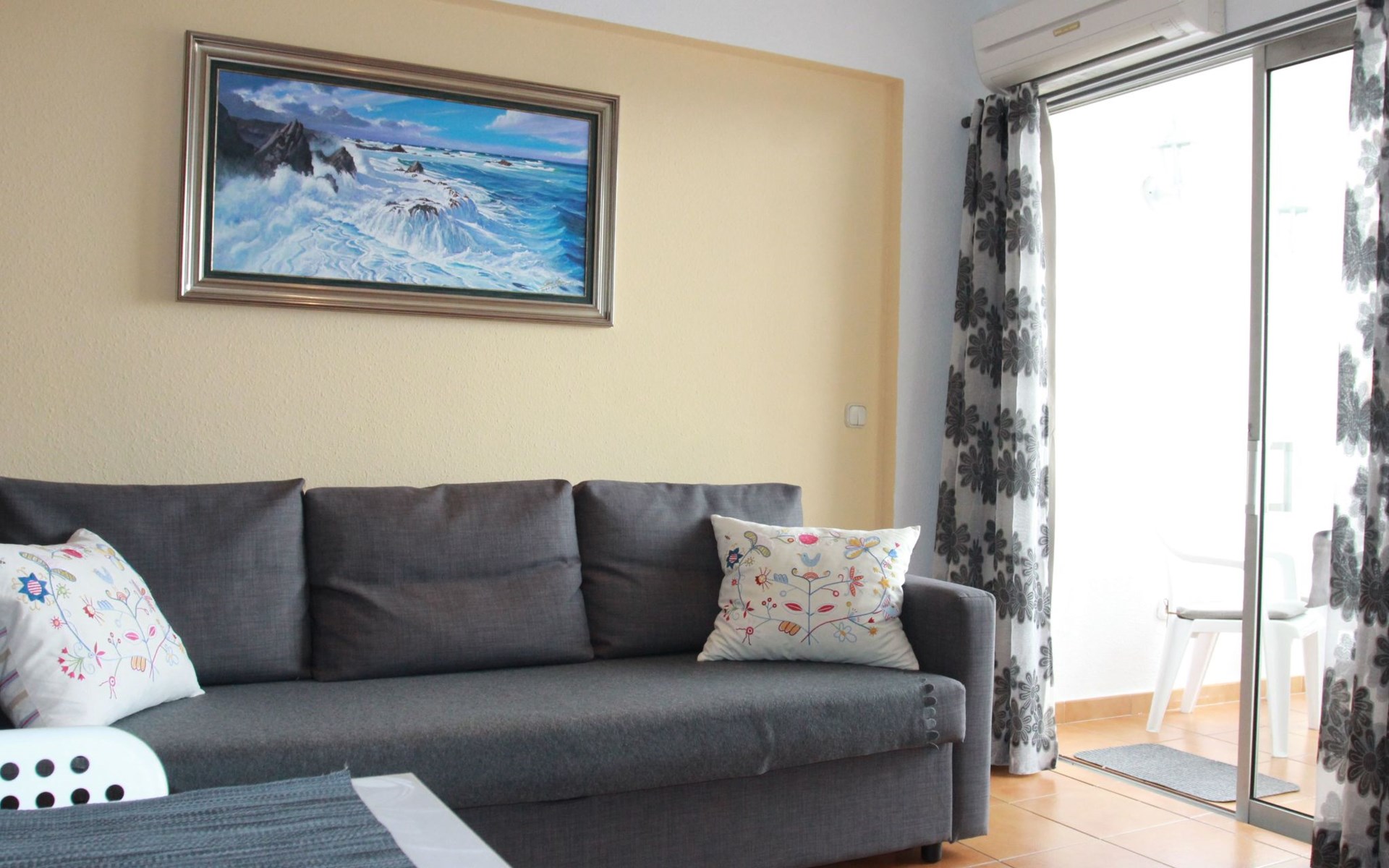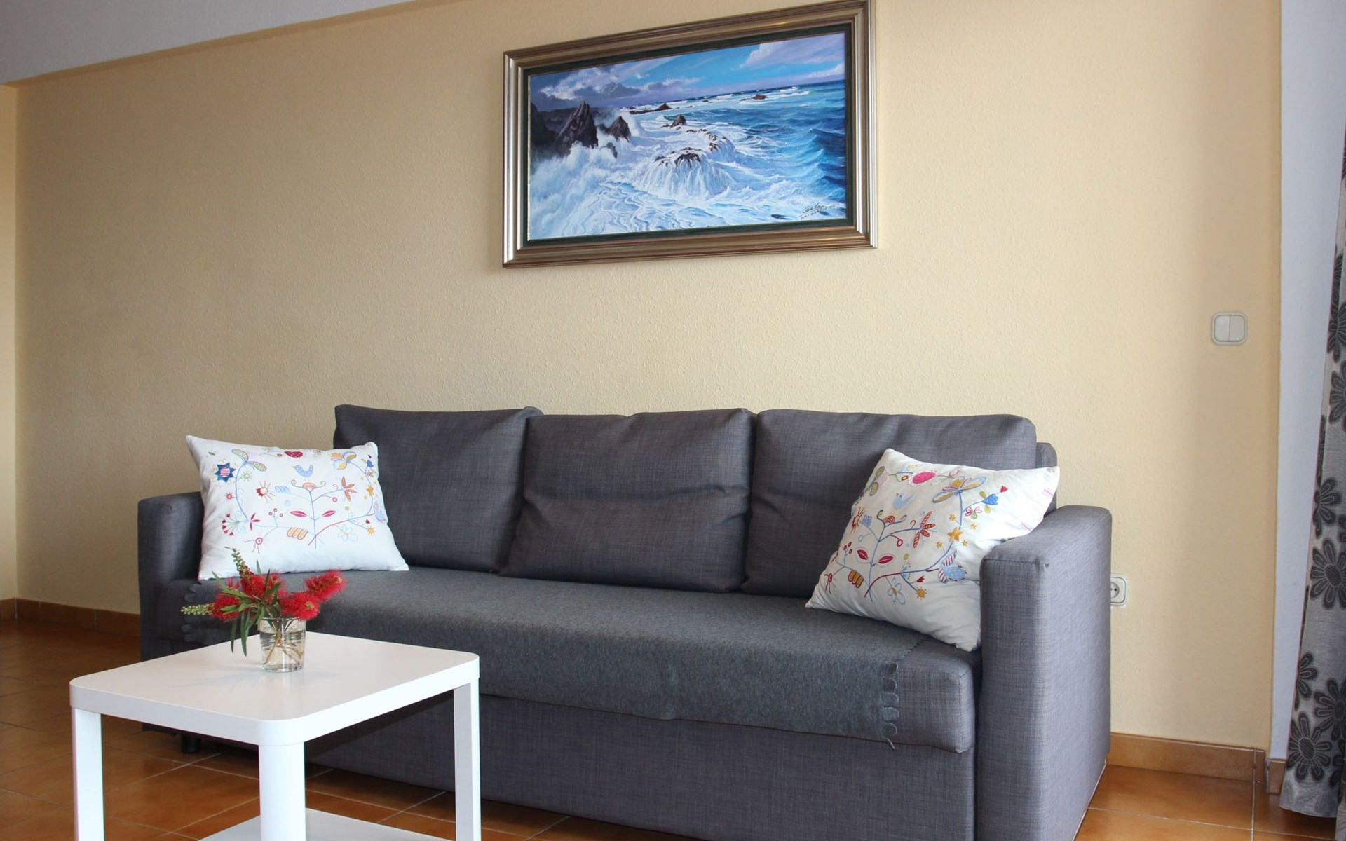 Die im Jahre 2016 renovierte, ca. 48 qm große Wohnung liegt im 2. Stock eines Apartmenthauses und besteht aus einem gemütlich eingerichteten Wohnzimmer, einer gut ausgestatteten Küchenzeile, einem Schlafzimmer und einem Badezimmer. Im Schlafzimmer schlafen Sie in einem Doppelbett einer Maße von 180 cm x 200 cm. Im klimatisierten Wohnzimmer entspannen Sie auf einem ausziehbaren Dreisitzer, der sich auch als Schlafmöglichkeit für einen dritten und vierten Gast eignet. Selbstverständlich ist hier ein LED-Fernseher mit Sat.-TV und ein TV-Schrank vorhanden. Daneben befindet sich der Esstisch, der von vier Stühlen umgeben, zu einer gemeinsamen Mahlzeit einlädt. Am Essplatz vorbei gelangen Sie in die integrierte Küche. Diese ermöglicht Ihnen eine umfangreiche Selbstversorgung anhand eines großen Kühlschranks, eines Vierzonen-Cerankochfelds, Mini-Backofen, einer Mikrowelle, einer Abzugshaube, sowie den üblichen Kleinelektrogeräten wie Wasserkocher, Kaffeemaschine und Geschirr. Das Badezimmer ist als Duschbad mit Duschkabine, WC und Handwaschbecken konzipiert. Zur komfortablen Ausstattung zählt die Klimaanlage im Wohnzimmer, die kostenlose Internetverbindung per WLAN, Safe, Waschmaschine, inklusive Bettwäsche und Handtücher.