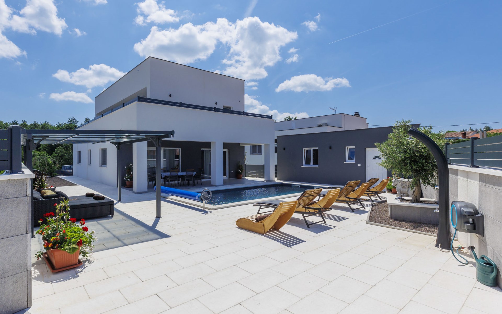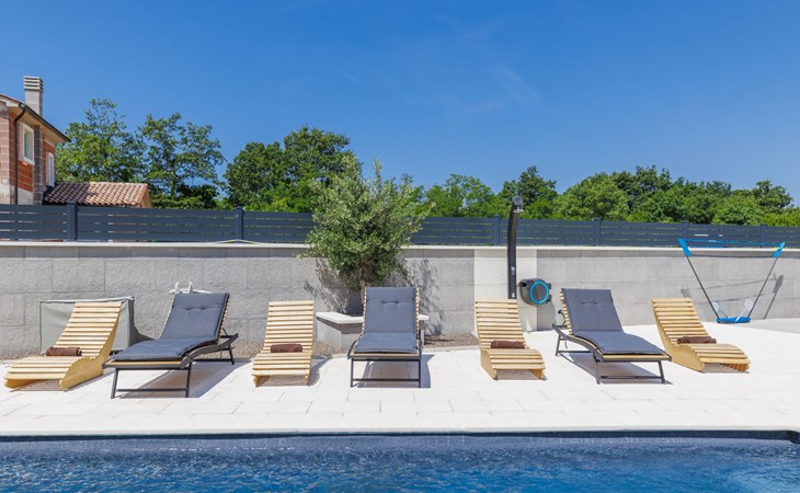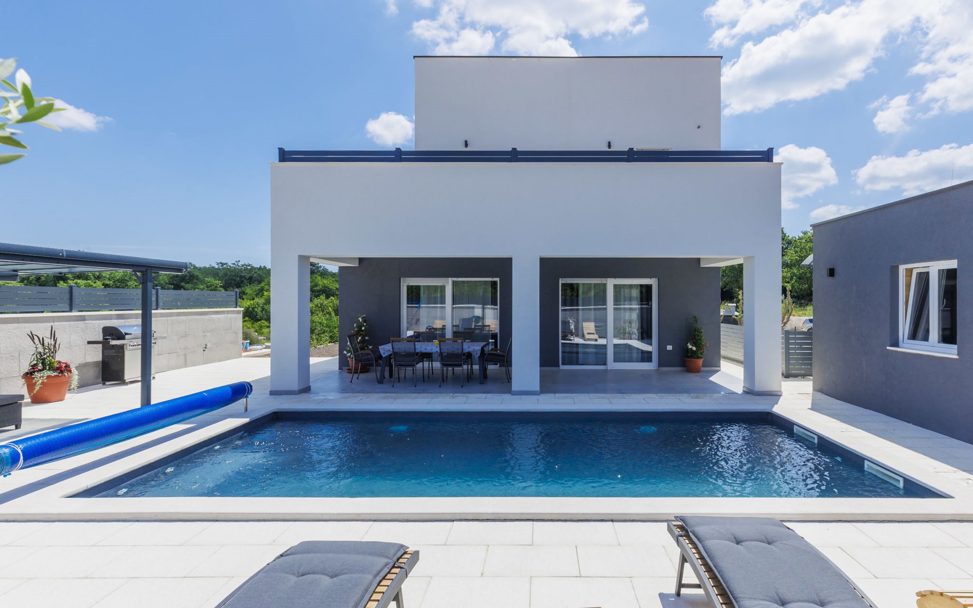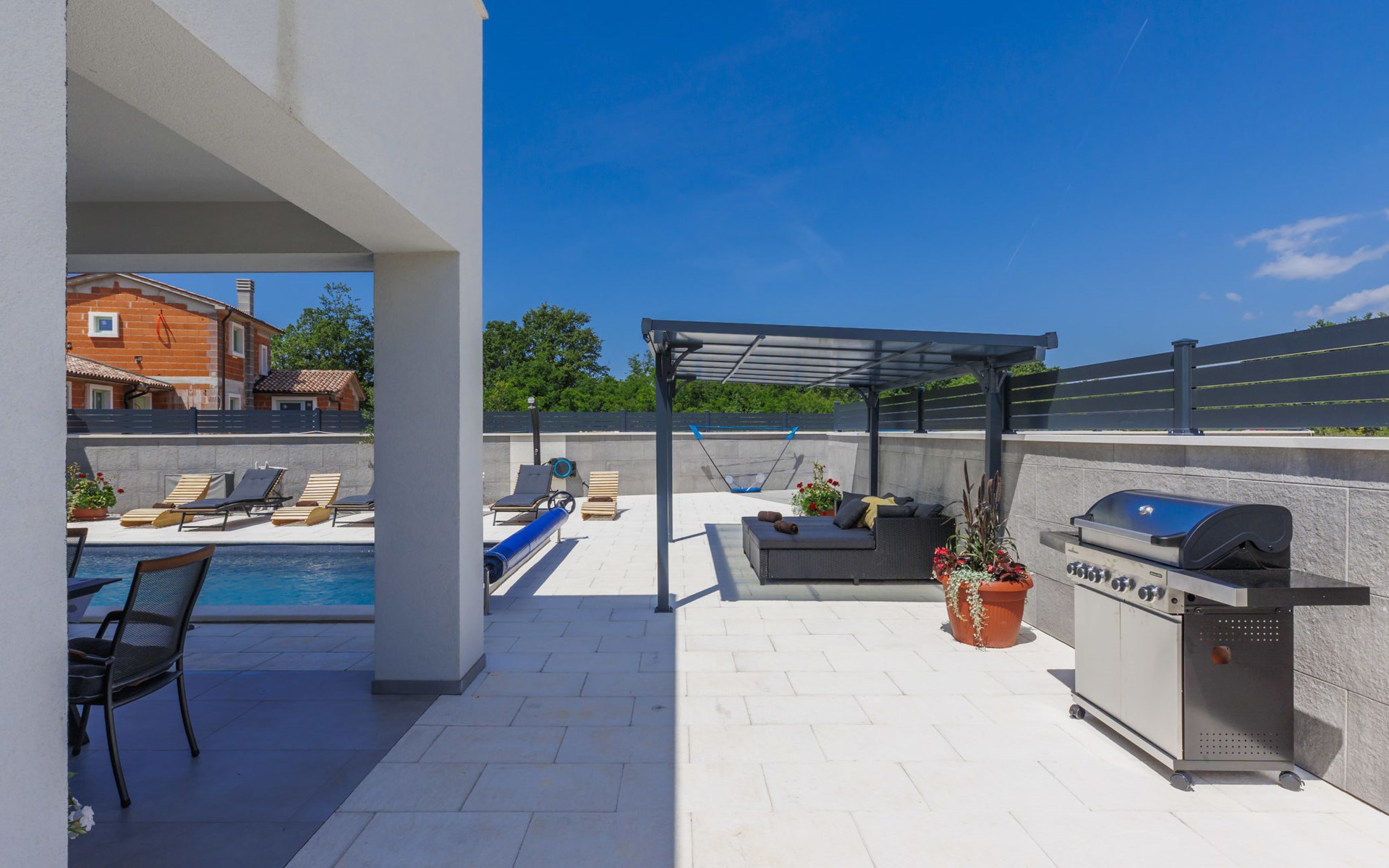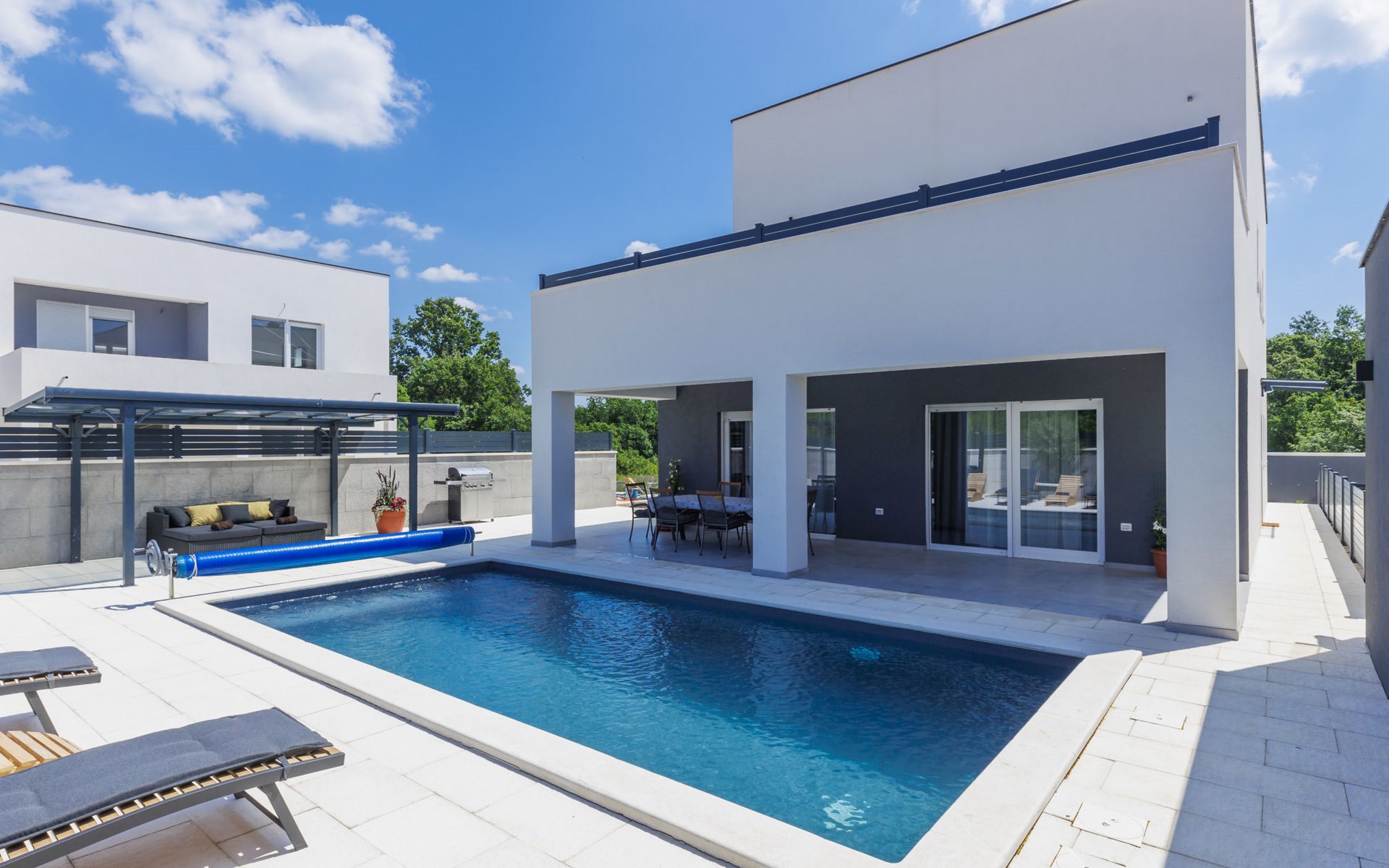 Moderne Villa "Drago", auf 2 Stockwerken. Im Weiler Kacana, 4 km vom Zentrum von Vodnjan, 15 km vom Zentrum von Pula, sonnige Lage, 10 km vom Meer. Zur Alleinbenutzung: Grundstück 500 m2 (eingezäunt) mit Pflanzen und Blumen, Schwimmbad eckig, beheizt (8 x 4 m, 140 cm tief, saisonale Verfügbarkeit: 01.Jan. - 31.Dez.) mit Innentreppe. WC im Poolbereich, Aussendusche, Terrasse (30 m2), Gartenmöbel, Grill, Poolpflege durch den Besitzer/Gärtner. Im Hause: Internetzugang, Sauna, Sprudelbad, Wellnessbereich, Waschmaschine. Zufahrt bis zum Haus (300 m Naturweg). Parkplatz (für 3 Autos) beim Haus auf dem Grundstück. Einkaufsgeschäft 4 km, Restaurant 4 km, Bushaltestelle 2.8 km, Kieselstrand 10 km, Felsstrand 10 km. Surfschule 13 km, Segelschule 13 km, Tennis 14 km, Radweg 100 m. Nahe gelegene Sehenswürdigkeiten: amphitheater 14 km.