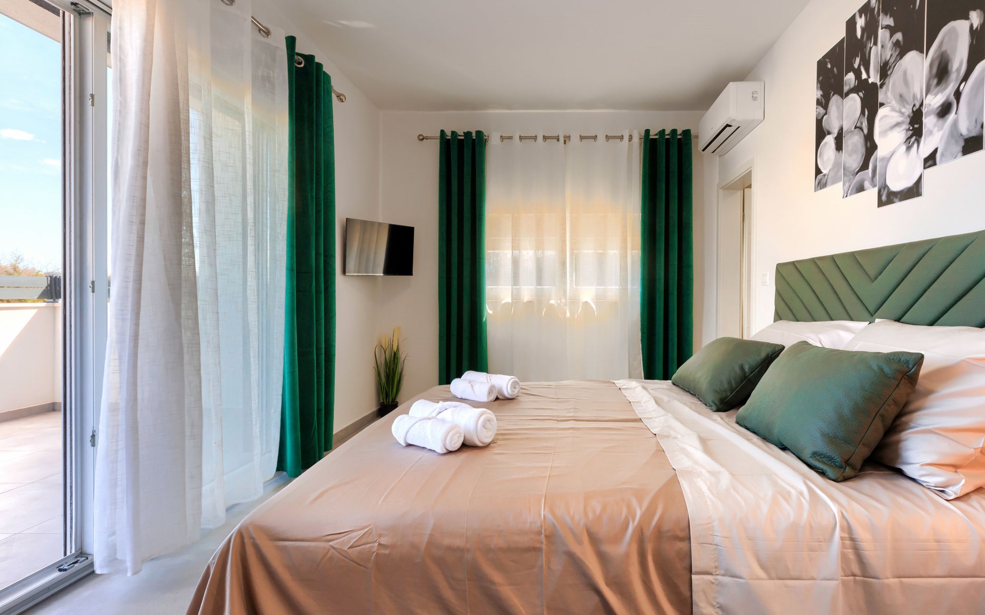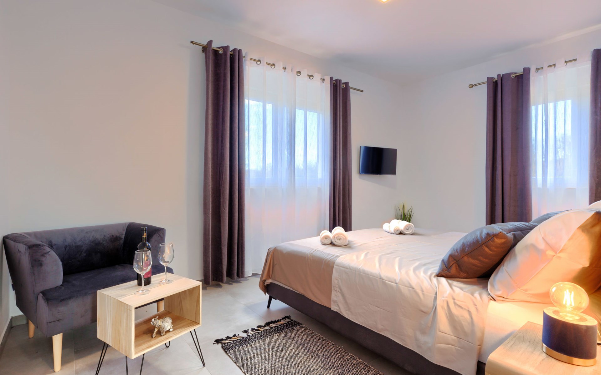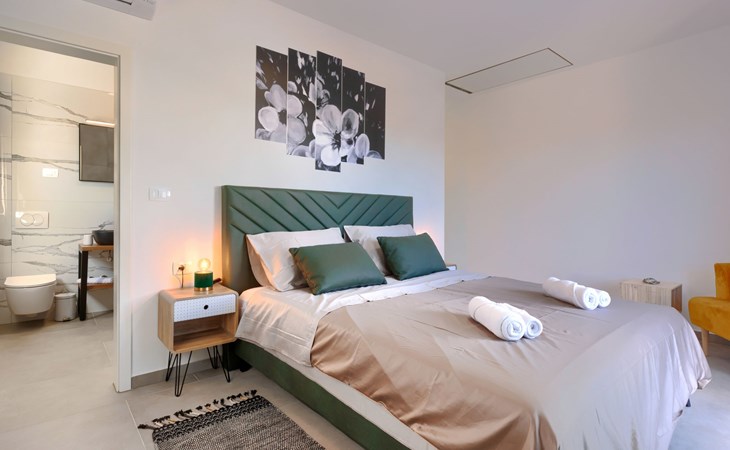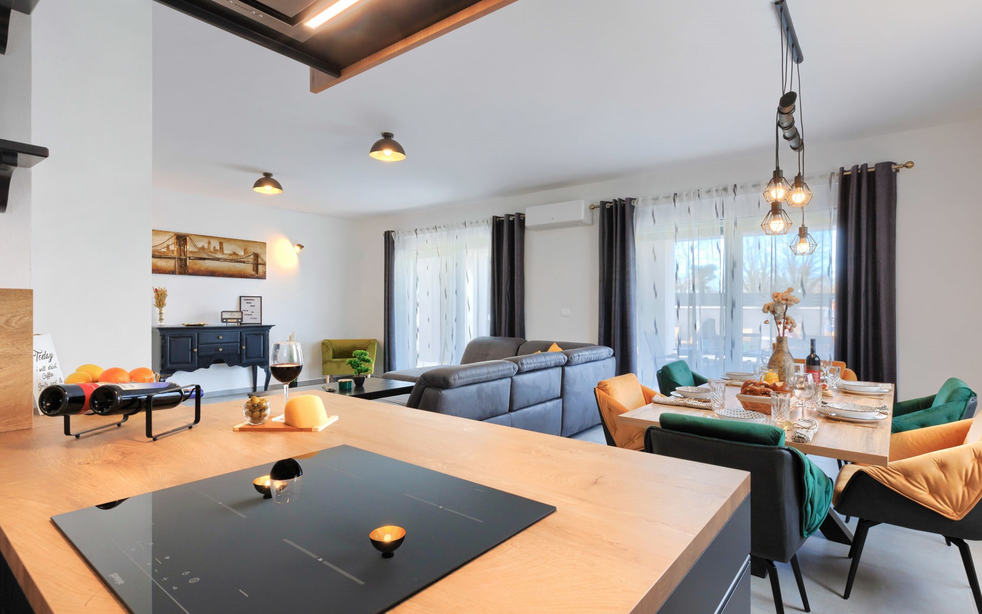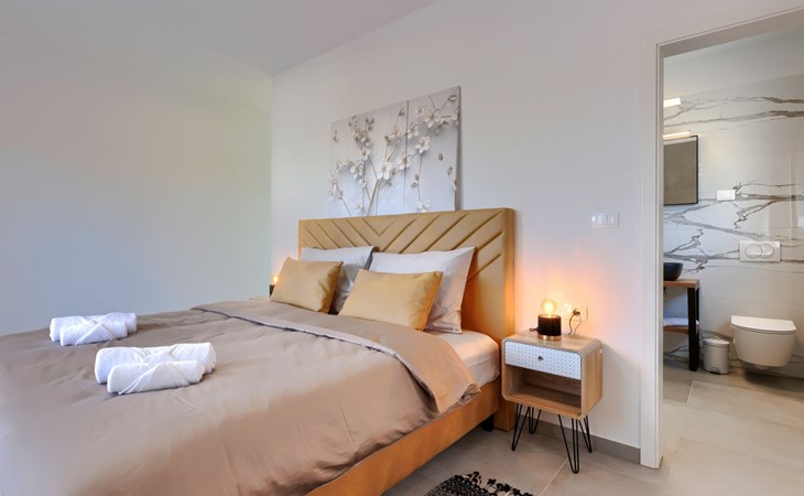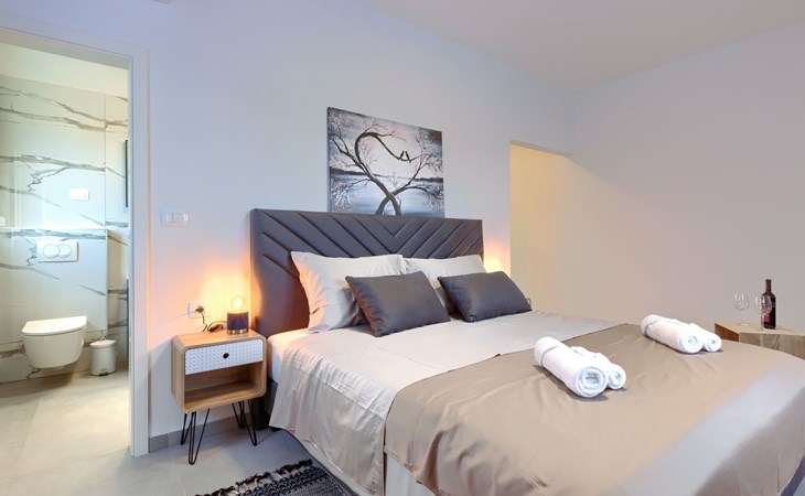 Moderne Villa "Drago", auf 2 Stockwerken. Im Weiler Kacana, 4 km vom Zentrum von Vodnjan, 15 km vom Zentrum von Pula, sonnige Lage, 10 km vom Meer. Zur Alleinbenutzung: Grundstück 500 m2 (eingezäunt) mit Pflanzen und Blumen, Schwimmbad eckig, beheizt (8 x 4 m, 140 cm tief, saisonale Verfügbarkeit: 01.Jan. - 31.Dez.) mit Innentreppe. WC im Poolbereich, Aussendusche, Terrasse (30 m2), Gartenmöbel, Grill, Poolpflege durch den Besitzer/Gärtner. Im Hause: Internetzugang, Sauna, Sprudelbad, Wellnessbereich, Waschmaschine. Zufahrt bis zum Haus (300 m Naturweg). Parkplatz (für 3 Autos) beim Haus auf dem Grundstück. Einkaufsgeschäft 4 km, Restaurant 4 km, Bushaltestelle 2.8 km, Kieselstrand 10 km, Felsstrand 10 km. Surfschule 13 km, Segelschule 13 km, Tennis 14 km, Radweg 100 m. Nahe gelegene Sehenswürdigkeiten: amphitheater 14 km.
