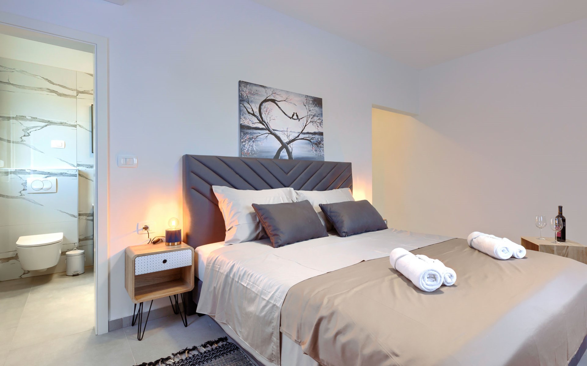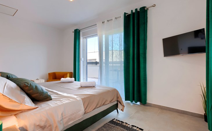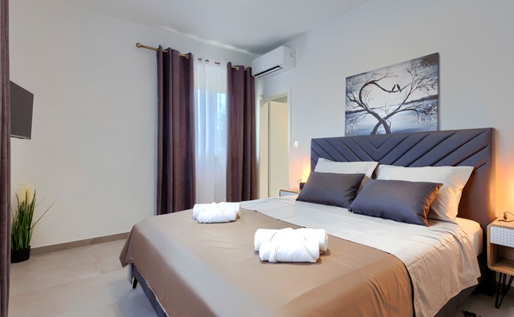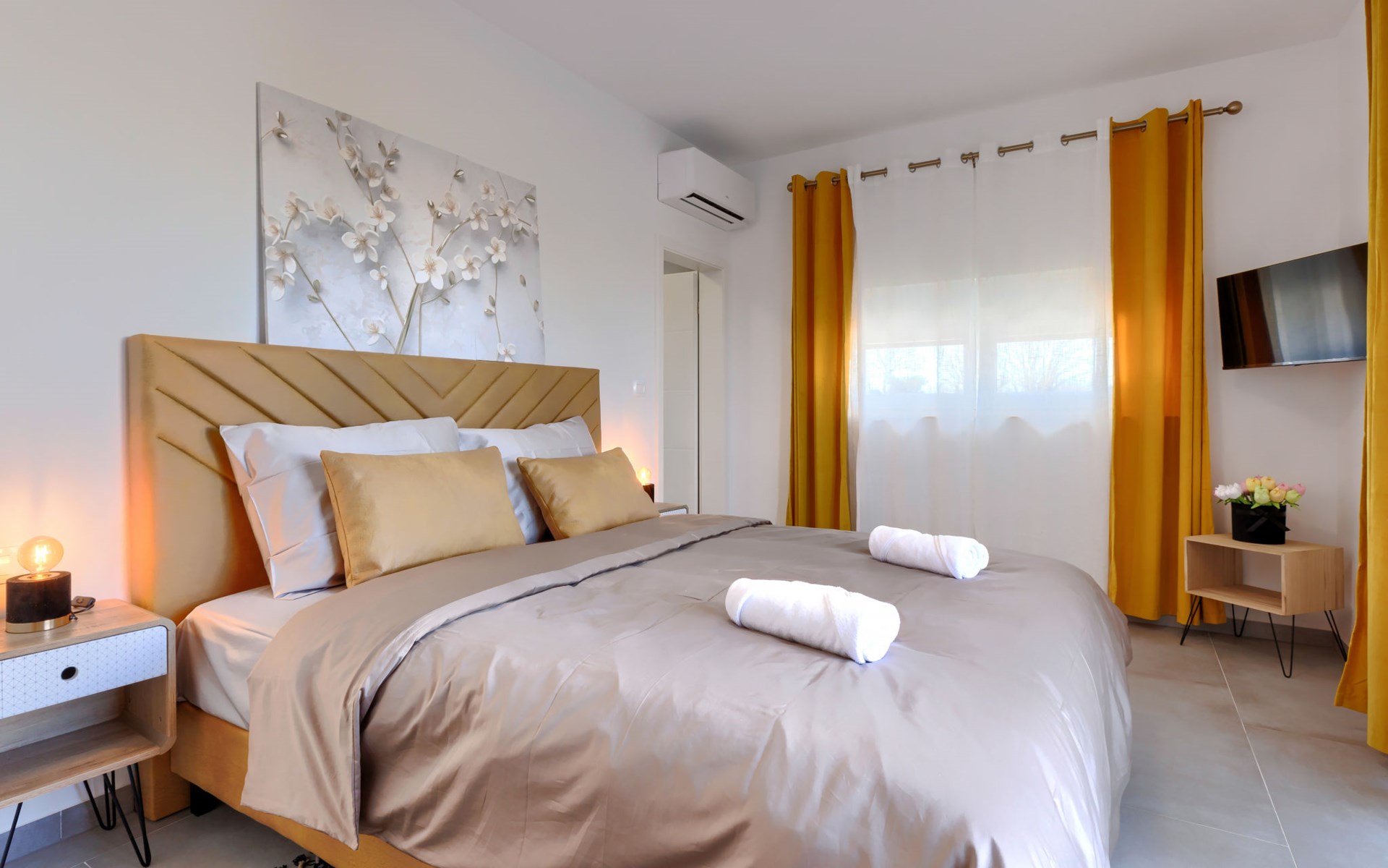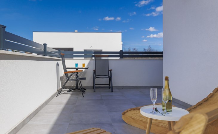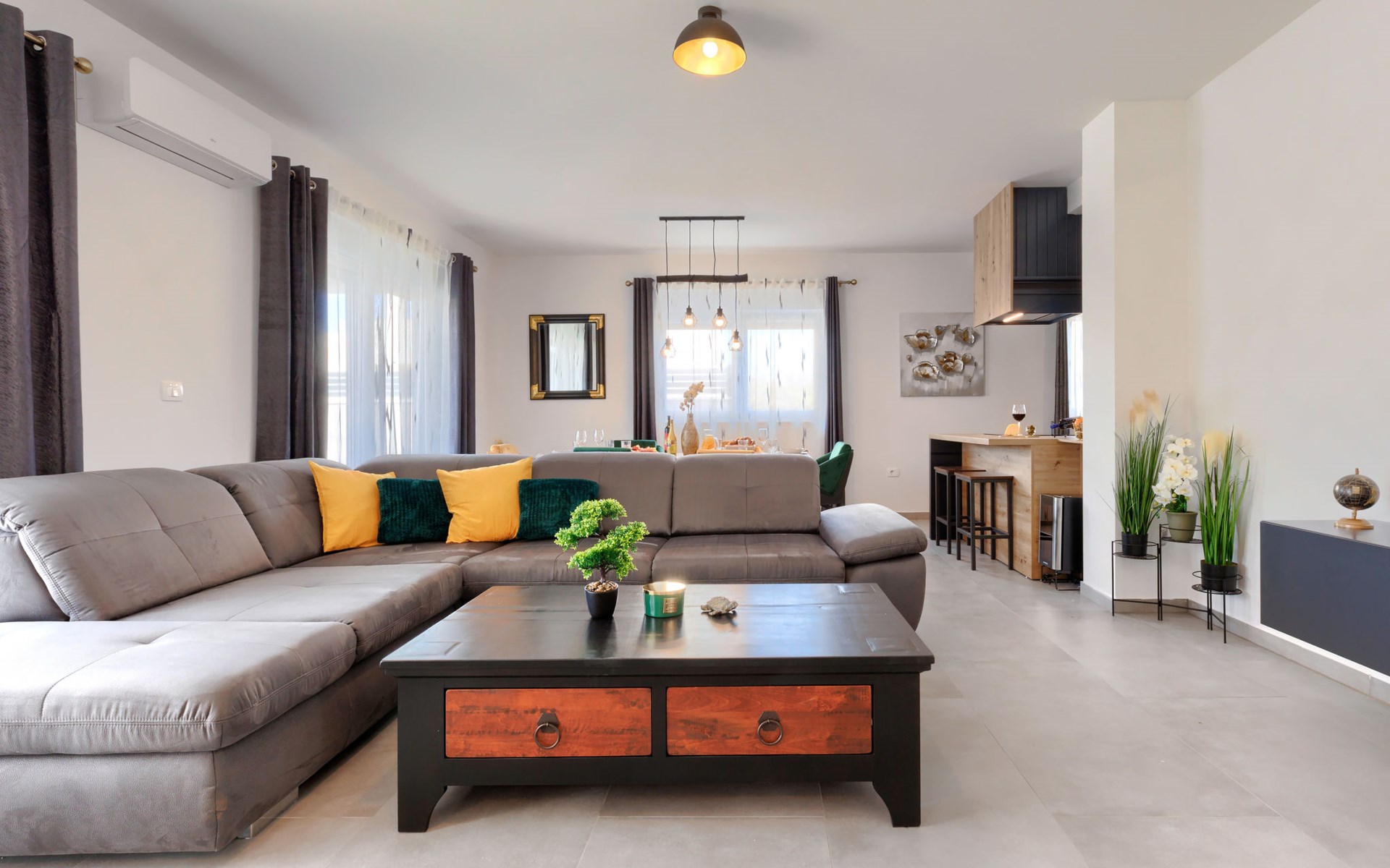 Moderne Villa "Drago", auf 2 Stockwerken. Im Weiler Kacana, 4 km vom Zentrum von Vodnjan, 15 km vom Zentrum von Pula, sonnige Lage, 10 km vom Meer. Zur Alleinbenutzung: Grundstück 500 m2 (eingezäunt) mit Pflanzen und Blumen, Schwimmbad eckig, beheizt (8 x 4 m, 140 cm tief, saisonale Verfügbarkeit: 01.Jan. - 31.Dez.) mit Innentreppe. WC im Poolbereich, Aussendusche, Terrasse (30 m2), Gartenmöbel, Grill, Poolpflege durch den Besitzer/Gärtner. Im Hause: Internetzugang, Sauna, Sprudelbad, Wellnessbereich, Waschmaschine. Zufahrt bis zum Haus (300 m Naturweg). Parkplatz (für 3 Autos) beim Haus auf dem Grundstück. Einkaufsgeschäft 4 km, Restaurant 4 km, Bushaltestelle 2.8 km, Kieselstrand 10 km, Felsstrand 10 km. Surfschule 13 km, Segelschule 13 km, Tennis 14 km, Radweg 100 m. Nahe gelegene Sehenswürdigkeiten: amphitheater 14 km.