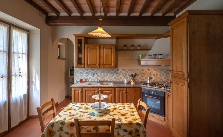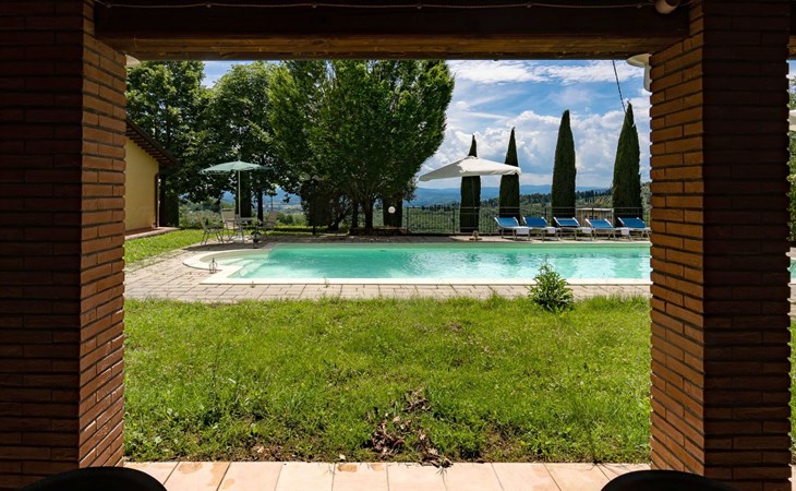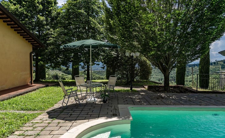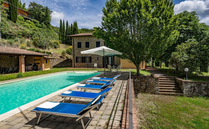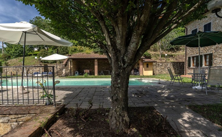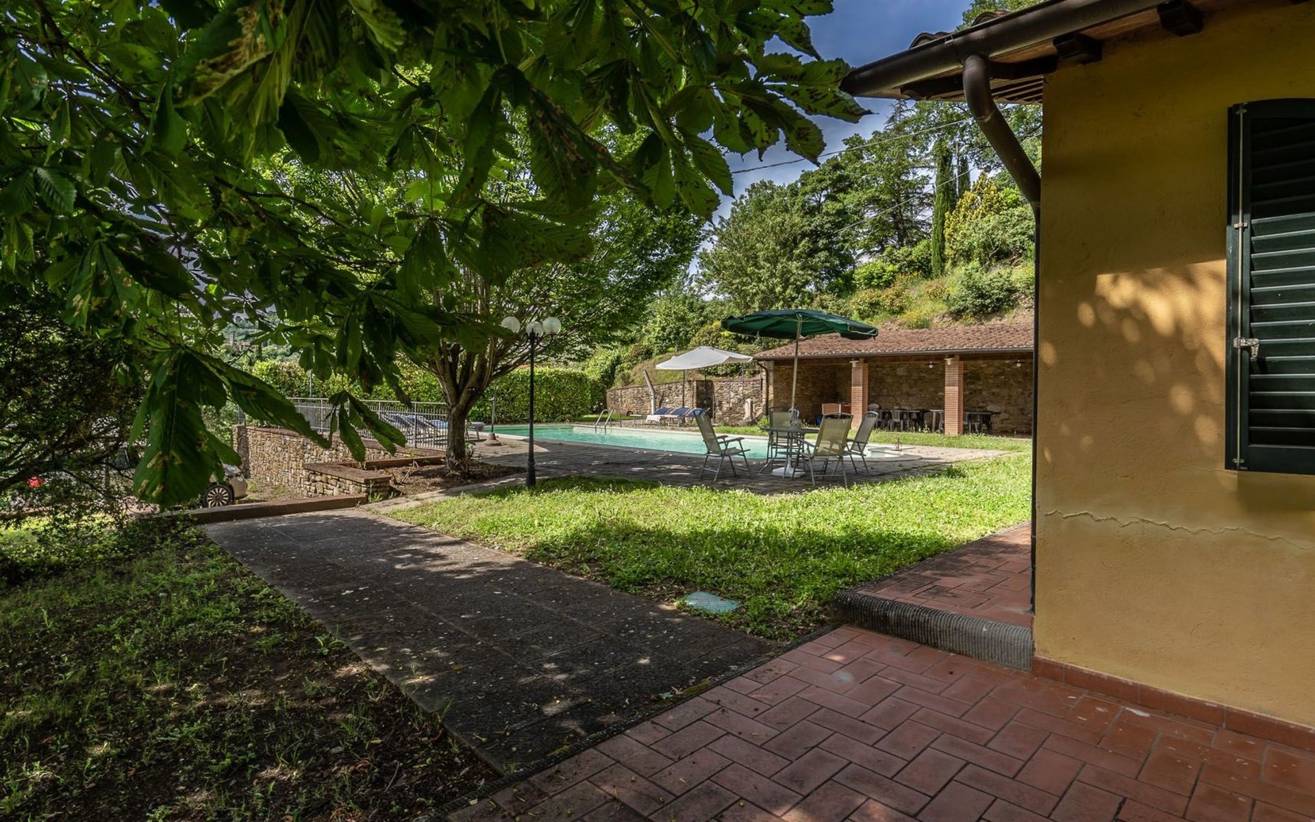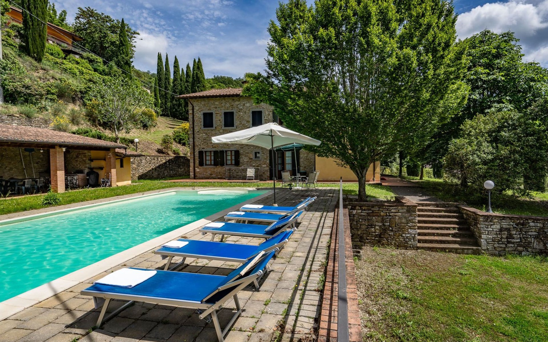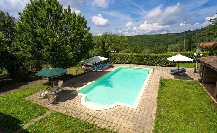 Der große Garten beherbergt einen schönen Swimmingpool (12x6 m), der mit Sonnenliegen und Sonnenschirmen ausgestattet ist. Neben dem Pool befindet sich eine Veranda mit einer Außenküche, Tischen und Stühlen, um köstliche toskanische Gerichte im Freien zu genießen.