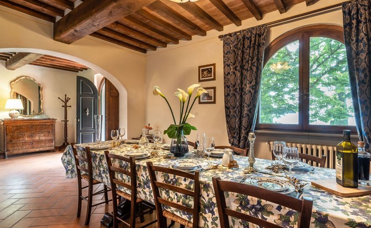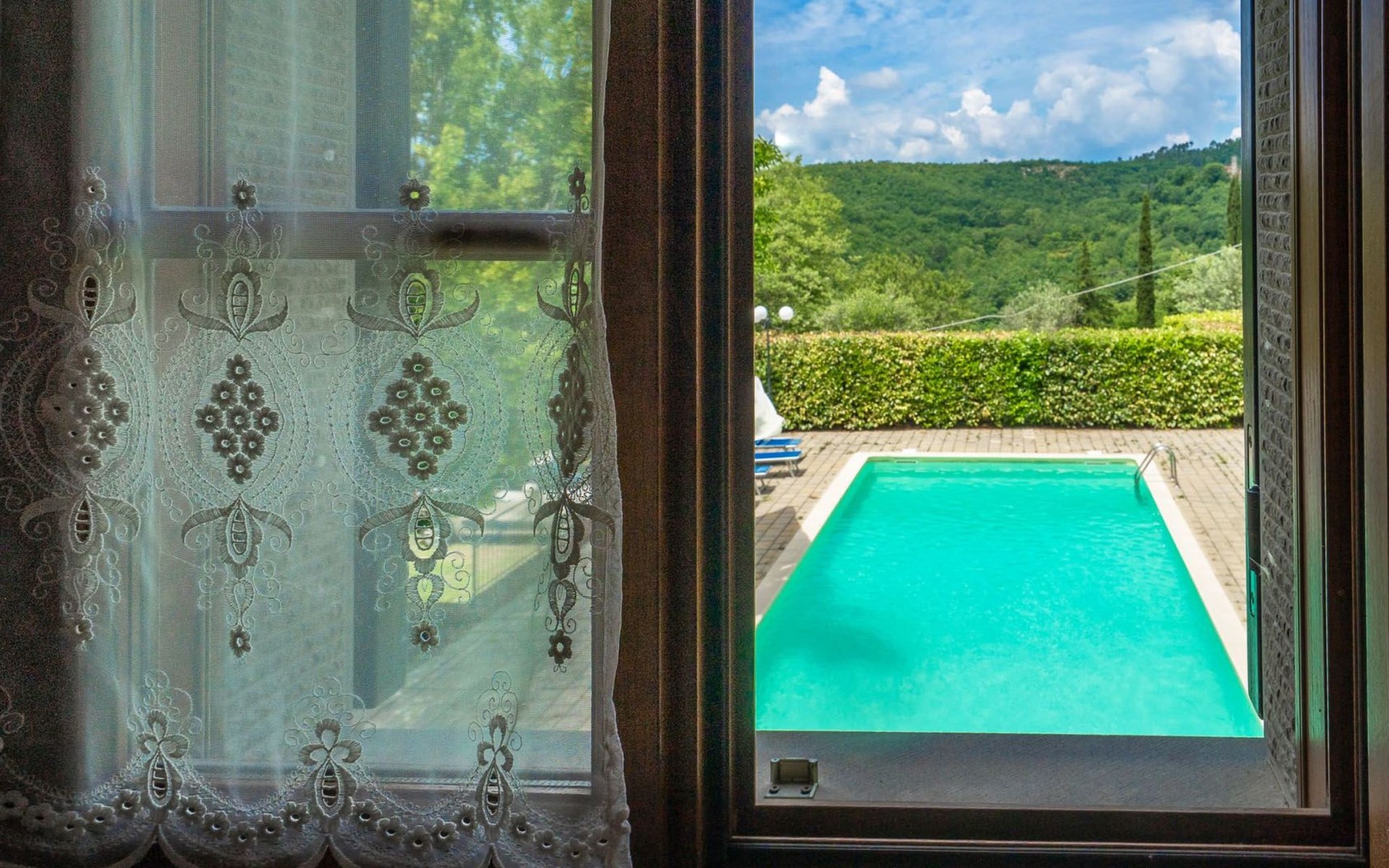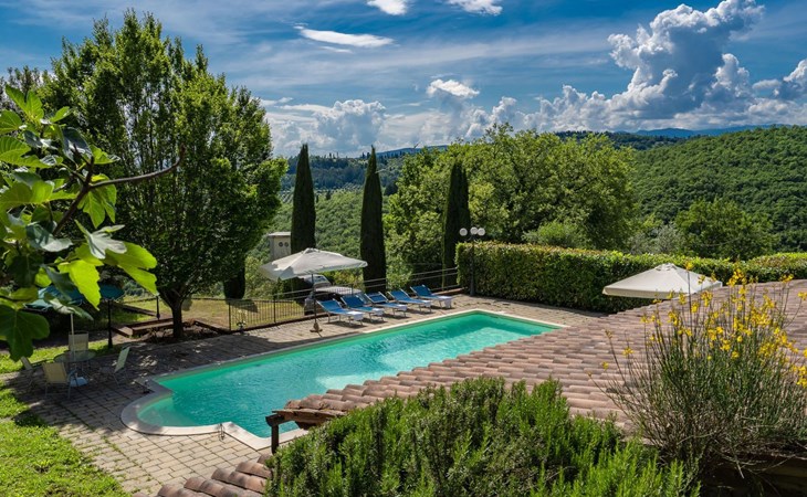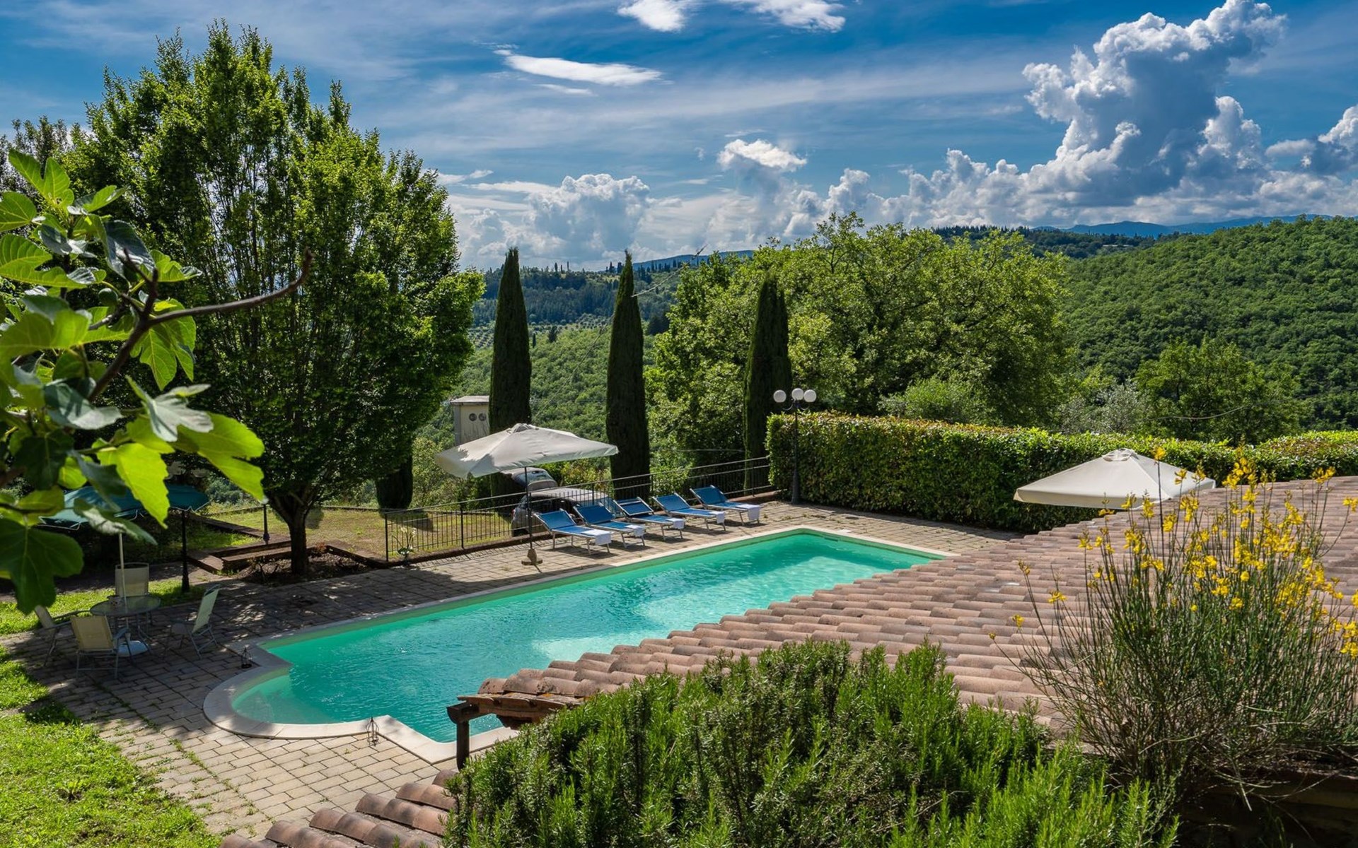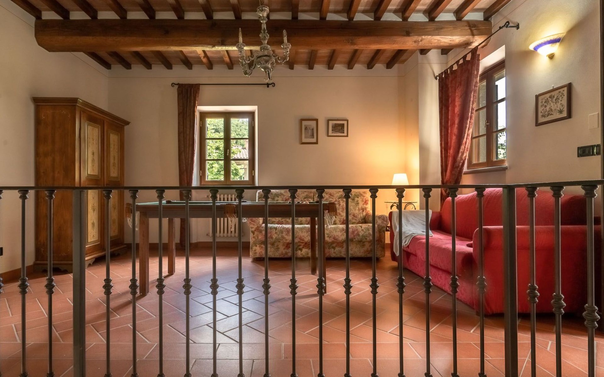 Der große Garten beherbergt einen schönen Swimmingpool (12x6 m), der mit Sonnenliegen und Sonnenschirmen ausgestattet ist. Neben dem Pool befindet sich eine Veranda mit einer Außenküche, Tischen und Stühlen, um köstliche toskanische Gerichte im Freien zu genießen.