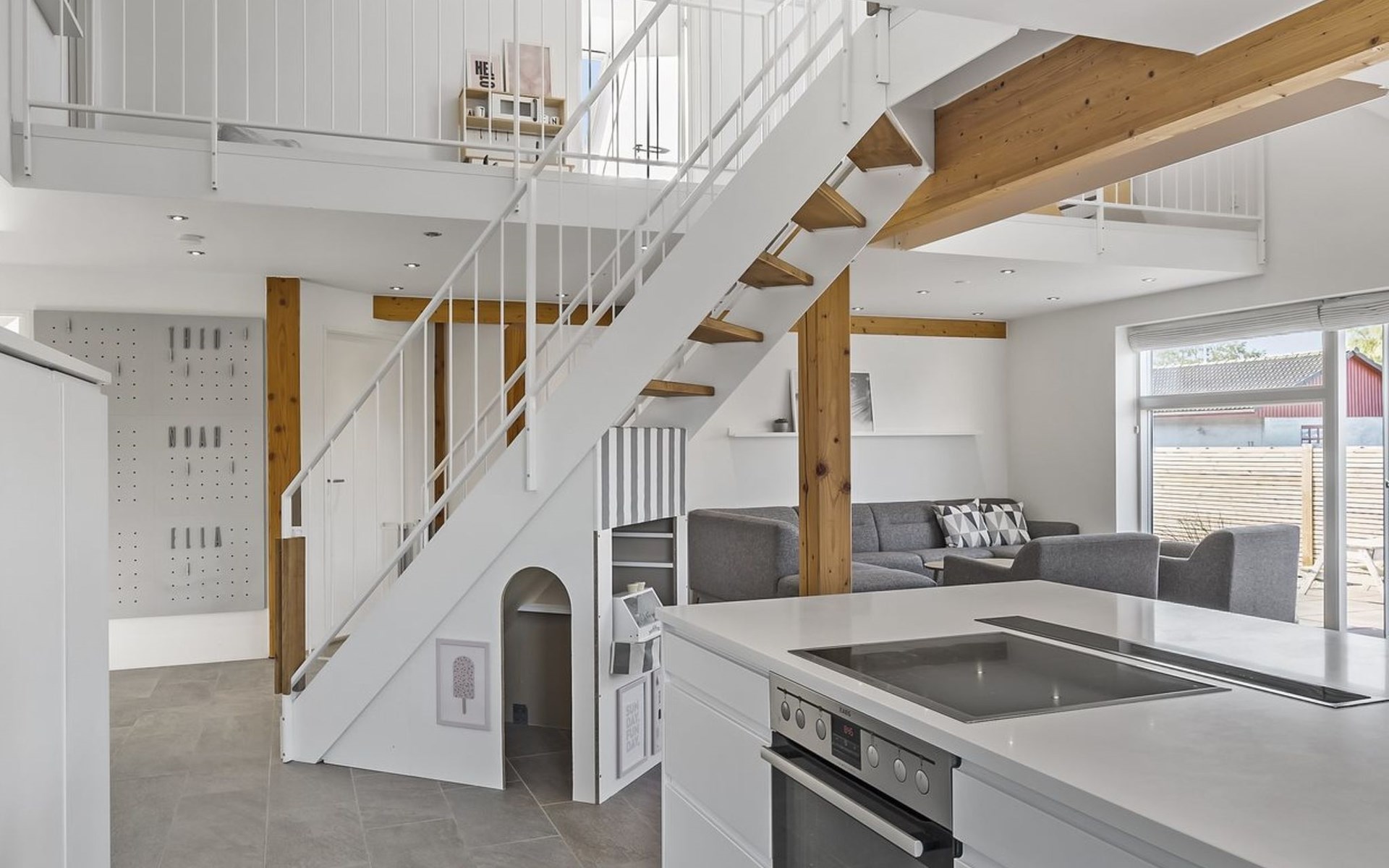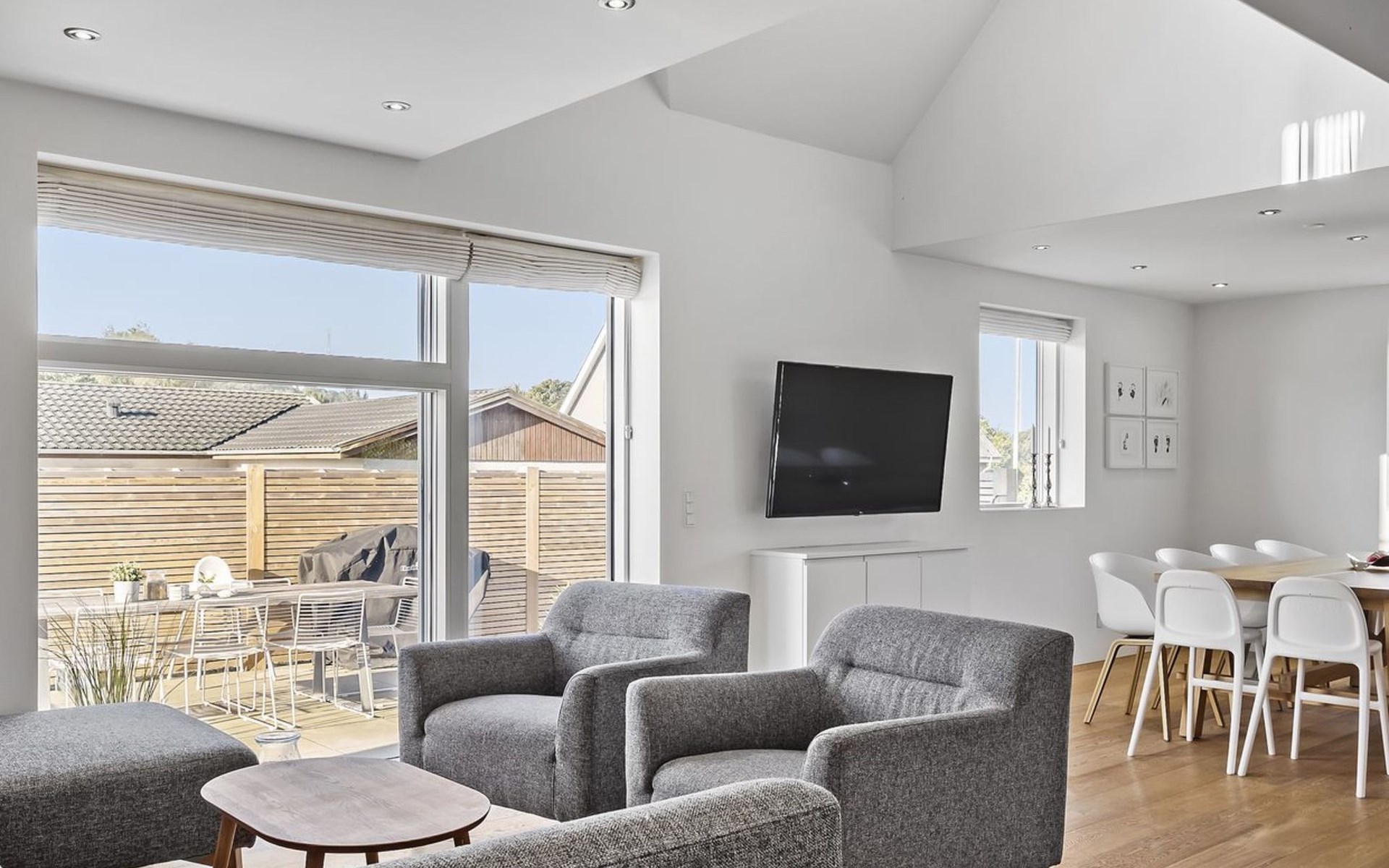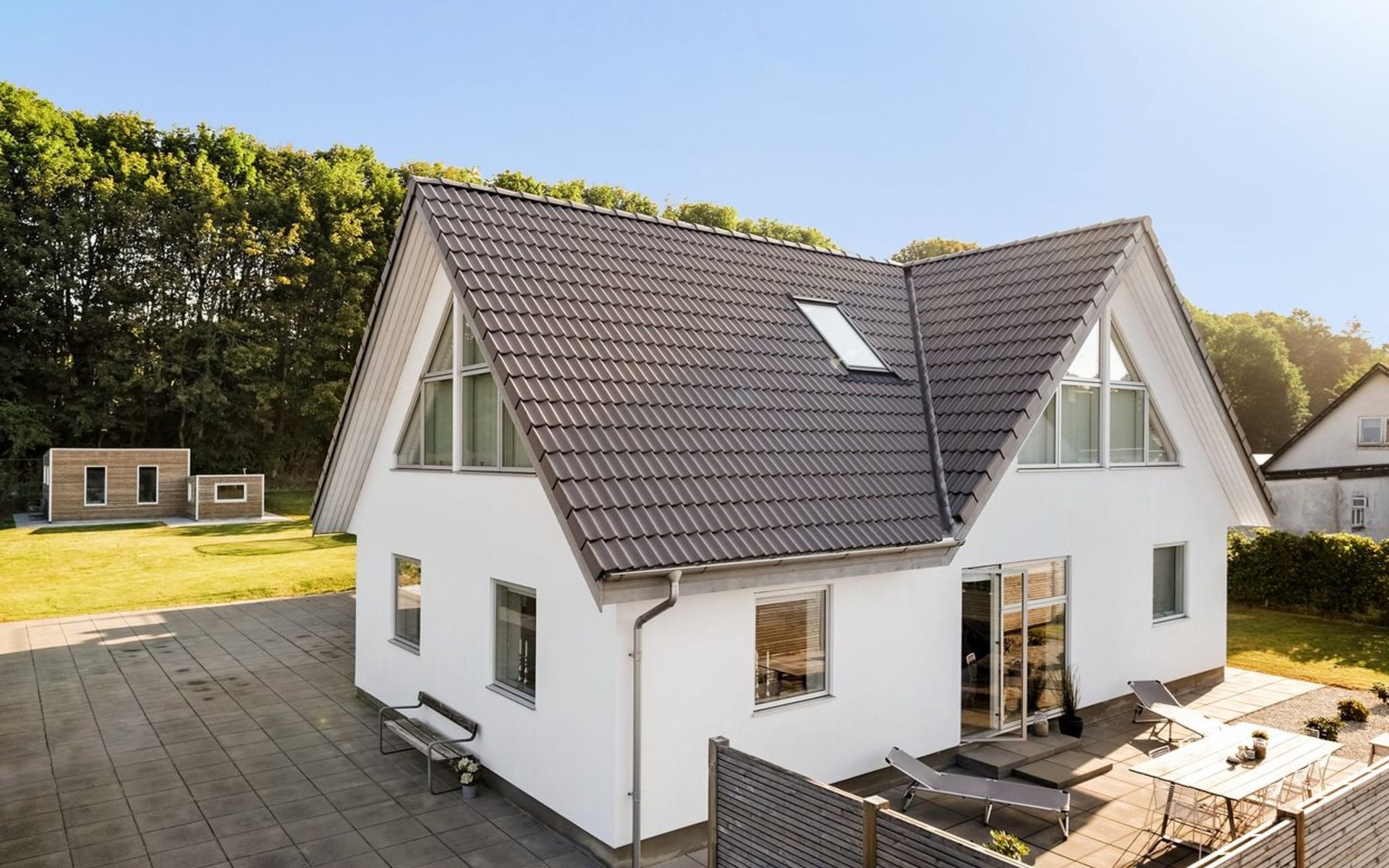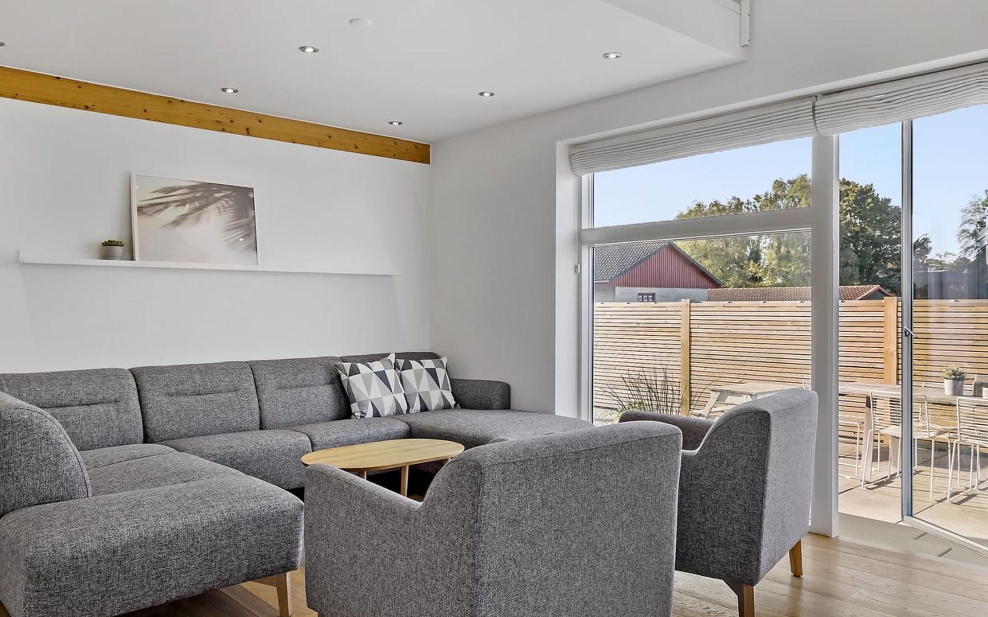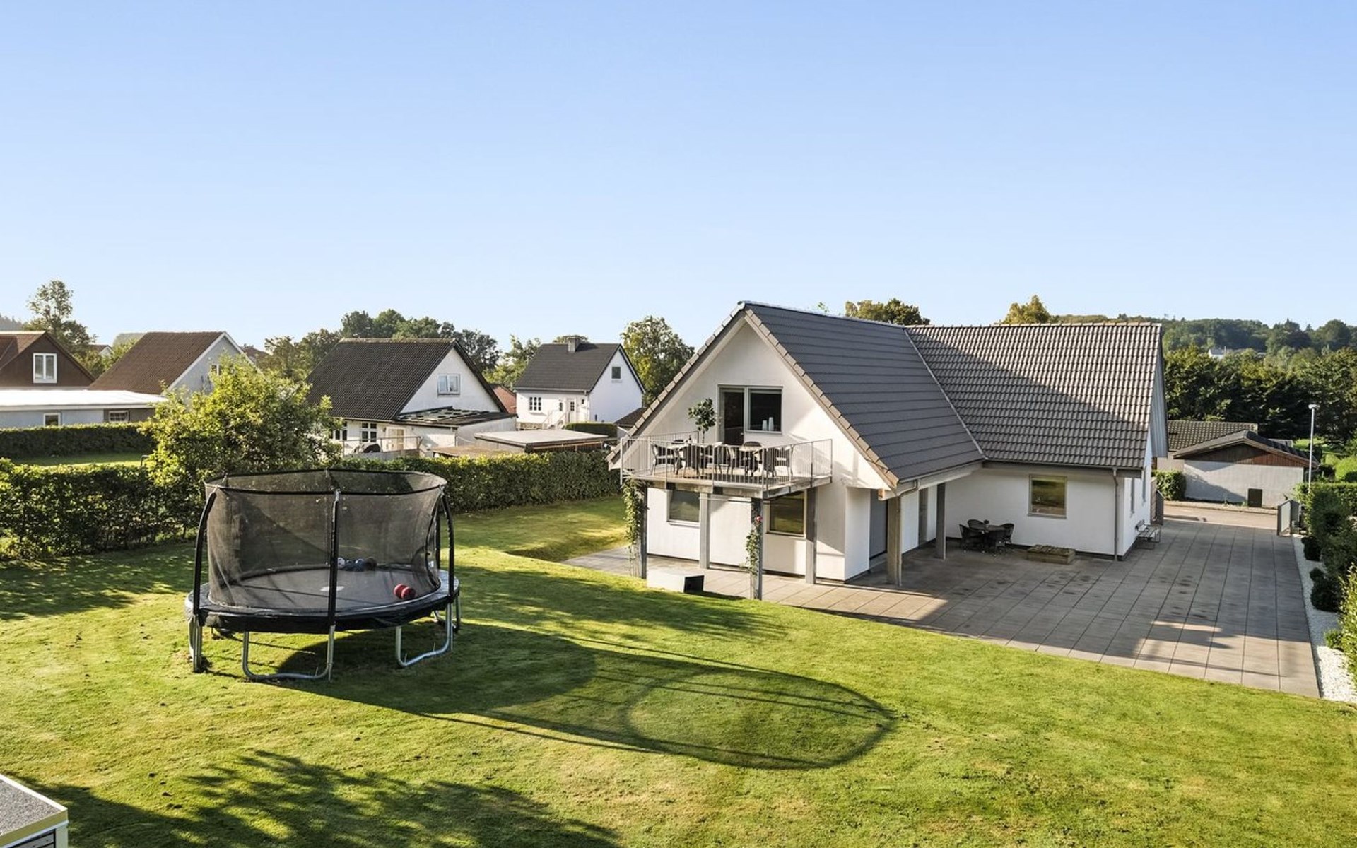Einfamilienhaus, Baujahr 1942. 12 km vom Meer. Zur Alleinbenutzung: Grundstück 1'300 m2, gepflegter Garten. Grill (Rutschbahn, Schaukel). Im Hause: Tischfussball, Trampolin, Waschmaschine. Parkplatz beim Haus. Lebensmittelgeschäft 200 m. Golfplatz 15 km. Der Besitzer akzeptiert keine Jugendgruppen.