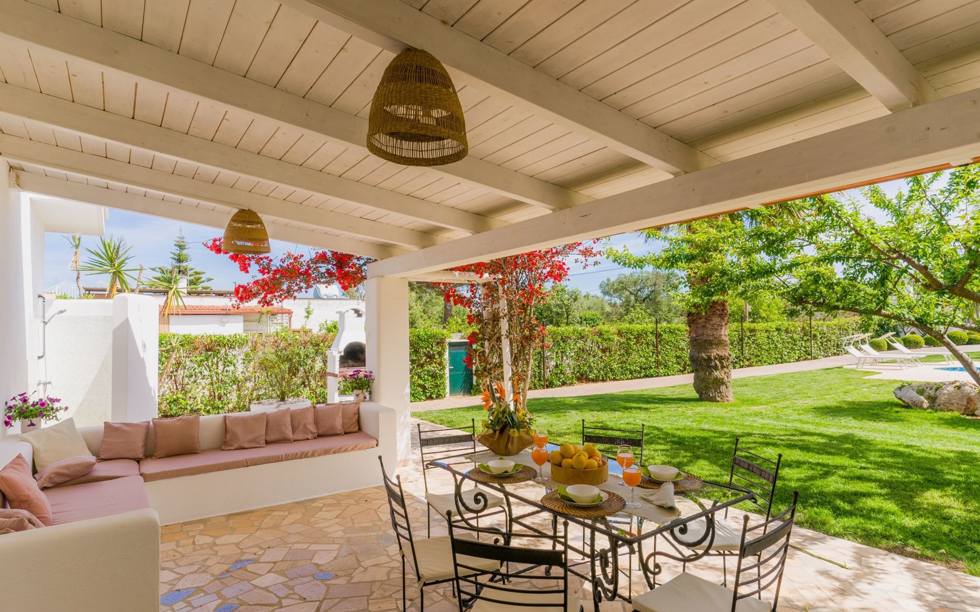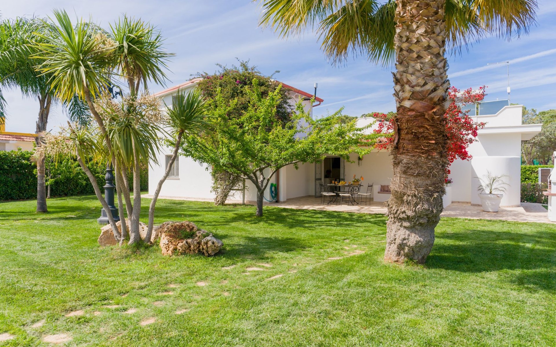 Es befindet sich in einer Gruppe von drei Häusern, die sich einen Pool und einen Garten teilen.