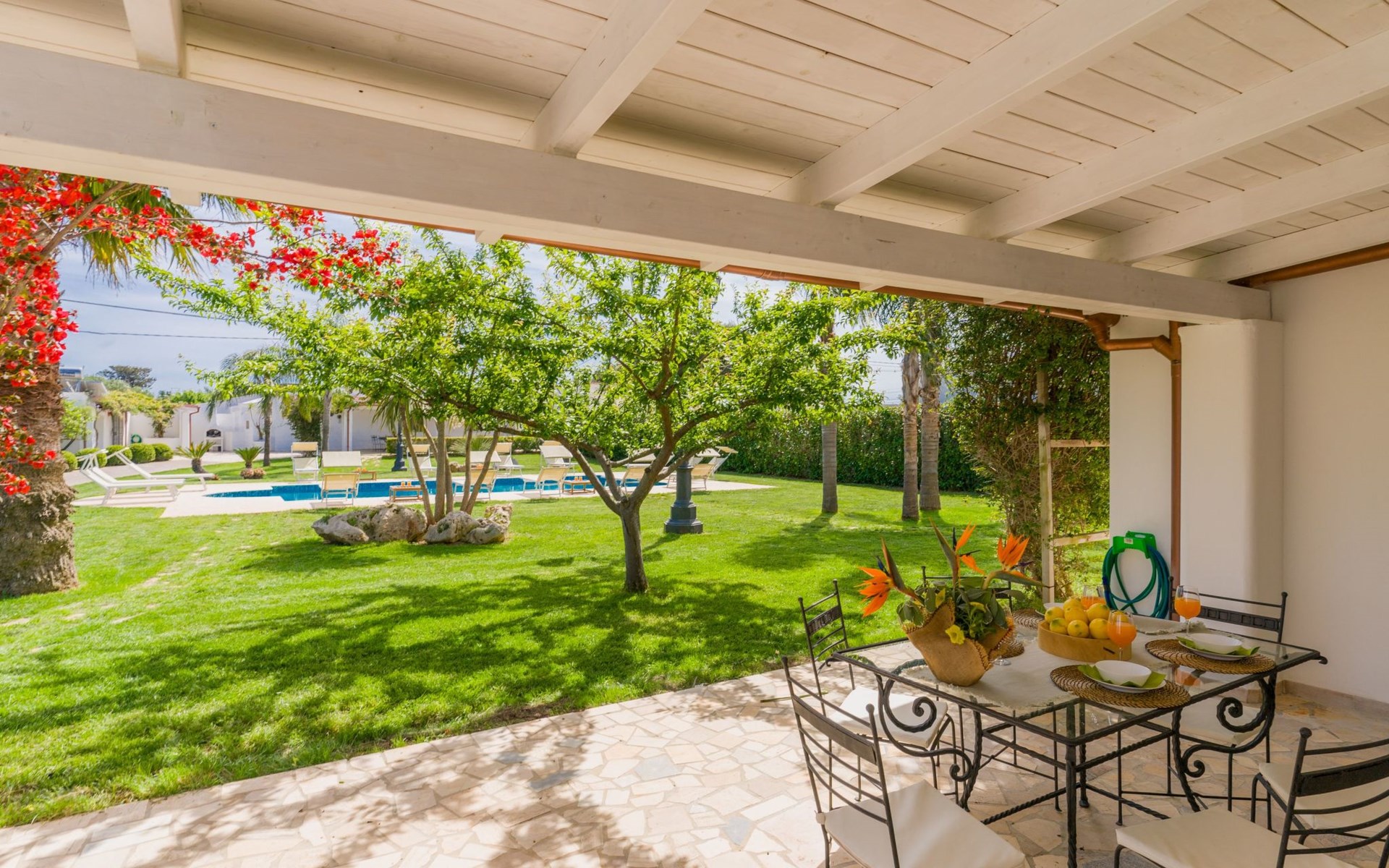 Sie haben eine private Veranda mit Blick auf den Pool;