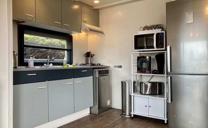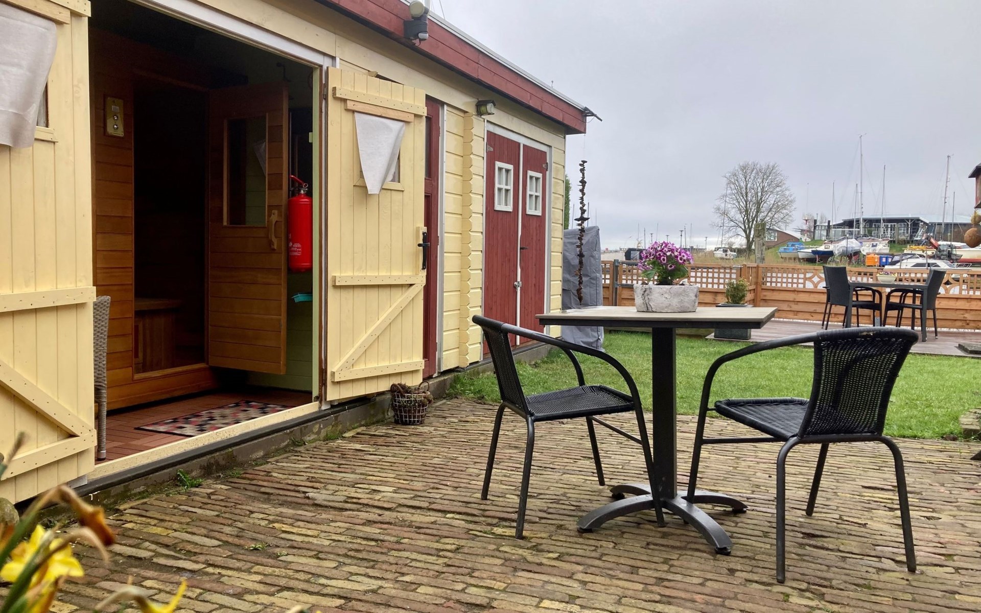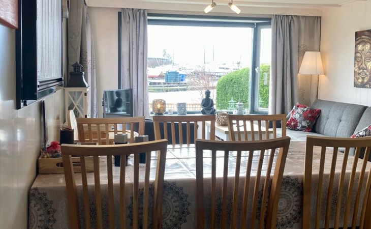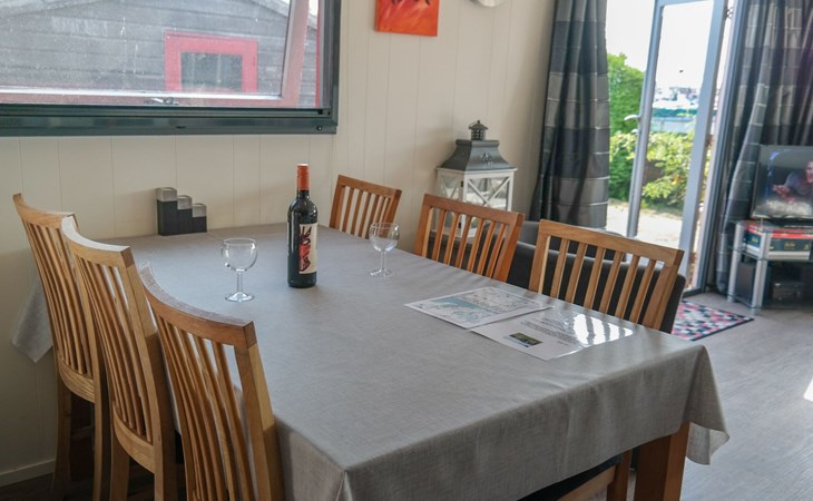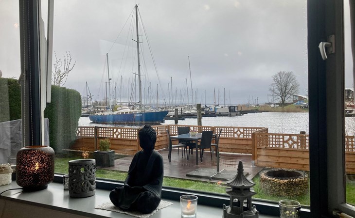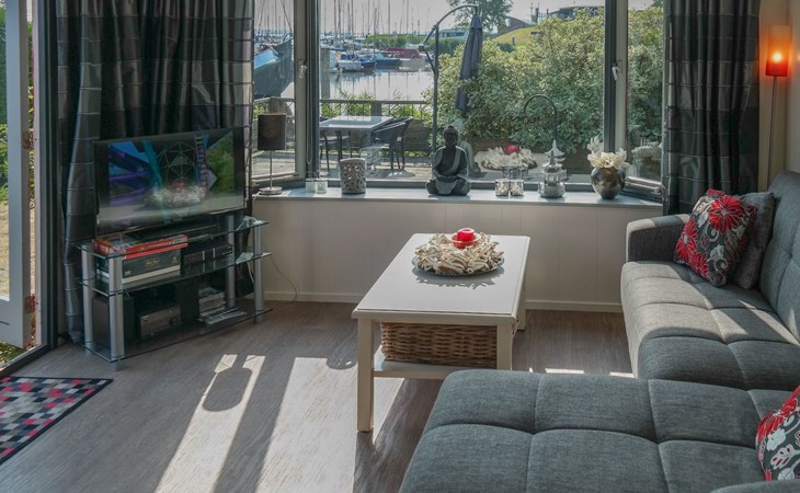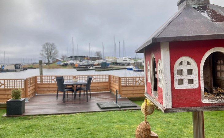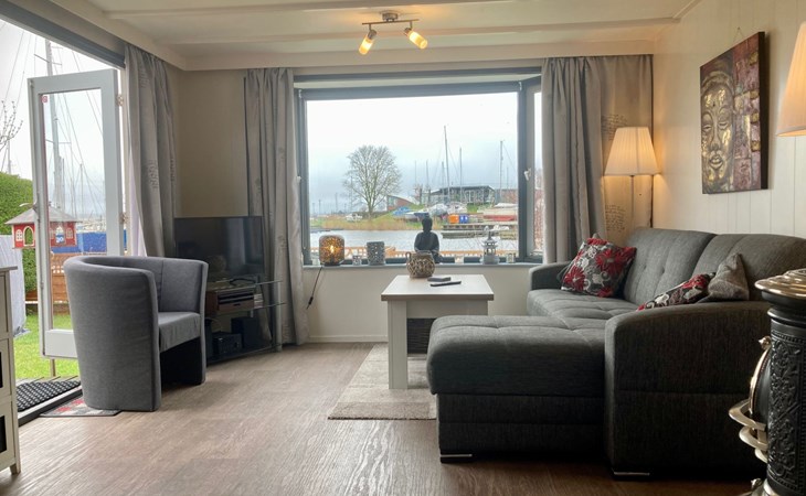 Das Haus mit einer Wohnfläche von ca. 60 m² besitzt zwei Schlafzimmer und bietet vier Personen ausreichend Platz. In einem der beiden Schlafzimmer steht ein französisches Bett von 1,40 x 2 m mit einer einteiligen Matratze. Im zweiten Schlafzimmer stehen 2 einzelne Betten. Der Wohnraum mit der Küchenzeile ist höchstens 10 m vom Ufer entfernt, wodurch man einen unvergleichlichen Blick über den Hafen genießen kann. Es gibt ein Bad mit WC und Dusche. Das Gartenhaus ist groß genug, um 4 Fahrräder darin unterzustellen. Der Steg wird von den Hauseigentümern u. Gästen auch zum Aufstellen von Liegestühlen genutzt. Die zum Haus gehörenden zwei Kanus werden dort zu Wasser gelassen. Das Lauwersmeer ist ein Paradies für Angler und Wassersportler aller Art. Zander und Hechte von einem Meter und länger sind hier keine Seltenheit.