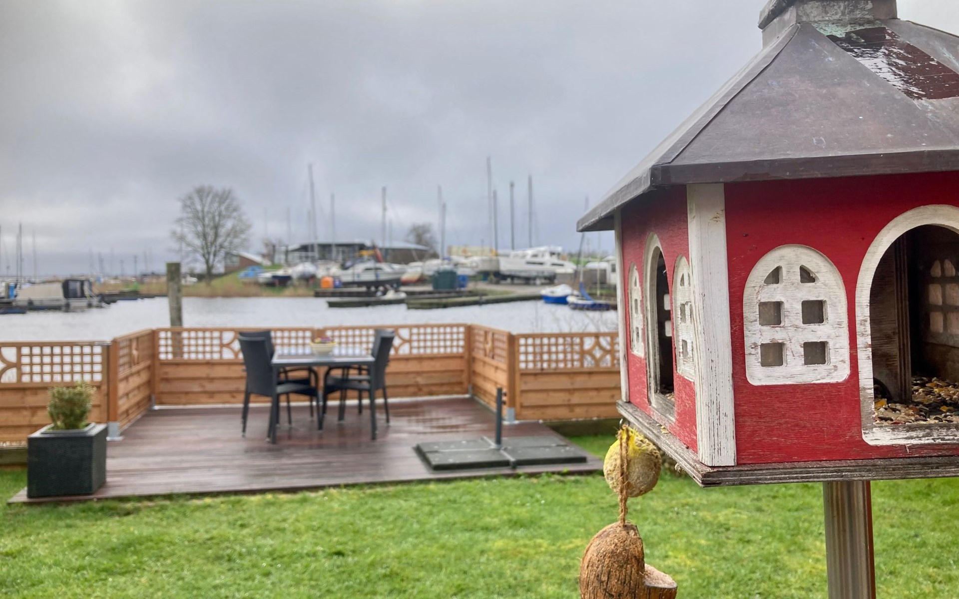 Ein eigener Parkplatz, eingezäunter Garten mit Terrasse und Gartenmöbeln, Strandkorb, Fester Grill, Holzdeck Am Lauwersmeer und einen Steg.