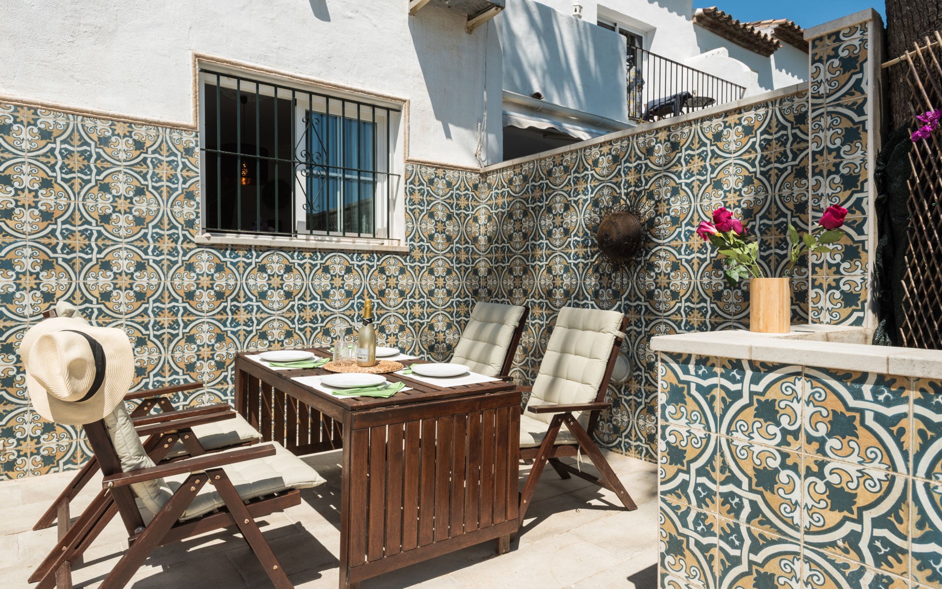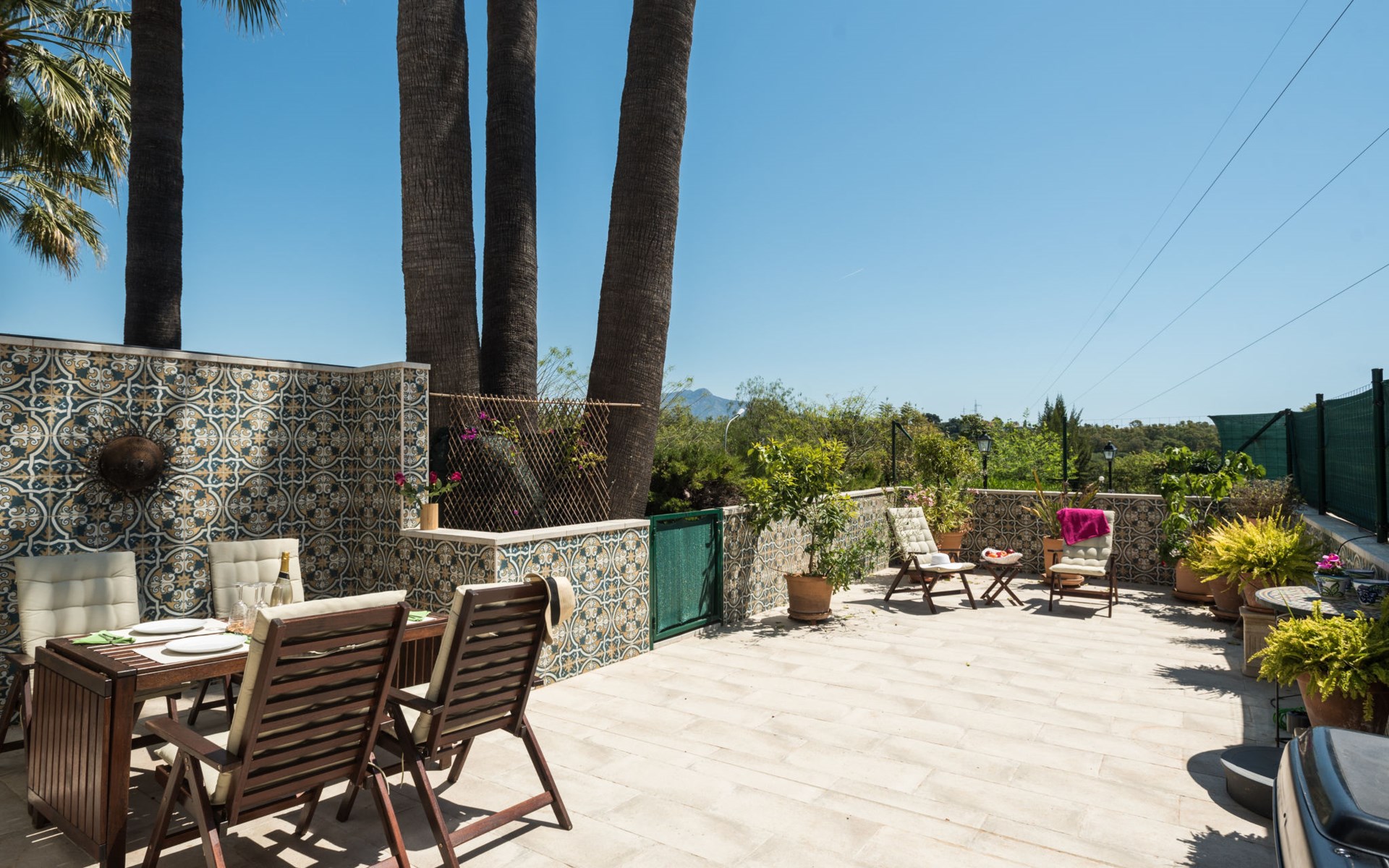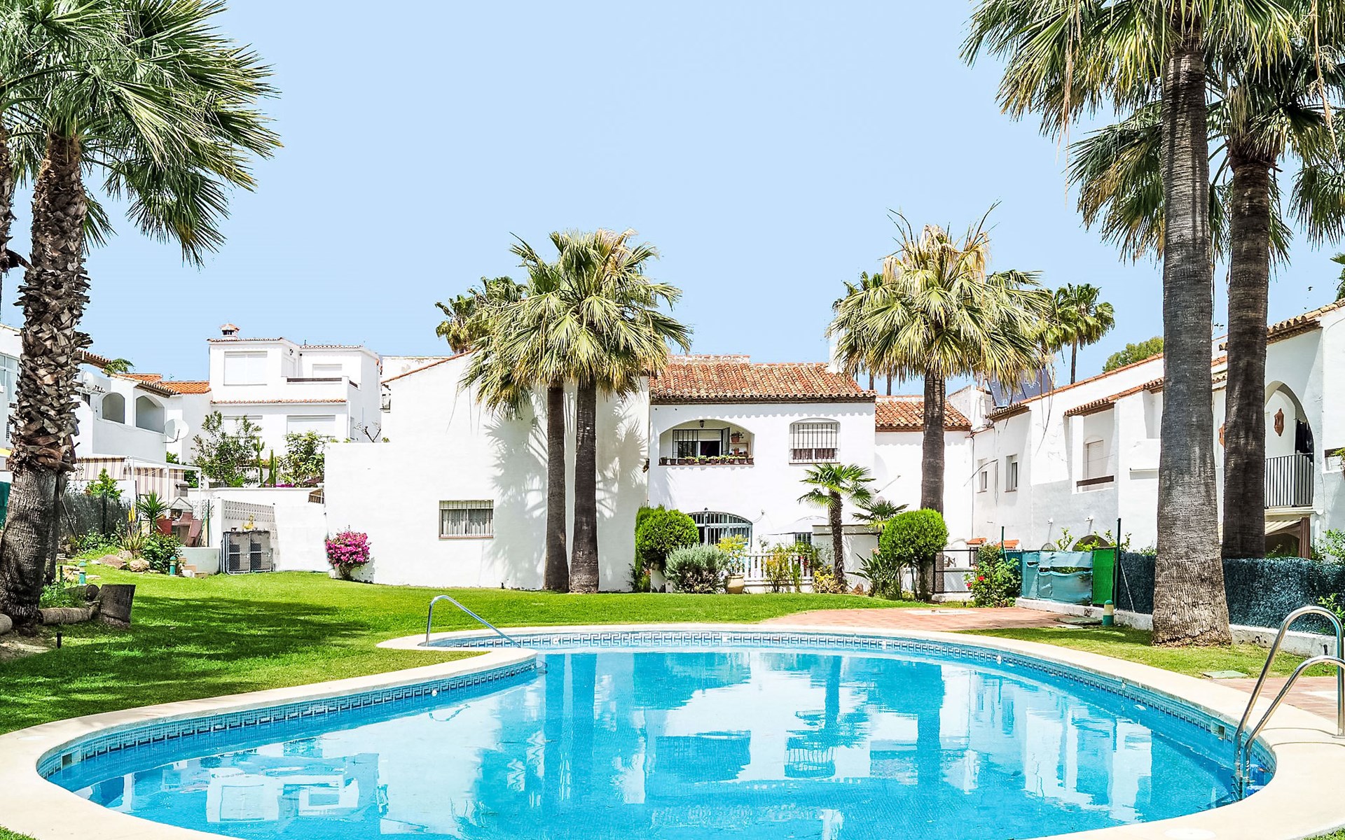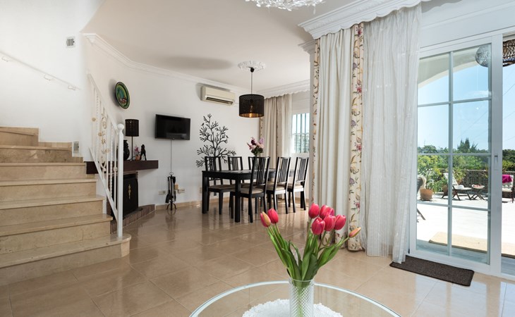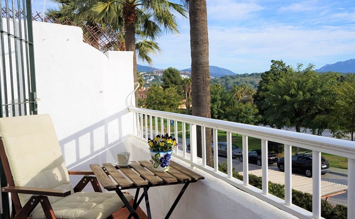 Schönes, gemütliches Reihenhaus "Villas de Madrid", auf 2 Stockwerken. Im Ortsteil Bel Air, 16 km vom Zentrum von Marbella, 9 km vom Zentrum von Puerto Banús, 10 km vom Zentrum von Estepona, ruhige, sonnige Lage, 1.7 km vom Meer, 1.7 km vom Strand. Zur Mitbenutzung: Garten mit Rasen und Blumen, Schwimmbad (saisonale Verfügbarkeit: 01.Jun. - 15.Sep. Öffnungszeiten Schwimmbad: 11:00-21:00). Aussendusche, öffentliche Parkplätze auf der Strasse. Supermarkt, Restaurant 650 m, Bushaltestelle "Flamingos Golf" 650 m, Kieselstrand 1.7 km. Golfplatz (18 Loch) 500 m. Objekt geeignet für 6 Erwachsene. Der Besitzer akzeptiert keine Gruppen. Der Besitzer akzeptiert keine Jugendgruppen.