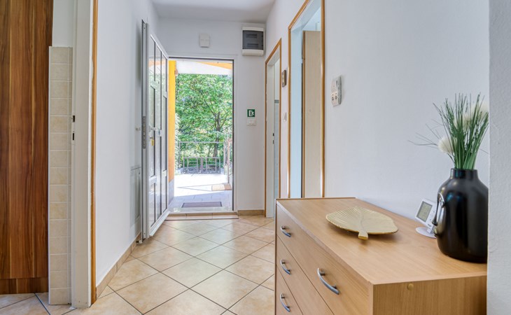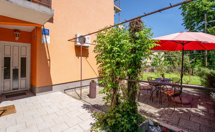Schönes Zweifamilienhaus. 500 m vom Zentrum von Lovran, sonnige Lage, 400 m vom Meer, 400 m vom Strand. Zur Mitbenutzung: Grundstück 800 m2 mit Rasen und Pflanzen. Im Hause: Internetzugang. Parkplatz beim Haus auf dem Grundstück. Supermarkt 700 m, Restaurant, Bar 100 m, Bushaltestelle 200 m, Kieselstrand 400 m. Tennis 300 m, Wanderwege ab Haus 400 m.