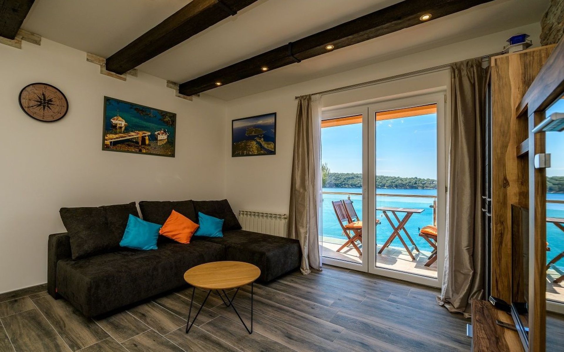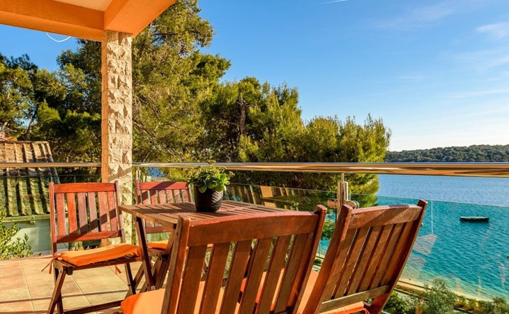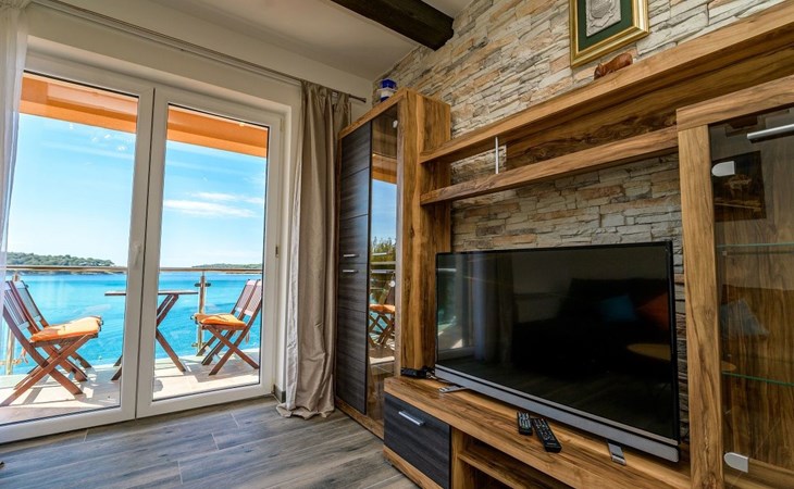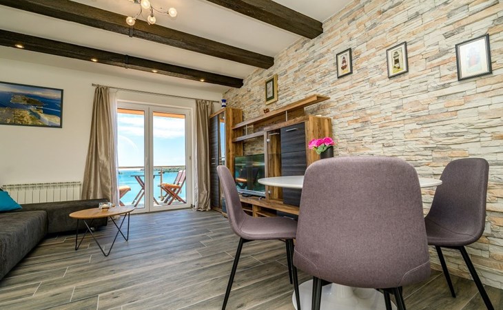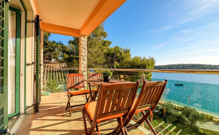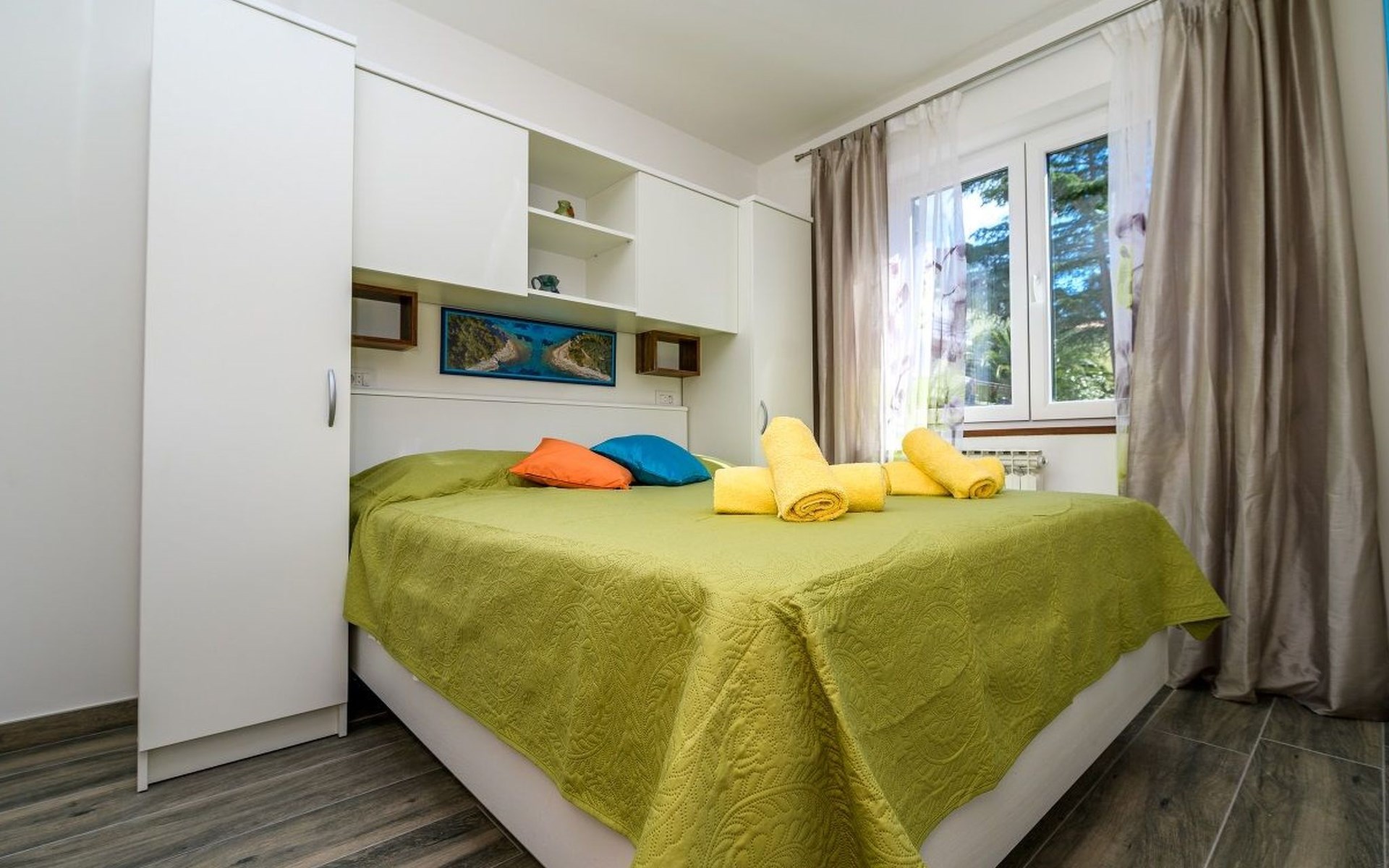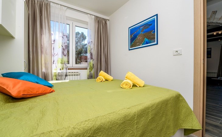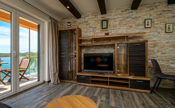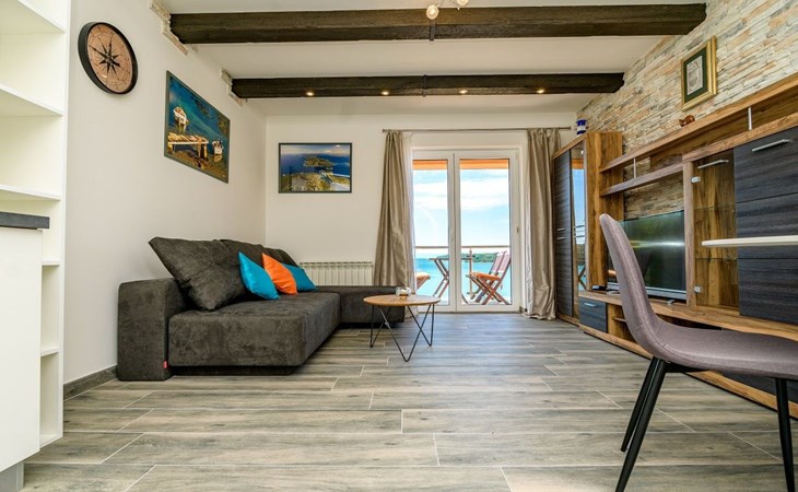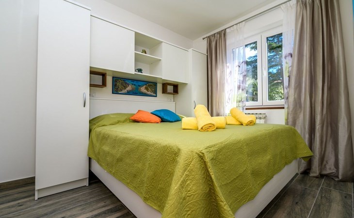 Im Haus gibt es vier Wohnungen, eine im Erdgeschoss für vier Personen mit großer Terrasse und Meerblick, eine im ersten Stock für 3 Personen mit Meerblick und zwei im zweiten Stock für 3 Personen mit Balkon und ein Blick aufs Meer. Neben dem Haus steht Ihnen ein Grill zur Verfügung.