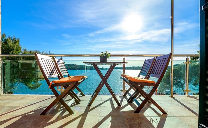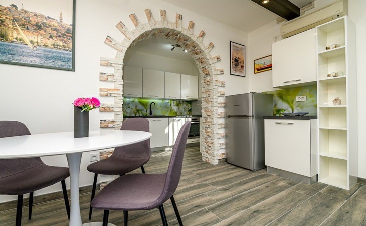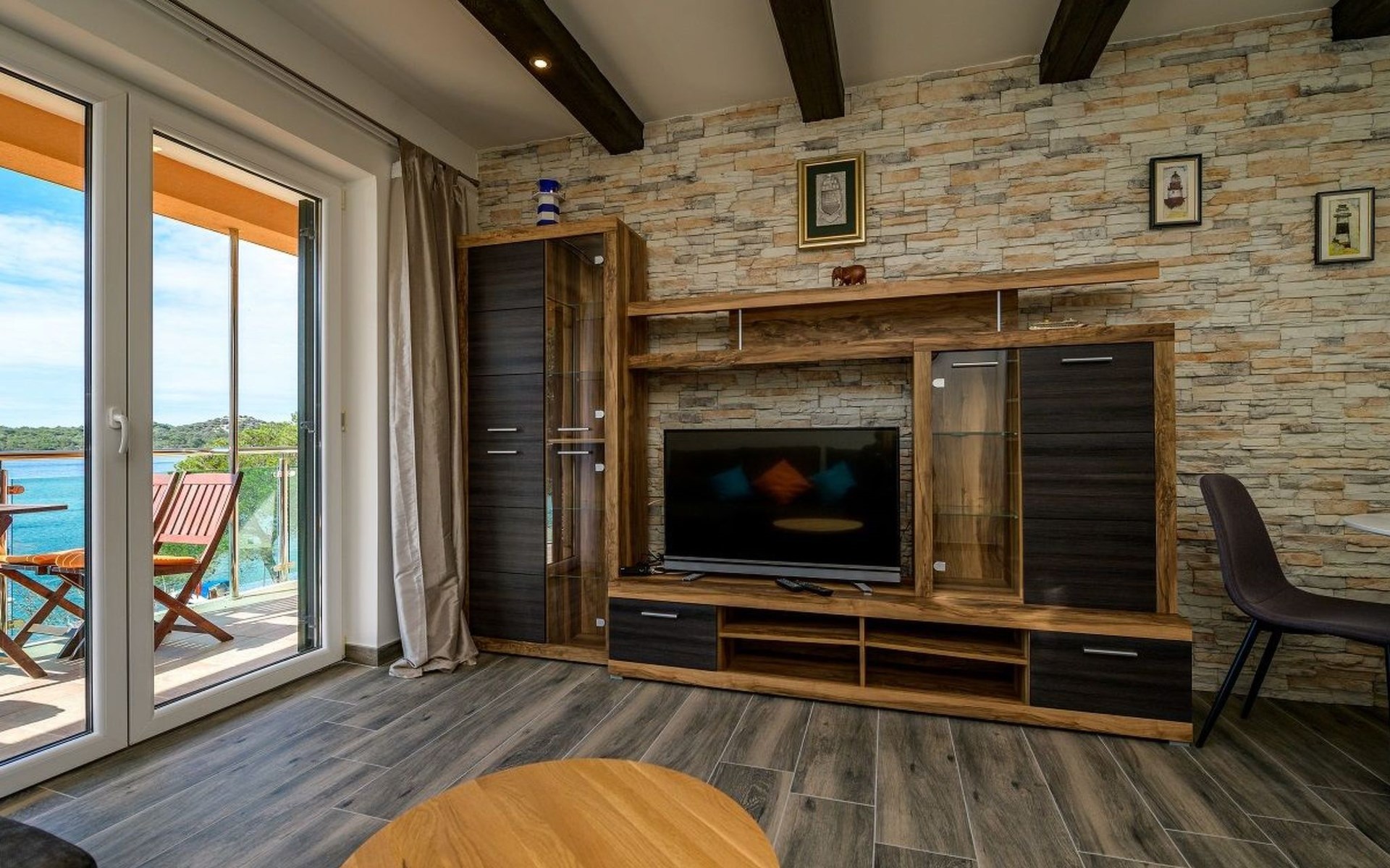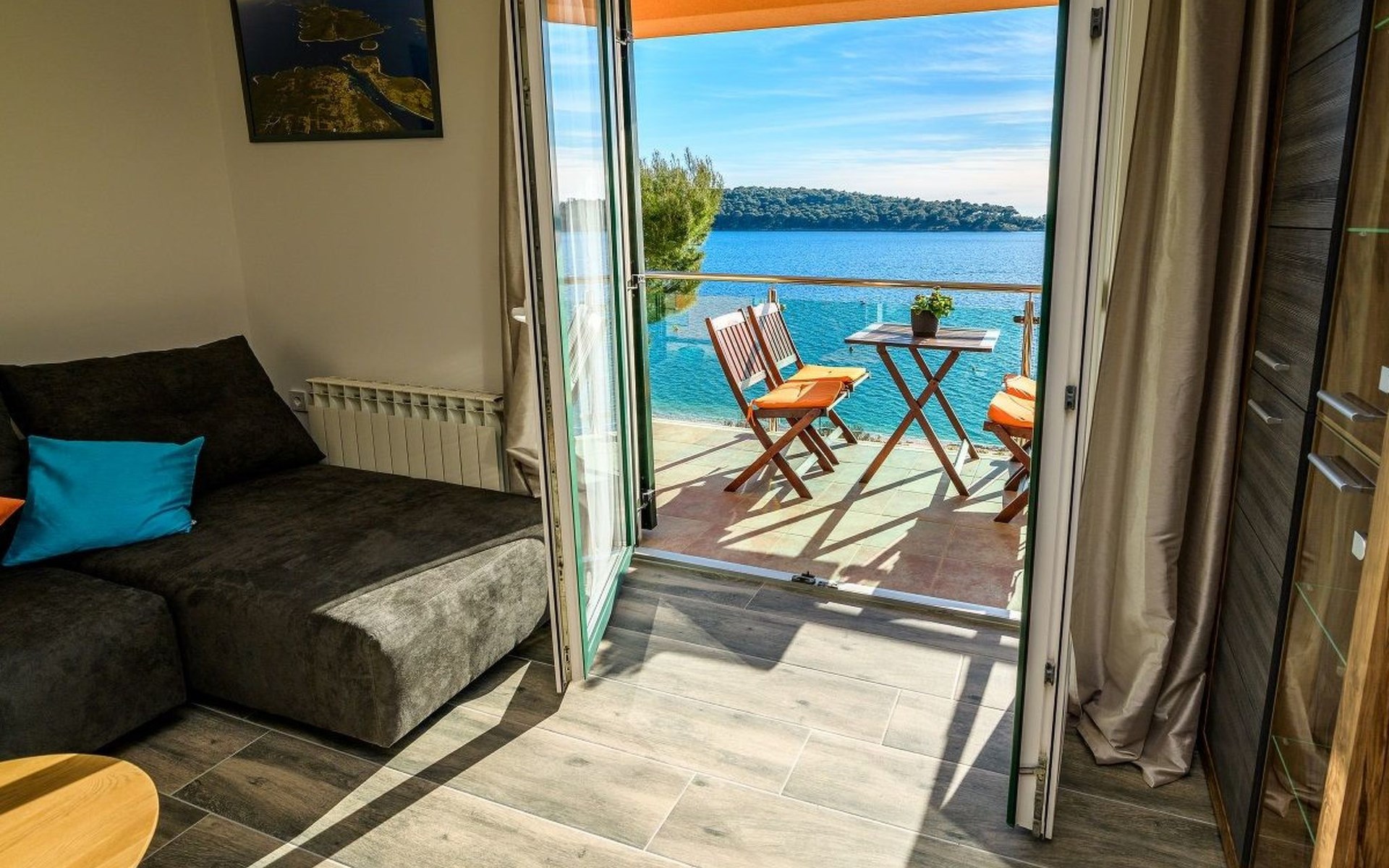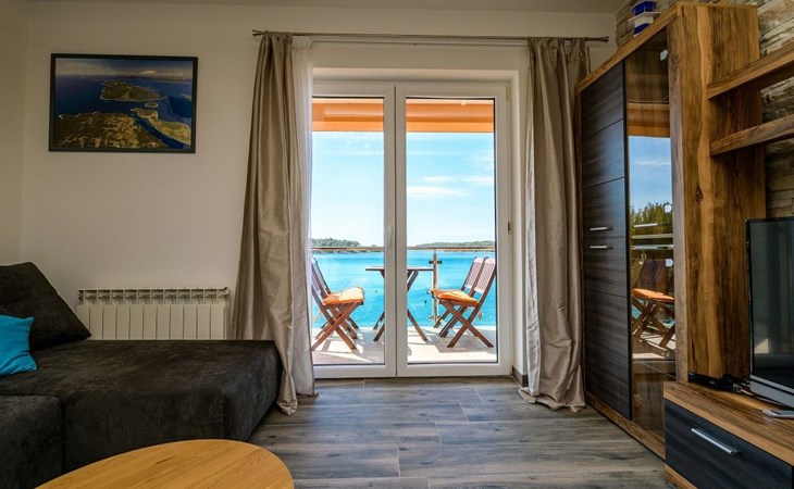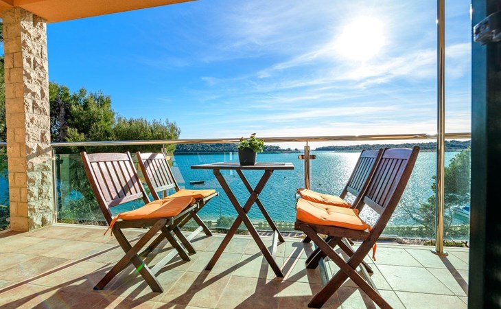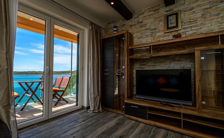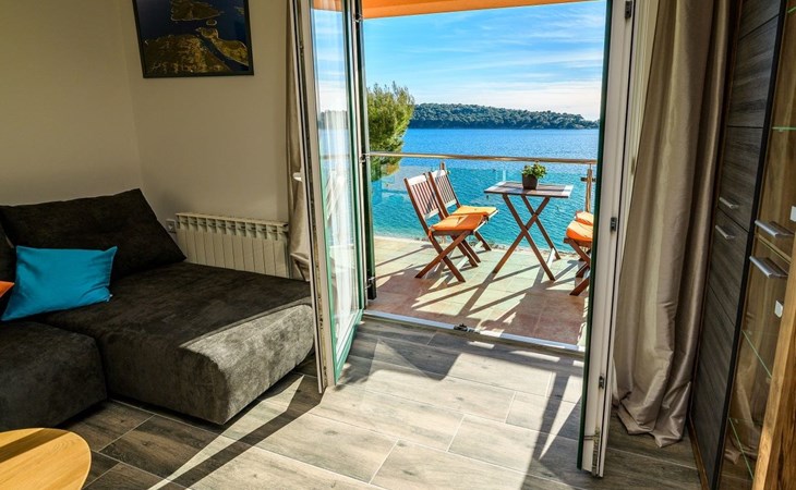 Im Haus gibt es vier Wohnungen, eine im Erdgeschoss für vier Personen mit großer Terrasse und Meerblick, eine im ersten Stock für 3 Personen mit Meerblick und zwei im zweiten Stock für 3 Personen mit Balkon und ein Blick aufs Meer. Neben dem Haus steht Ihnen ein Grill zur Verfügung.