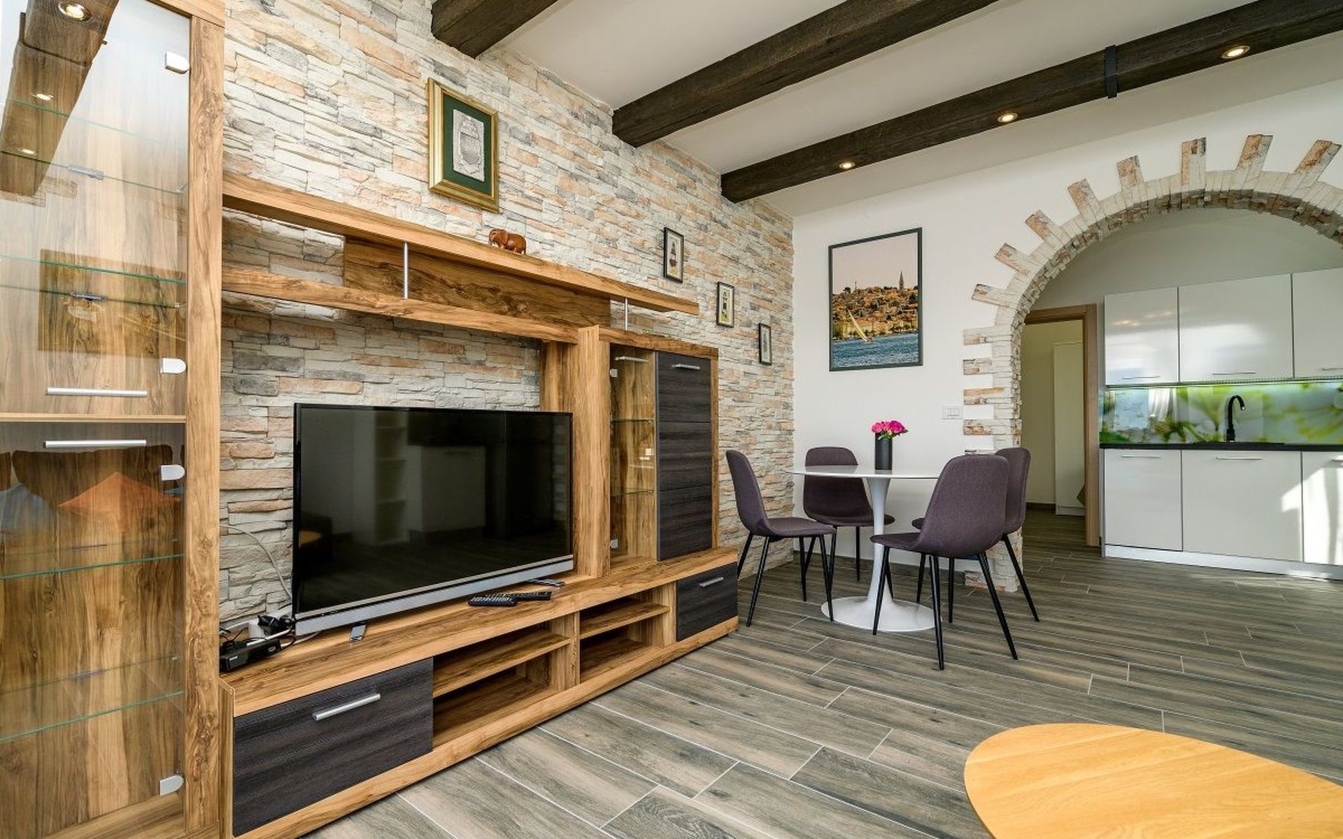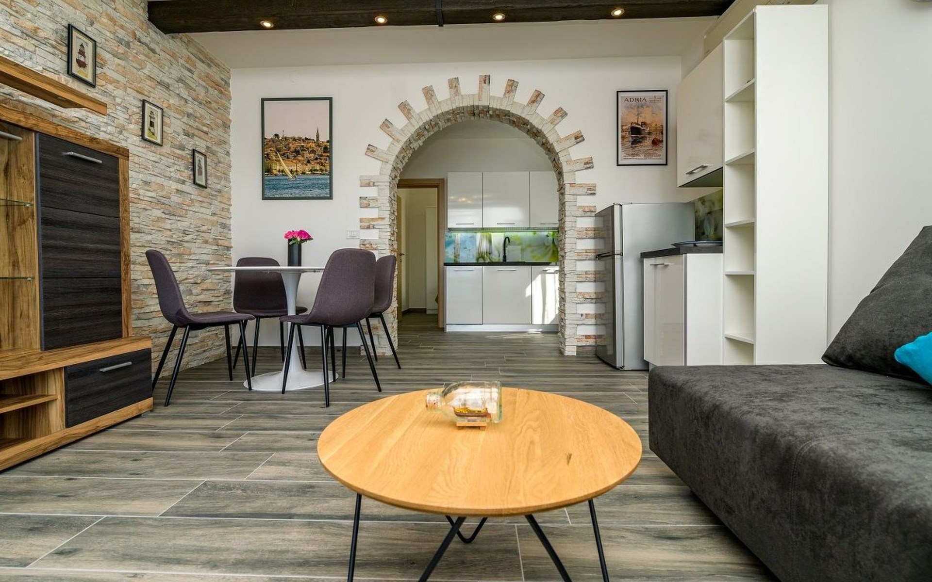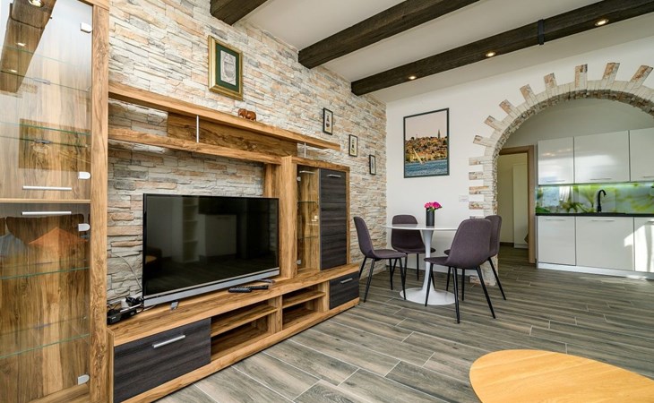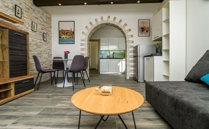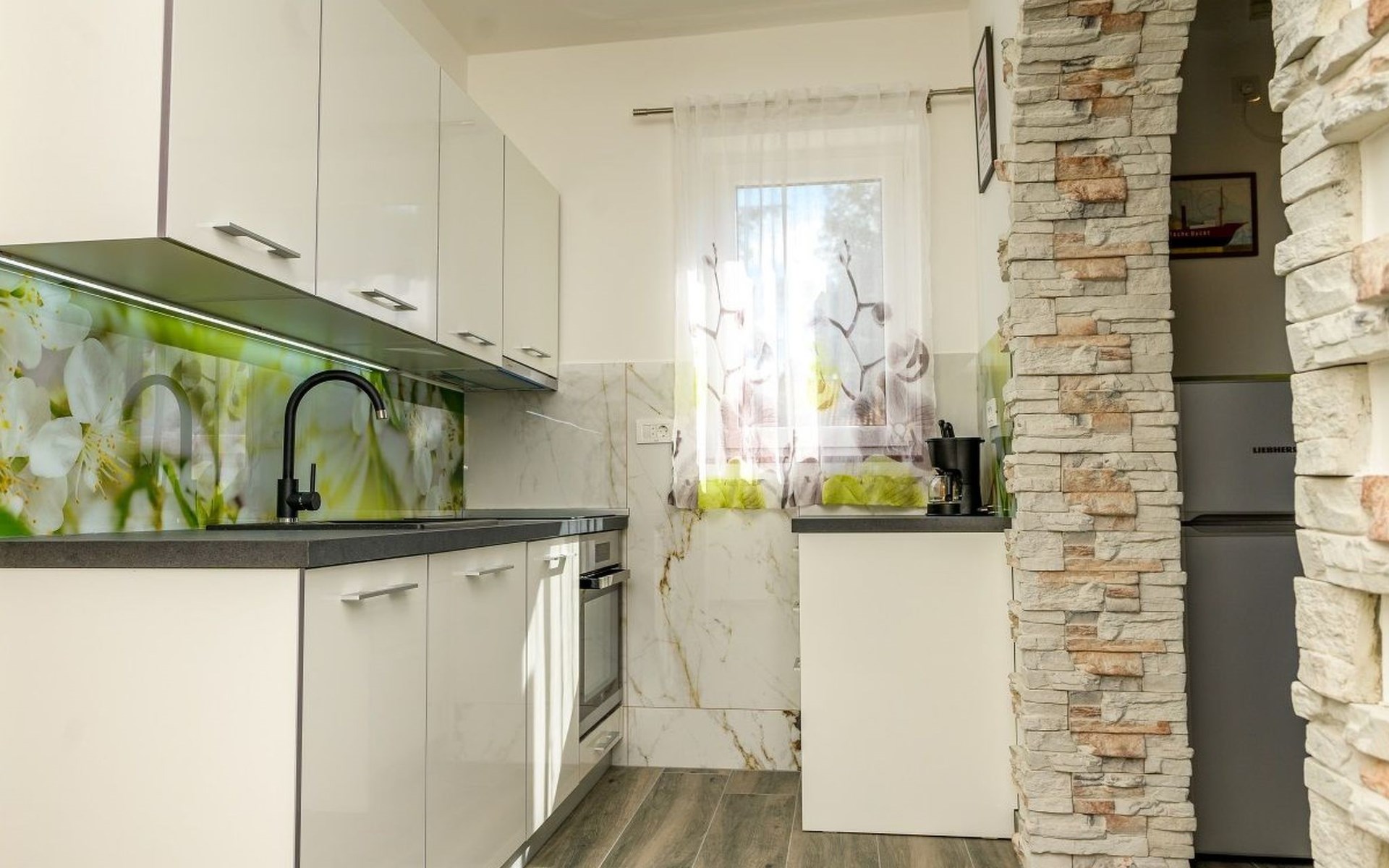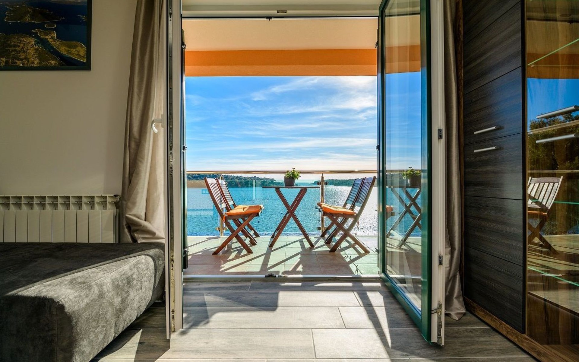 Im Haus gibt es vier Wohnungen, eine im Erdgeschoss für vier Personen mit großer Terrasse und Meerblick, eine im ersten Stock für 3 Personen mit Meerblick und zwei im zweiten Stock für 3 Personen mit Balkon und ein Blick aufs Meer. Neben dem Haus steht Ihnen ein Grill zur Verfügung.